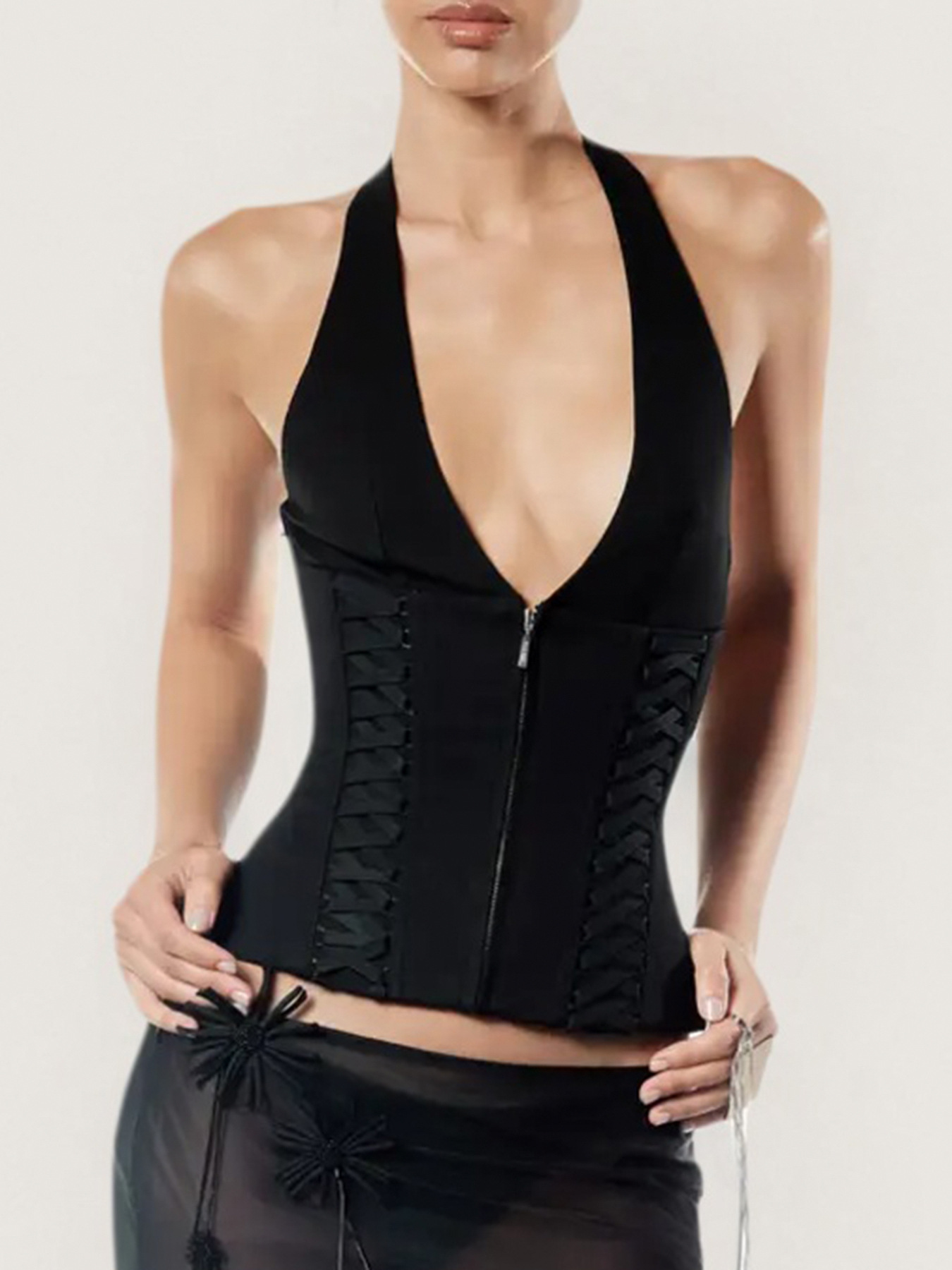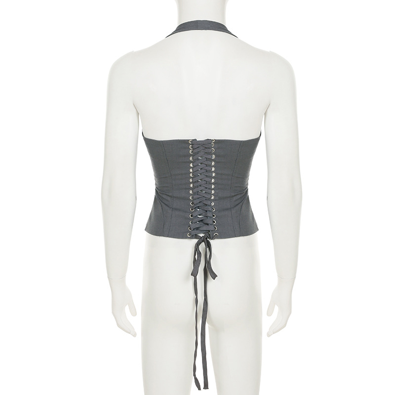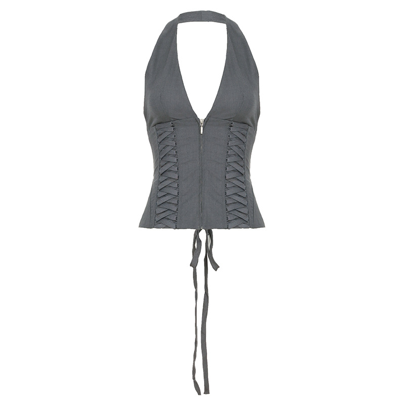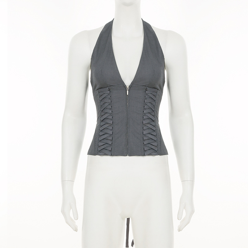 Penne same strap waist neck deep V-neck vest sexy hottie slim short slim versatile top