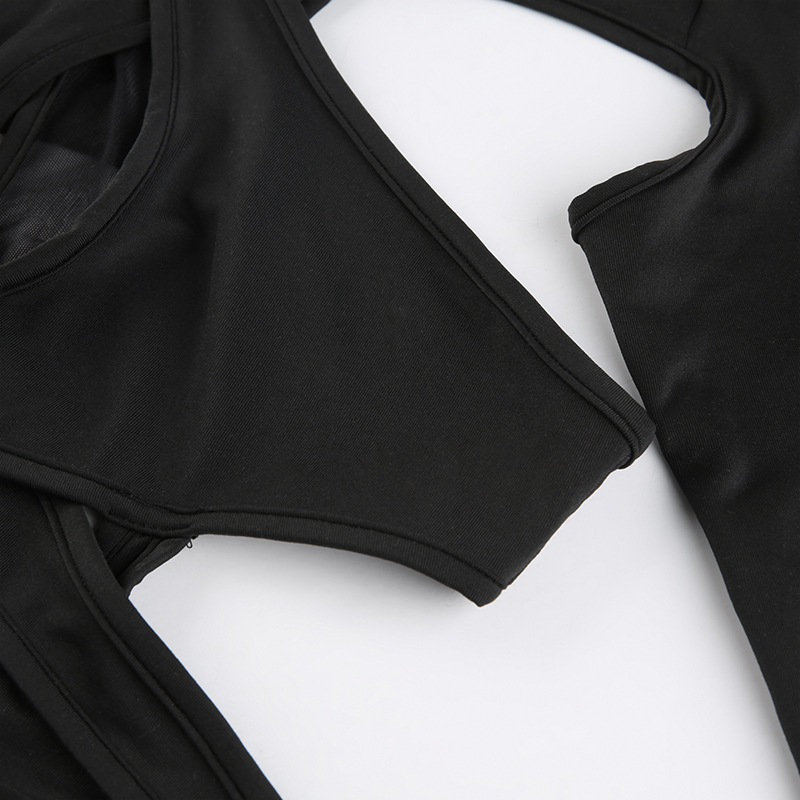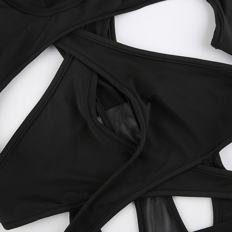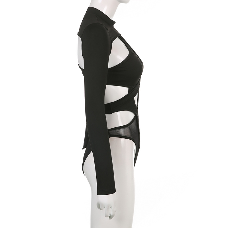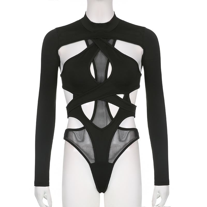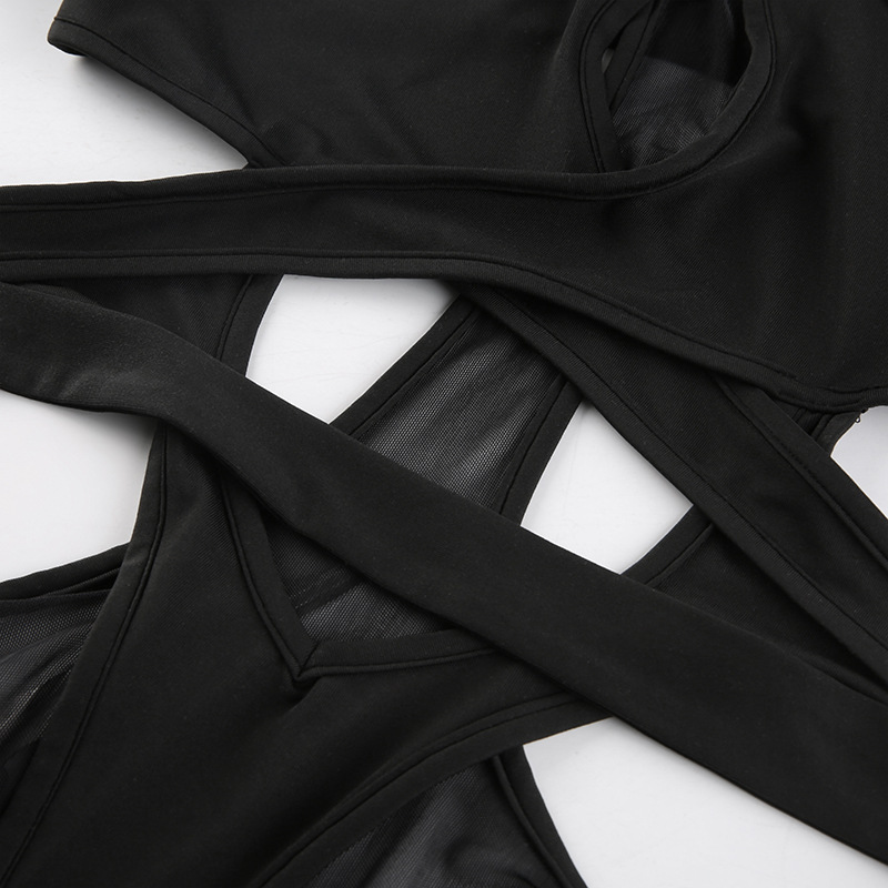 Personality irregular hollow mesh splicing onesie nightclub style European and American sexy babes beautiful back lace-up jumpsuit