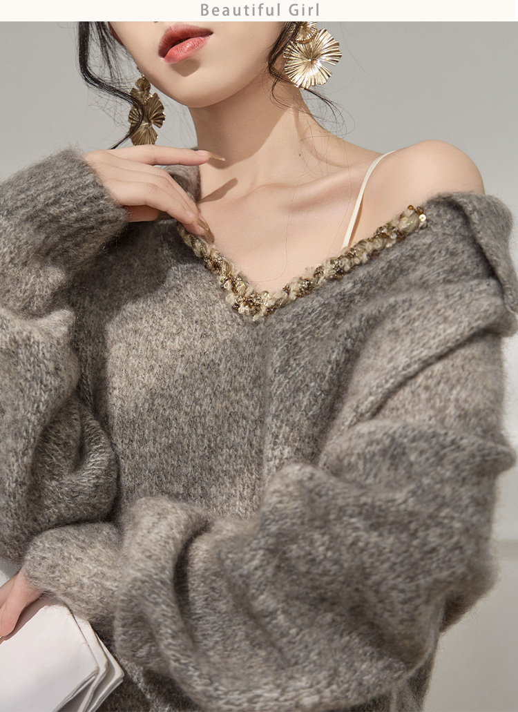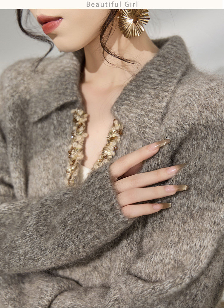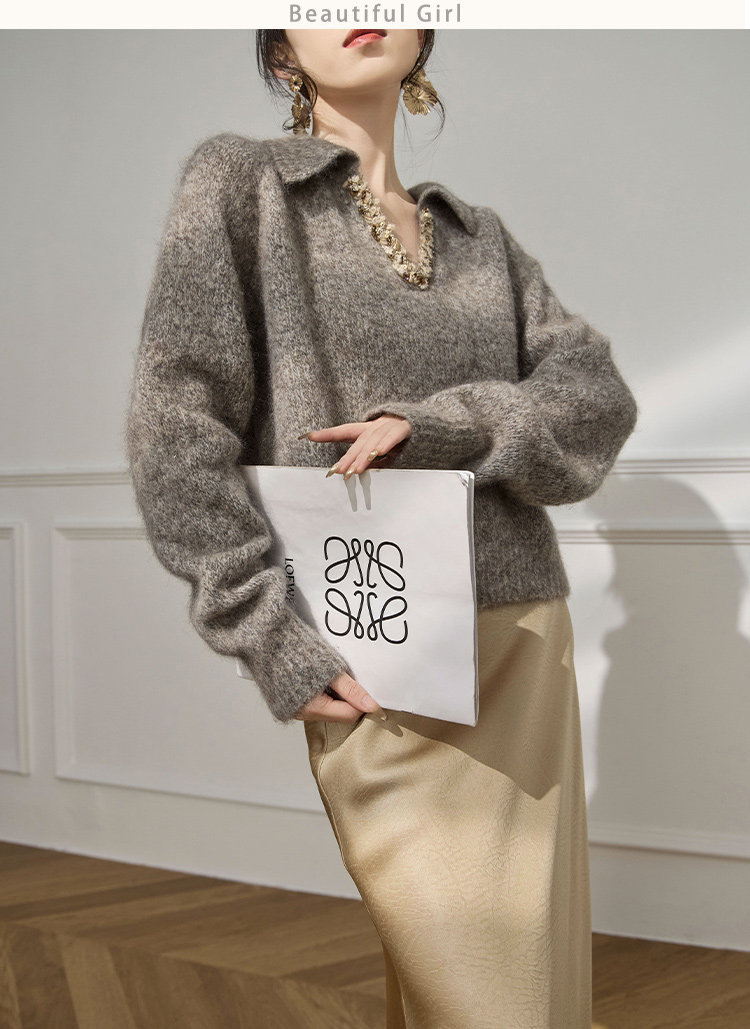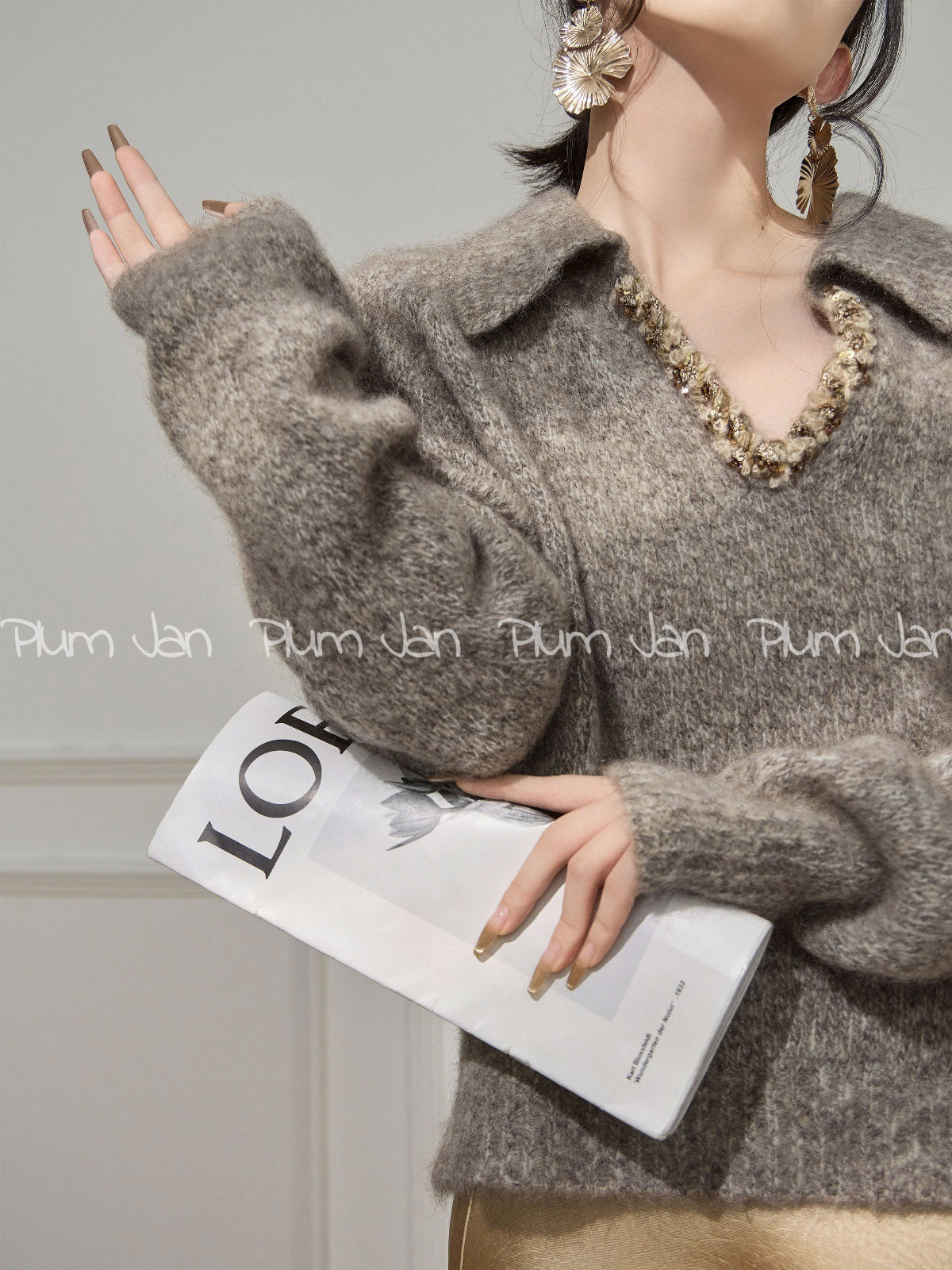 Plum Jan/Unique and beautiful This year's popular beautiful brown V-neck sweater women's 2026 new winter