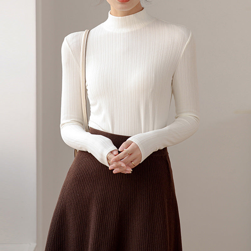 Premium Threaded Stand-Up Neck T-Shirt Women's Long Sleeve 2026 Autumn and Winter New Skinny Sexy Slim Top Tights Bottom Shirt