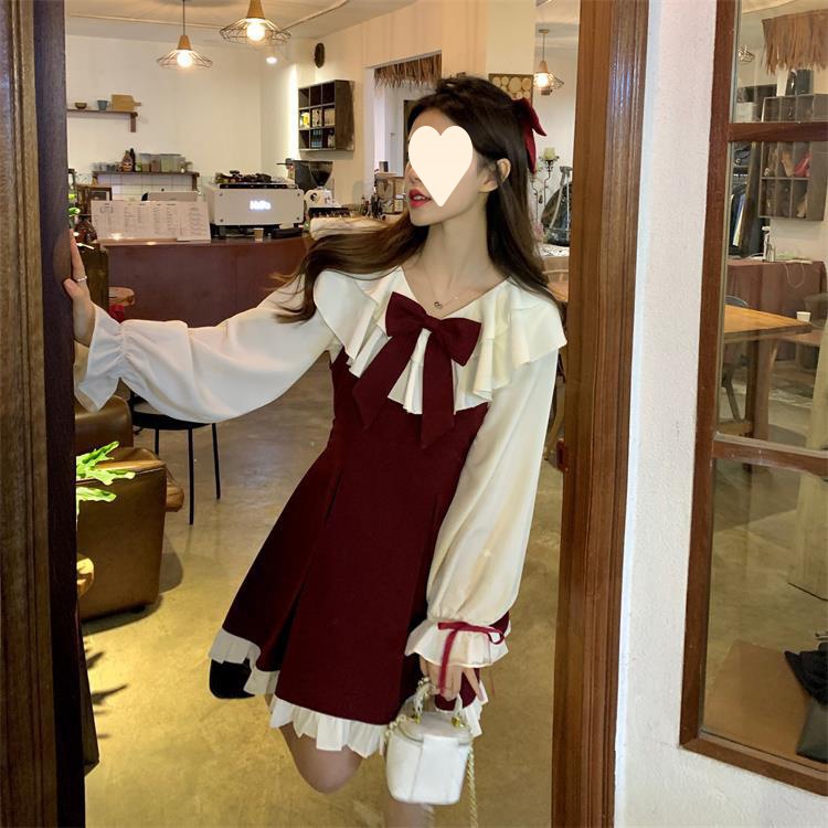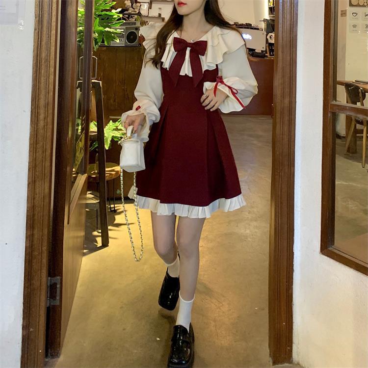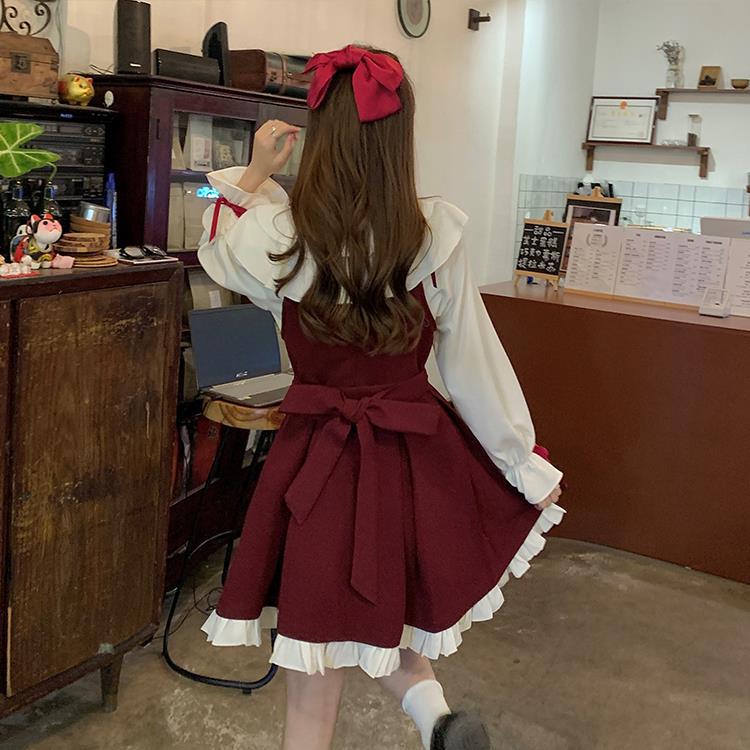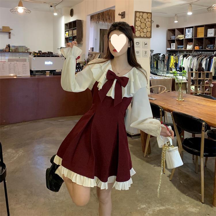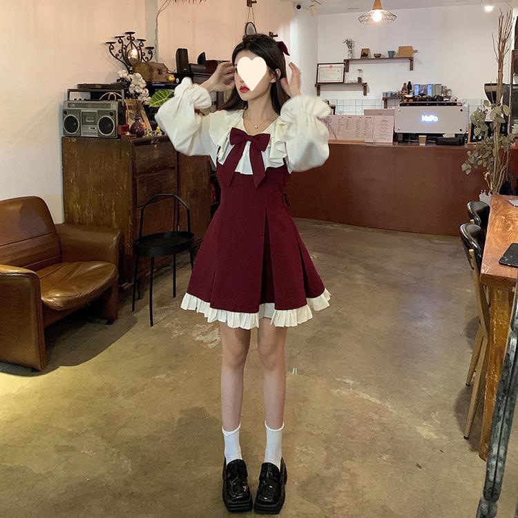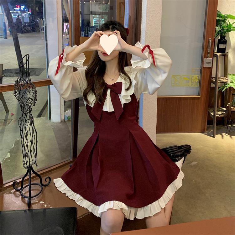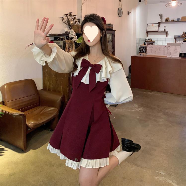 Princess style cute dress women's 2025 spring and autumn new small fresh bow suspender pleated skirt two-piece set