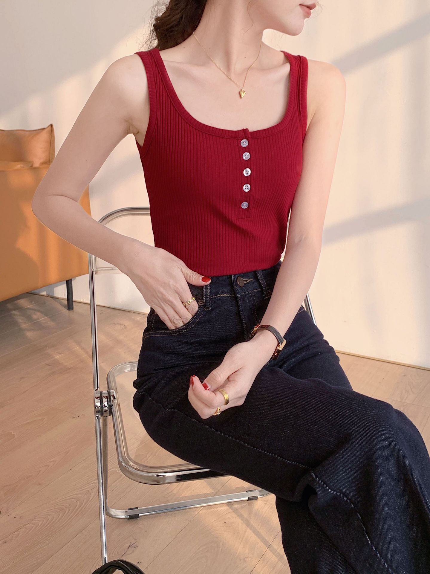 Pure cotton button sling vest for women's summer outer wear 2026 summer new slim-fitting and thin inner base sleeveless top