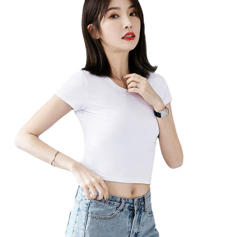 pure cotton white short T-shirt women's short-sleeved slim-fitting open-button bottoming shirt with summer outer top, pure cotton