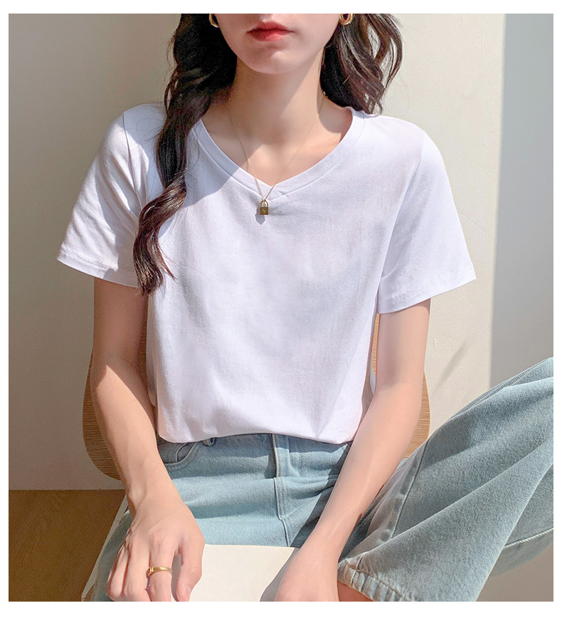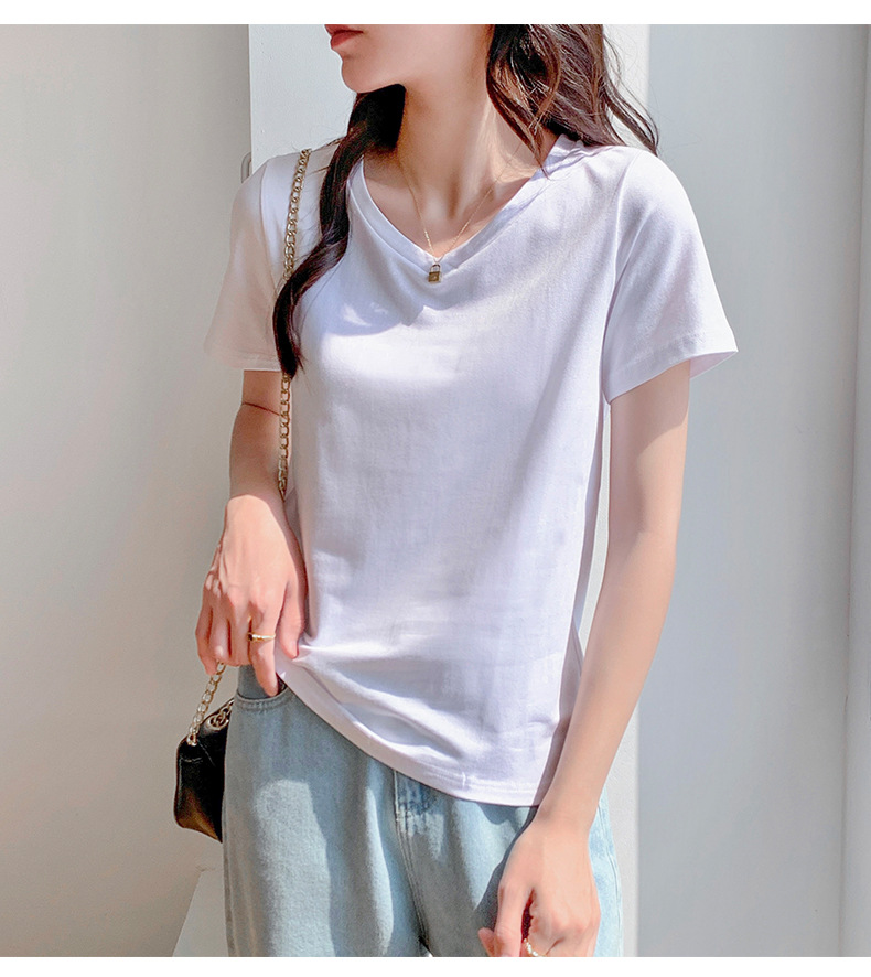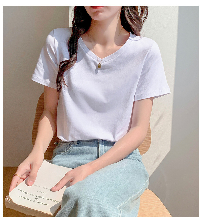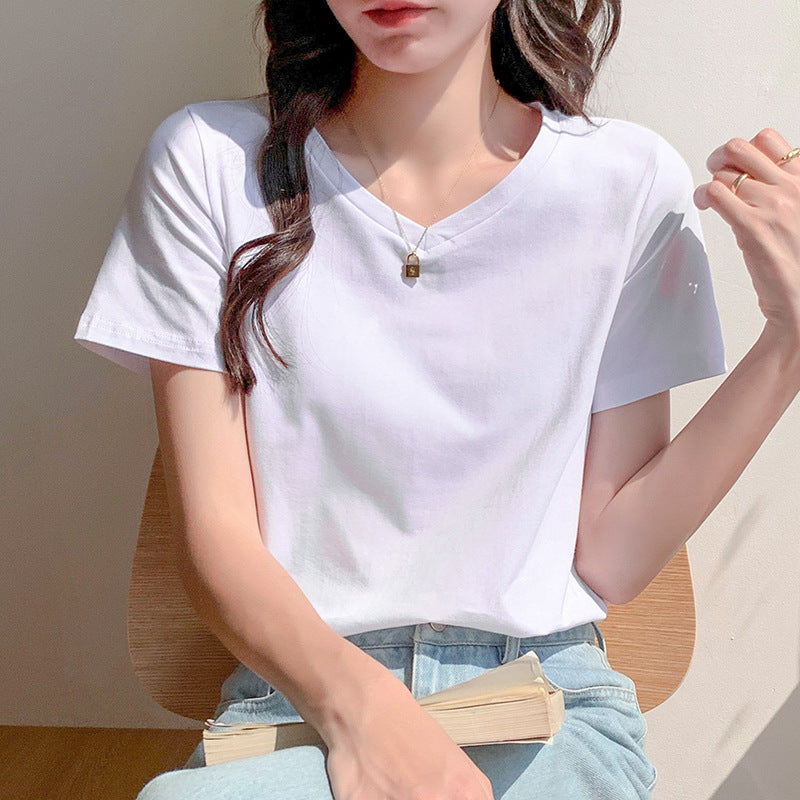 pure cotton white t-shirt women's short-sleeved summer 2025 new loose thin bottoming shirt with solid color thin top