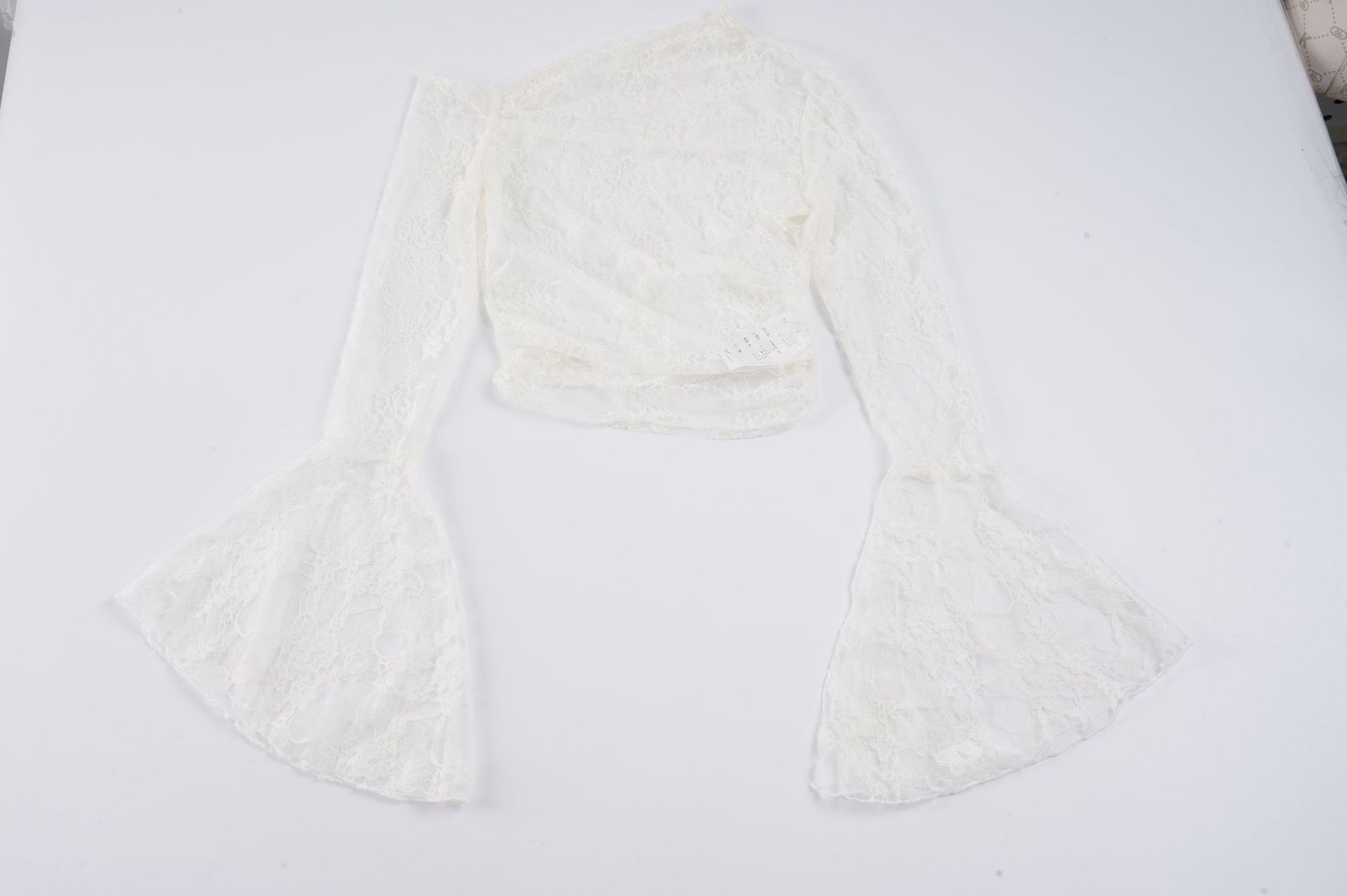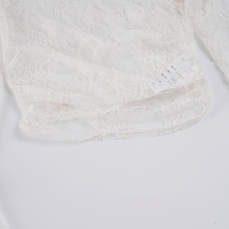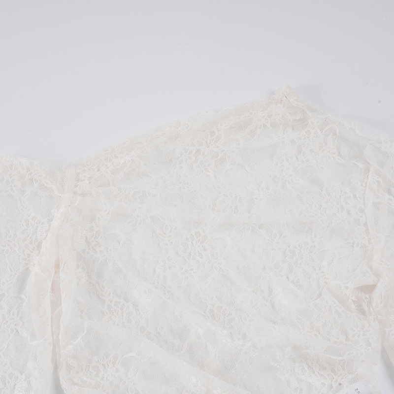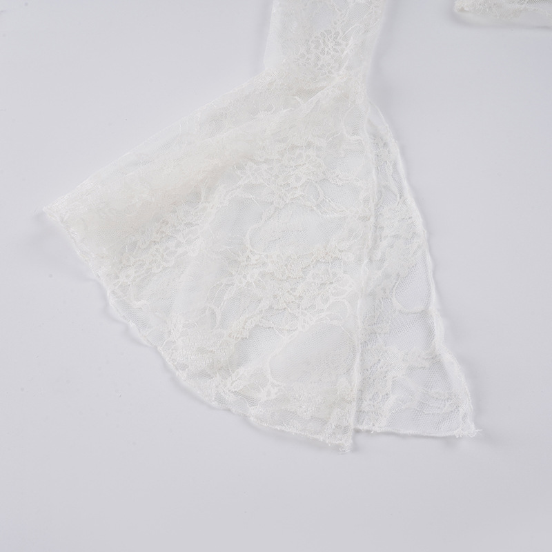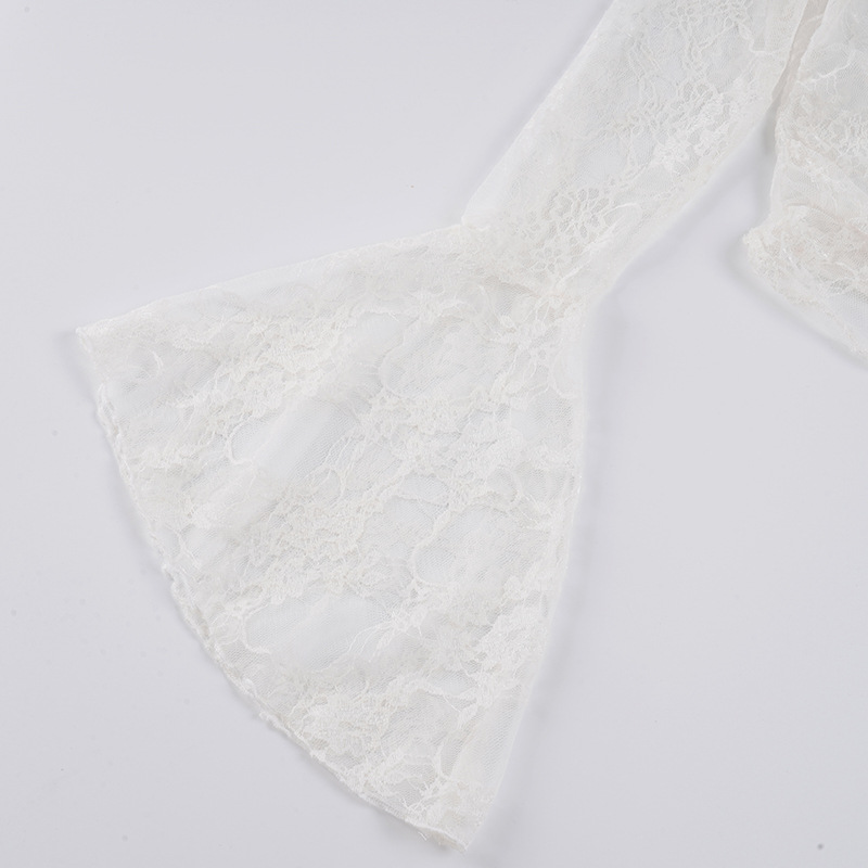 Pure desire sexy see-through lace jacquard horn sleeve T-shirt blouse irregular diagonal neck off-the-shoulder slim-fit thin top