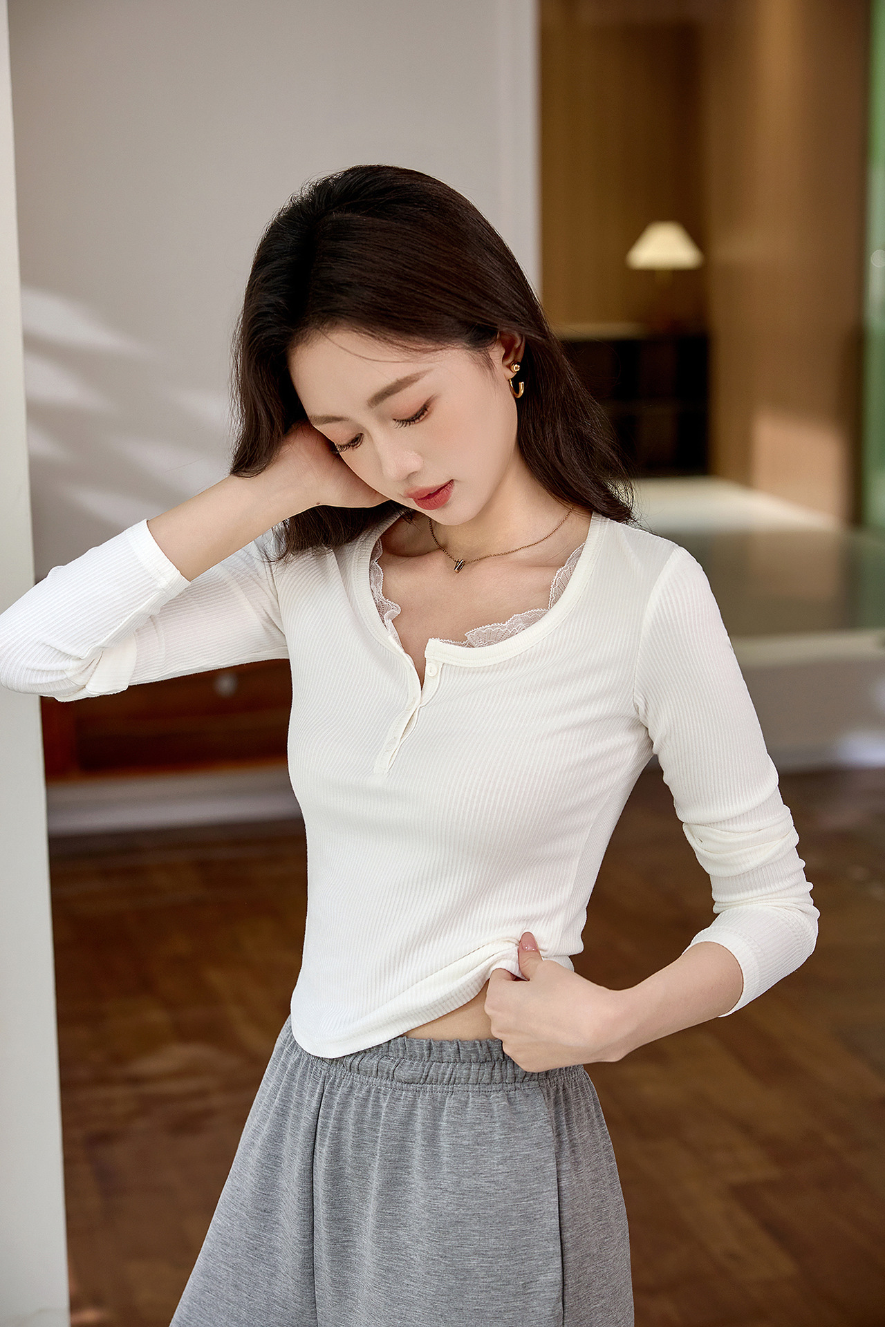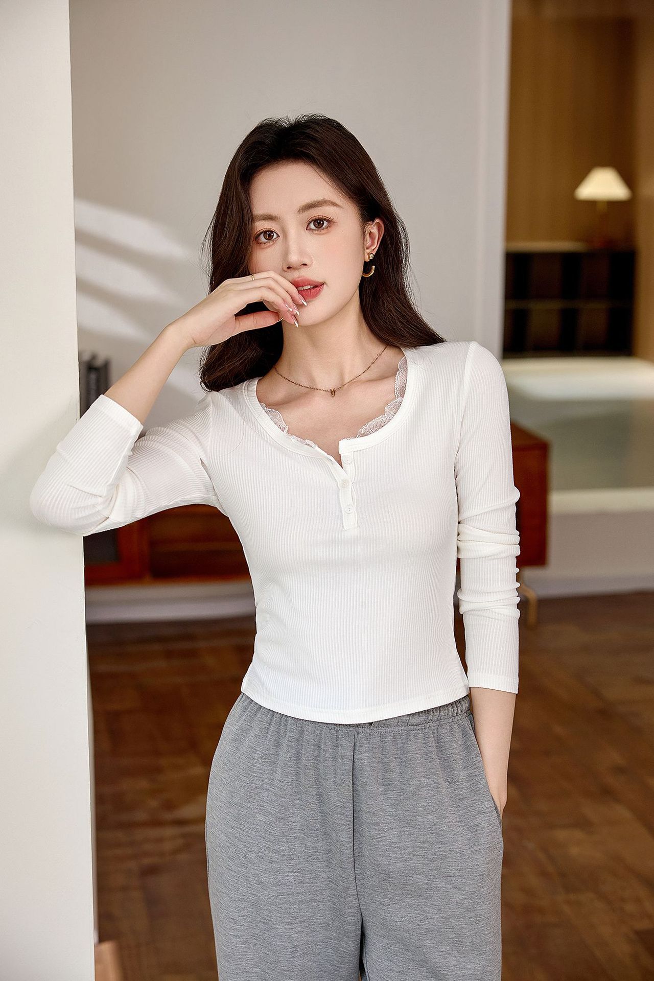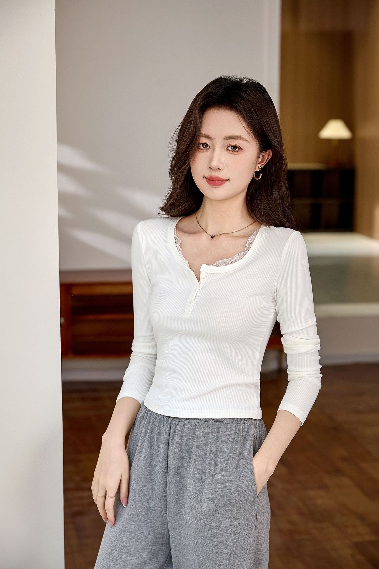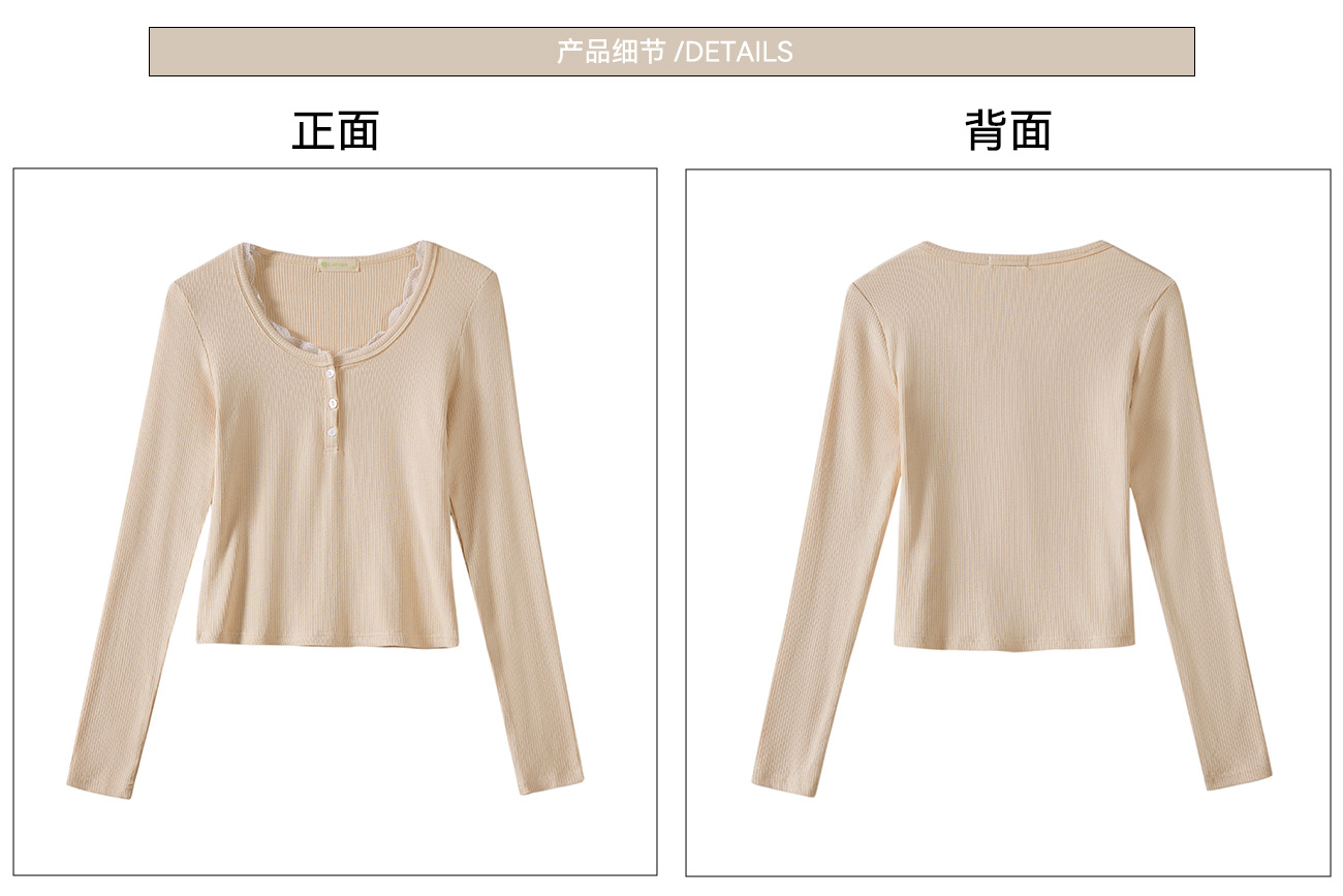 #Quality high-quality #lace lace button-up T-shirt women's long-sleeved 2026 autumn new pure desire front shoulder versatile top