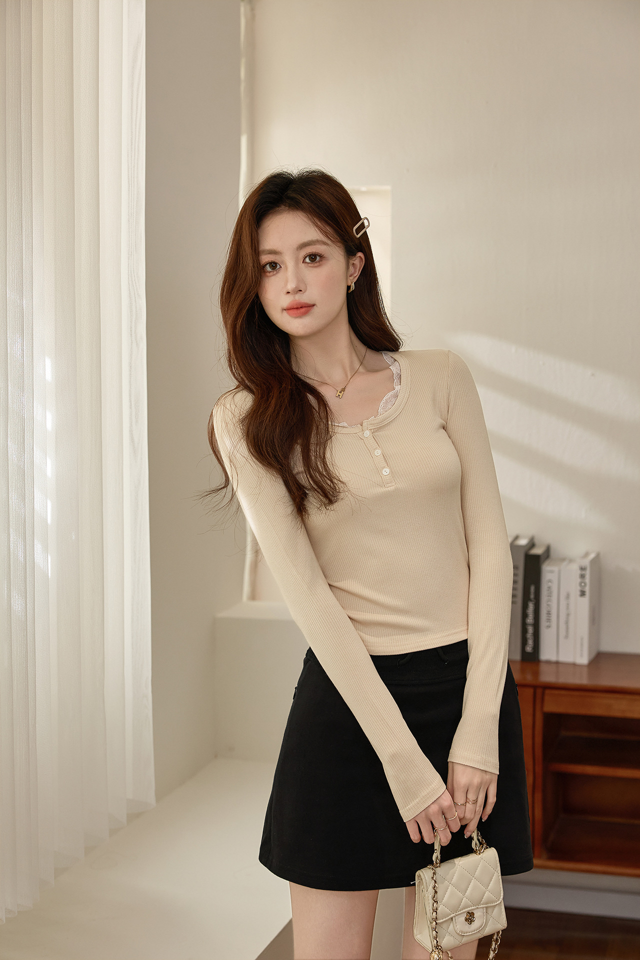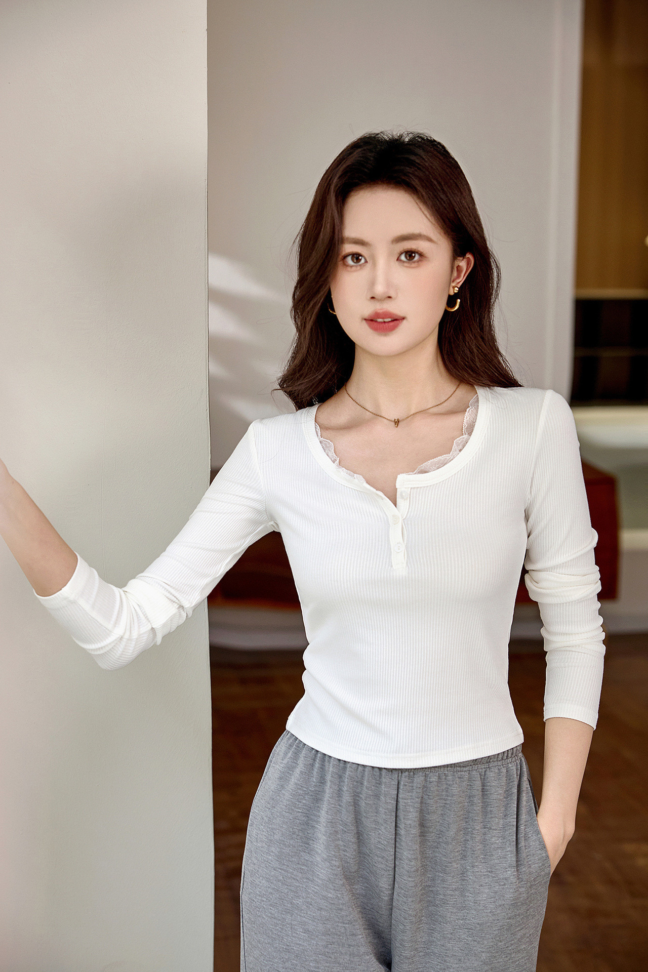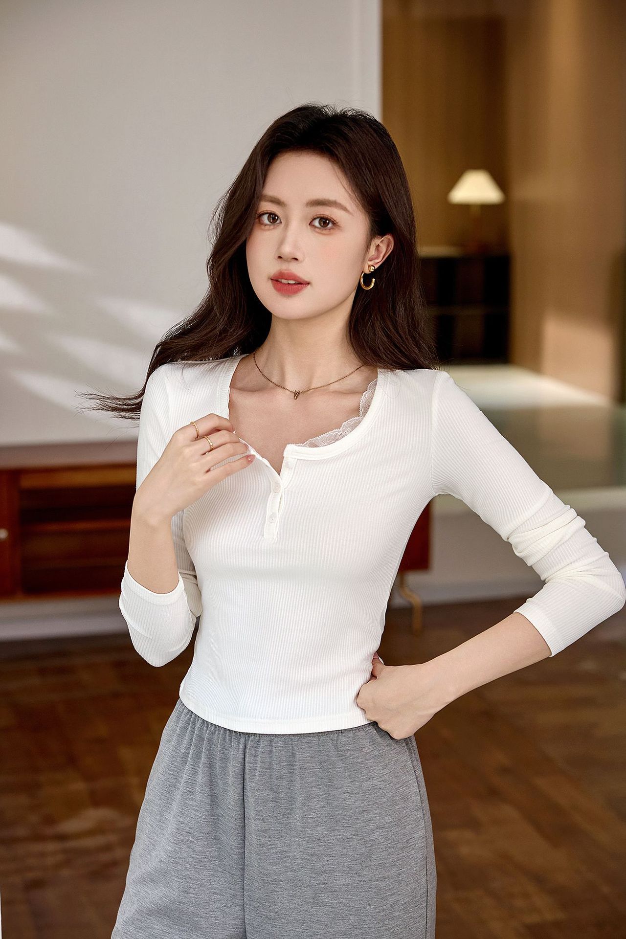 #Quality high-quality #lace lace button-up T-shirt women's long-sleeved 2026 autumn new pure desire front shoulder versatile top