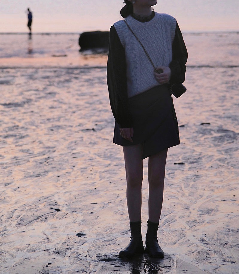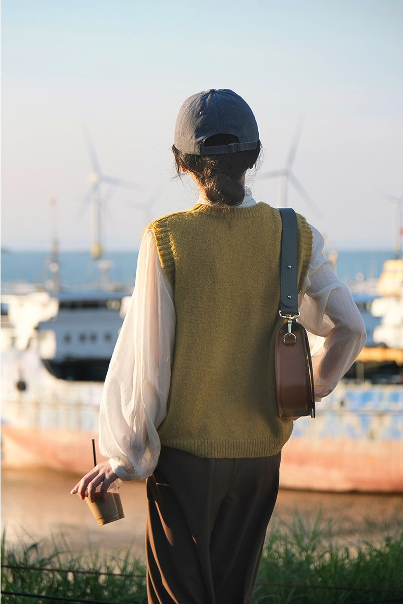 Ramesse | Autumn Wheat, Rhombus Twist Vintage Knitted Vest, Crew Neck Sweater Vest, Yellow/Apricot