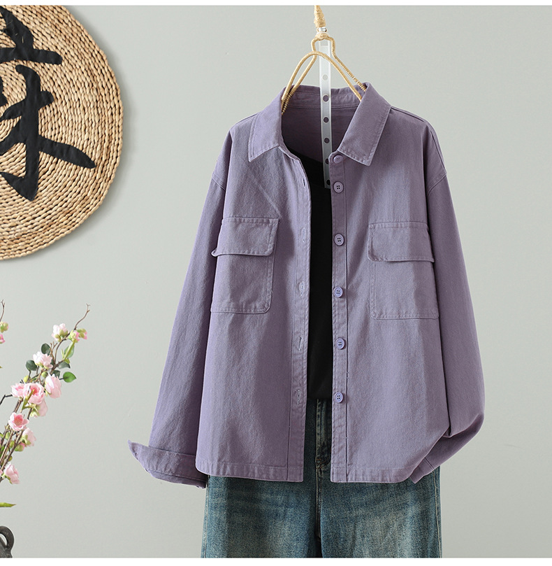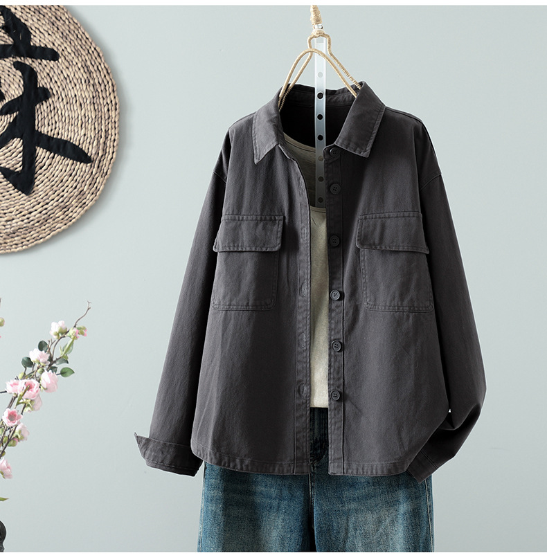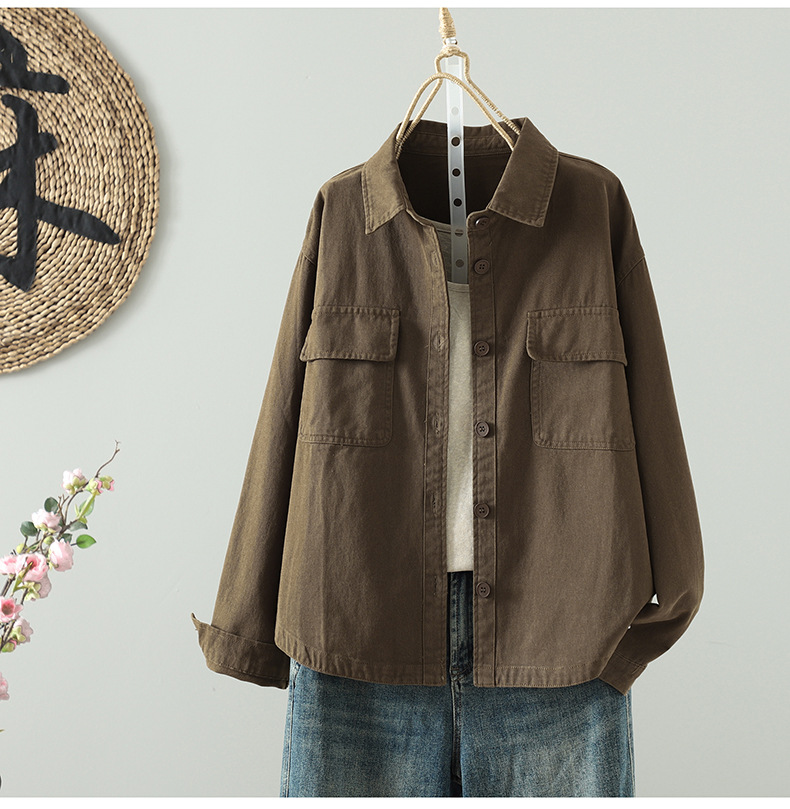 Real shirt women's long-sleeved Korean version of casual tooling autumn 2025 new small loose shirt thin coat