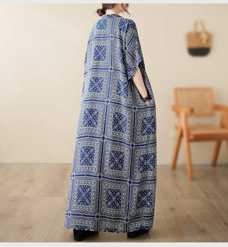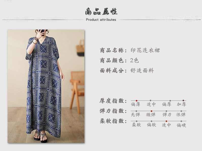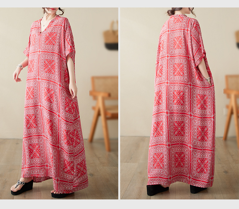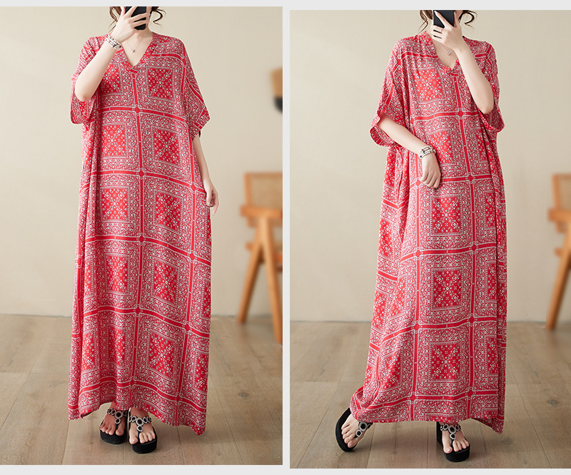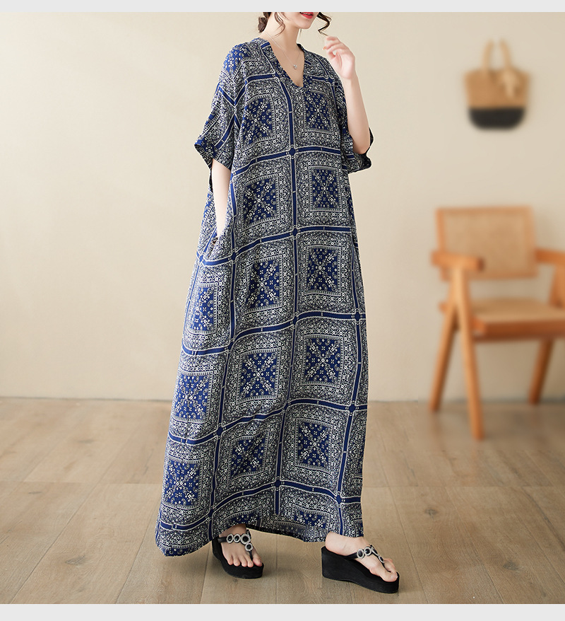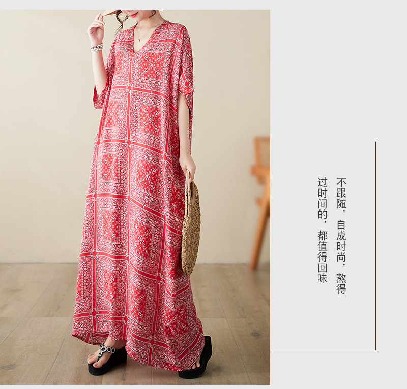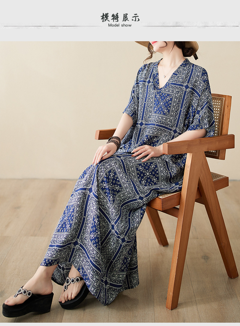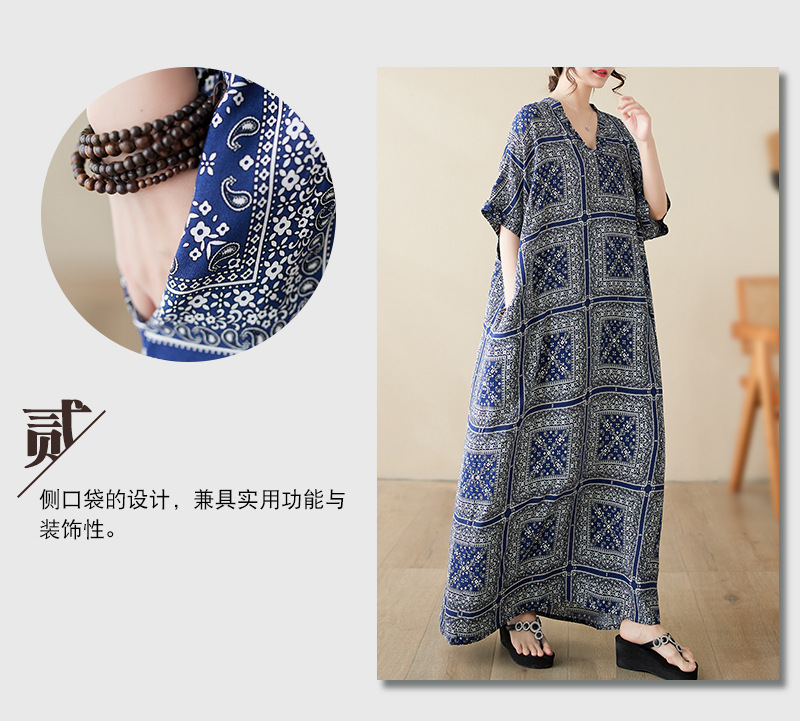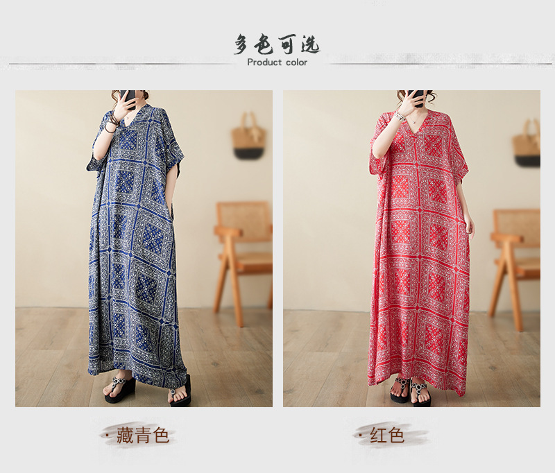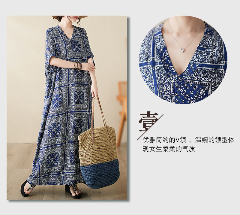 Real shot 20224 spring and summer V-neck thin cotton and linen large size loose literary holiday wind beach skirt retro long robe
