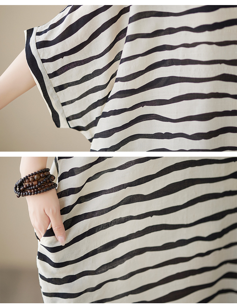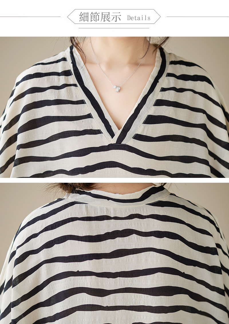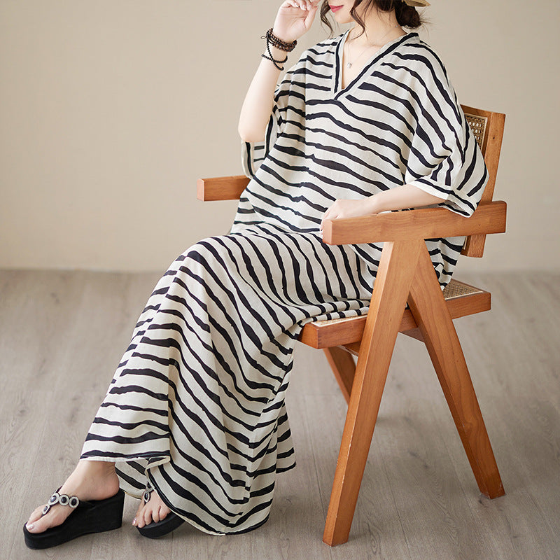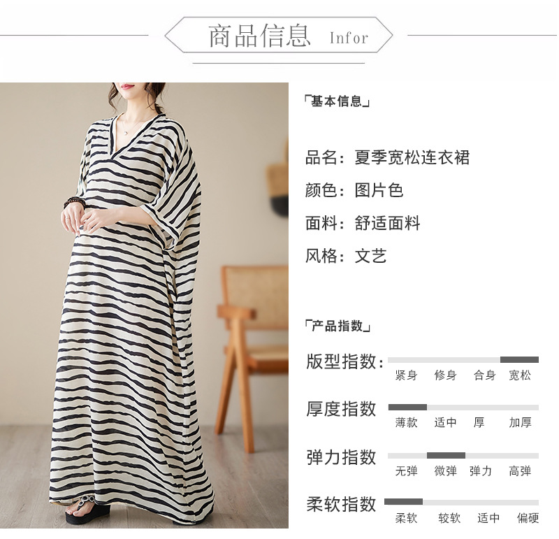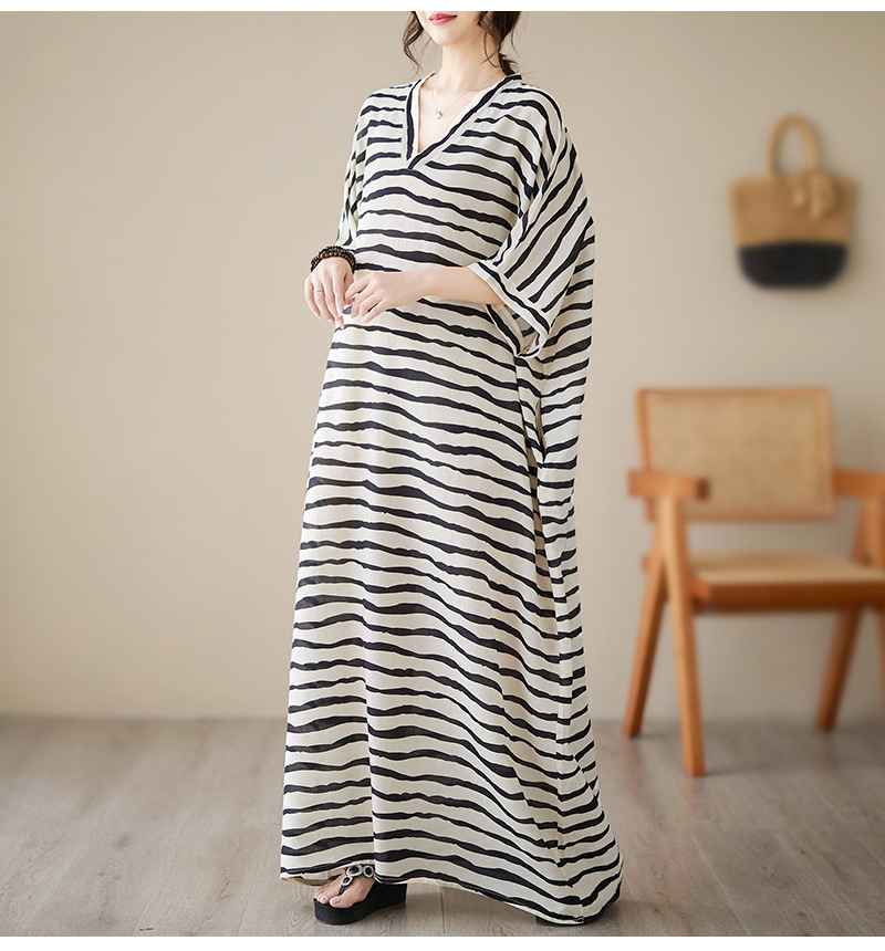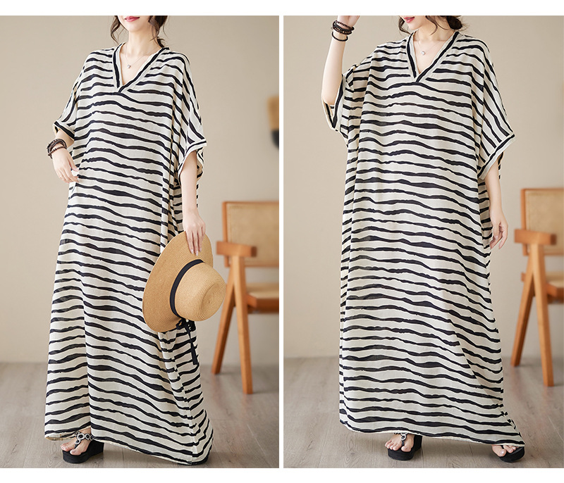 Real shot 2023 summer thin cotton and linen V-neck large size loose literary holiday style medium and long dress women