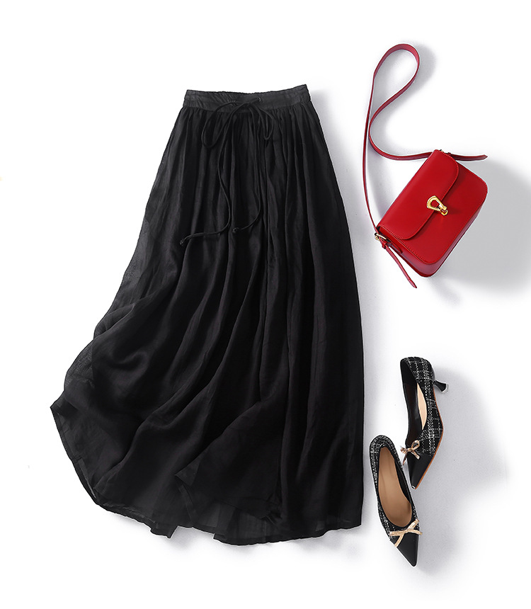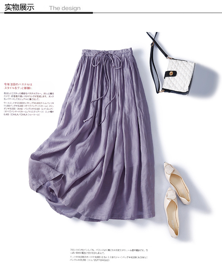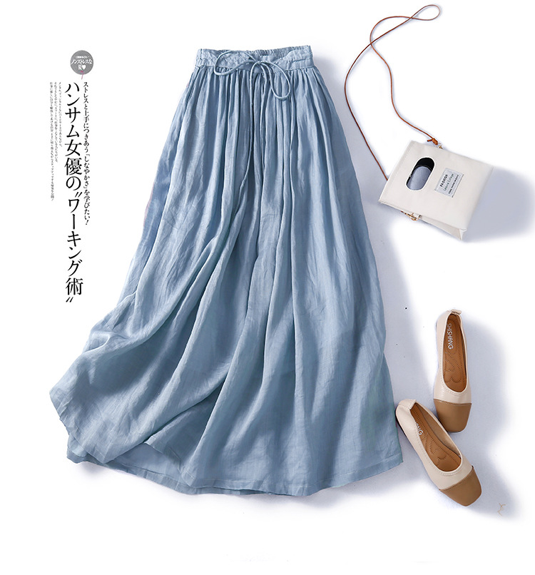 Real shot 2024 spring and summer new solid color literary retro loose medium and long skirt women