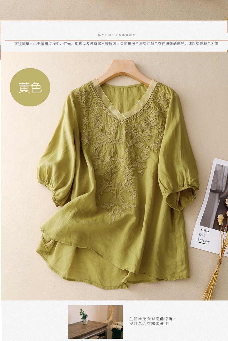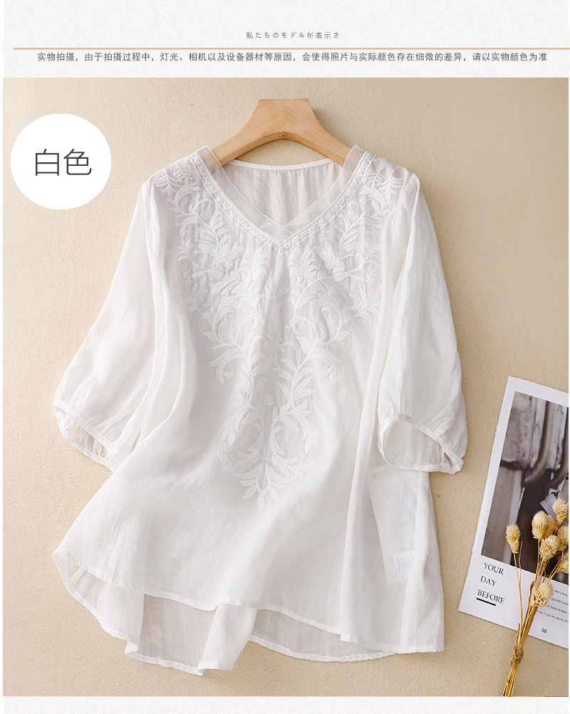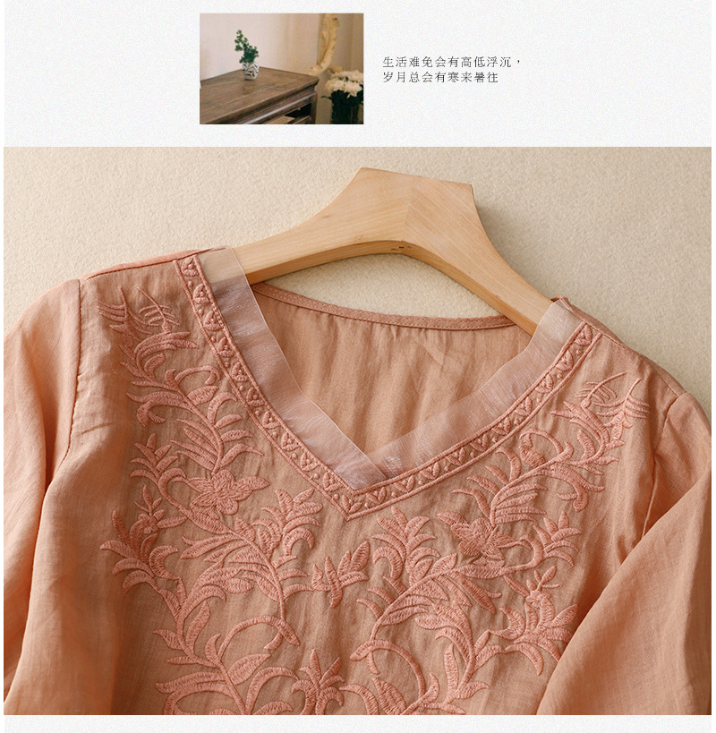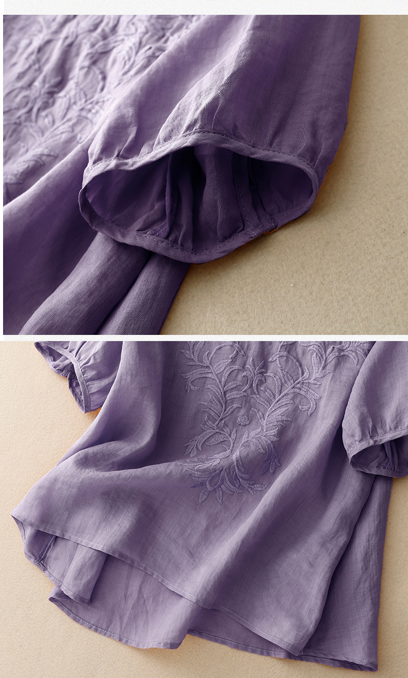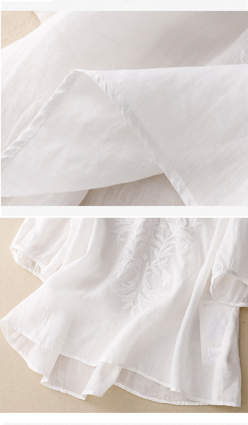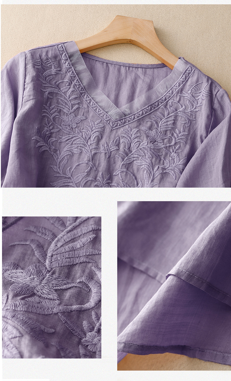Real shot 2024 summer new cotton and linen embroidered literary and retro top T-shirt women