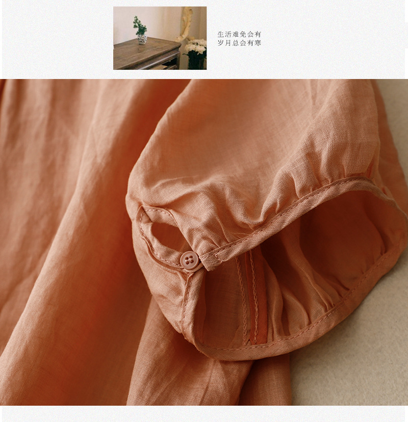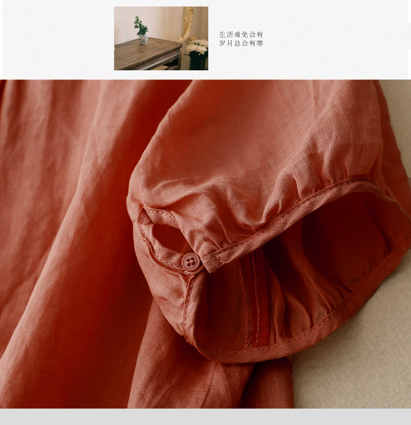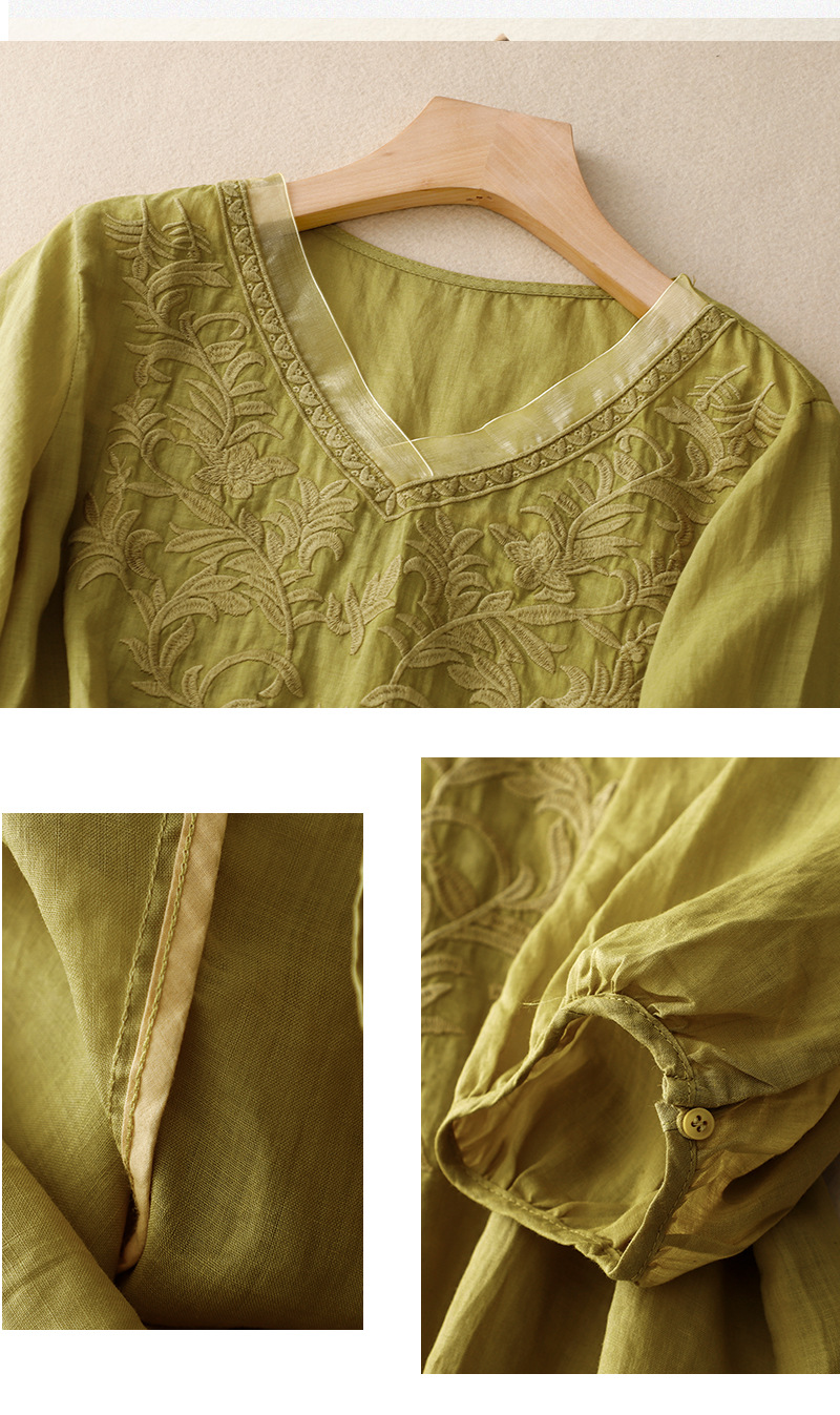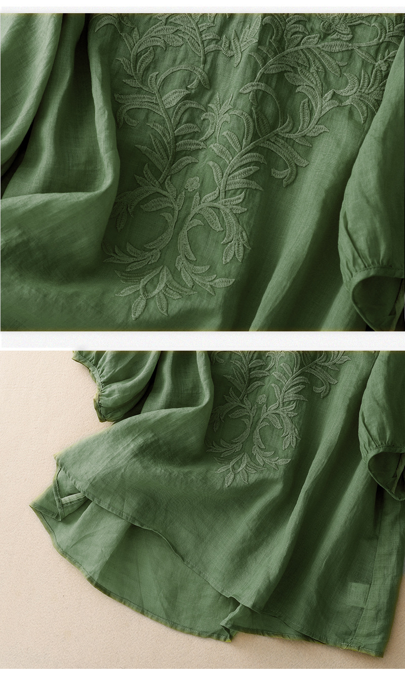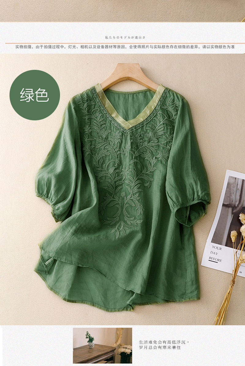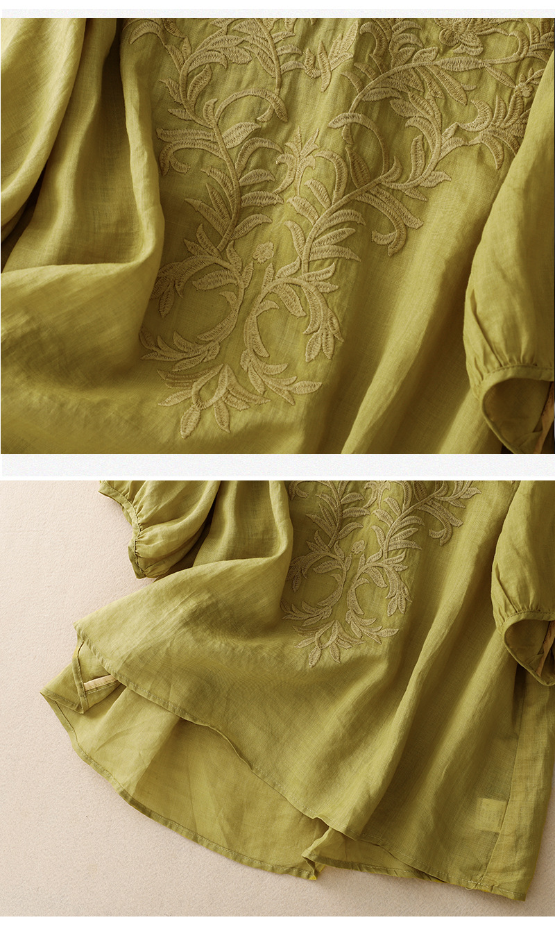 Real shot 2024 summer new cotton and linen embroidered literary and retro top T-shirt women