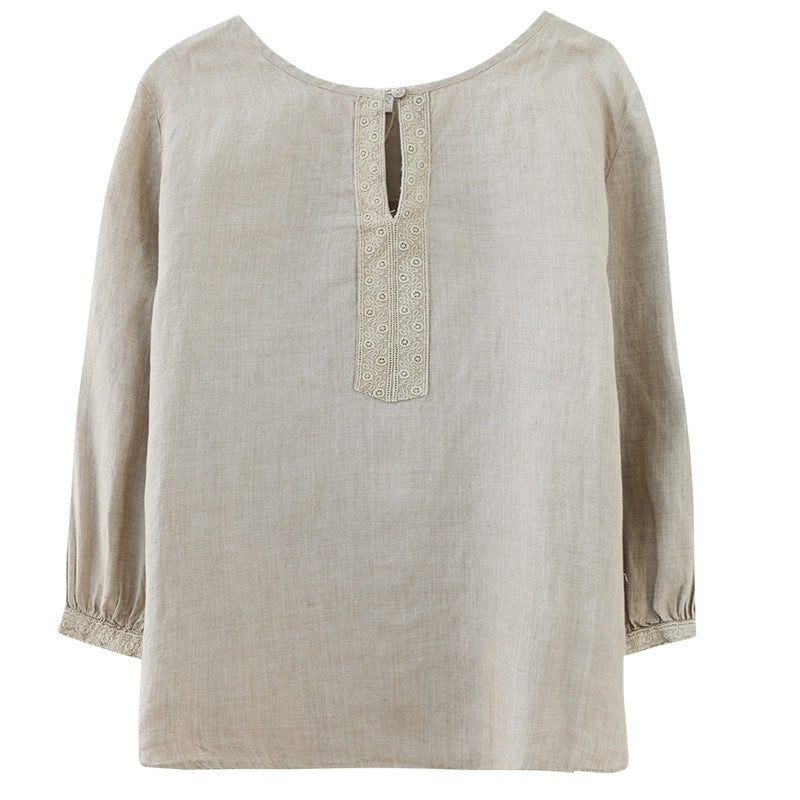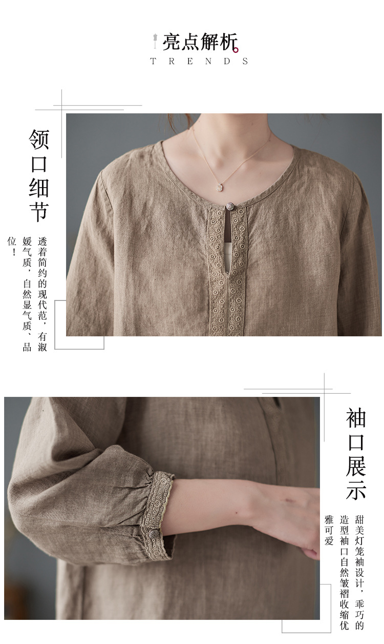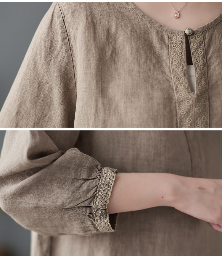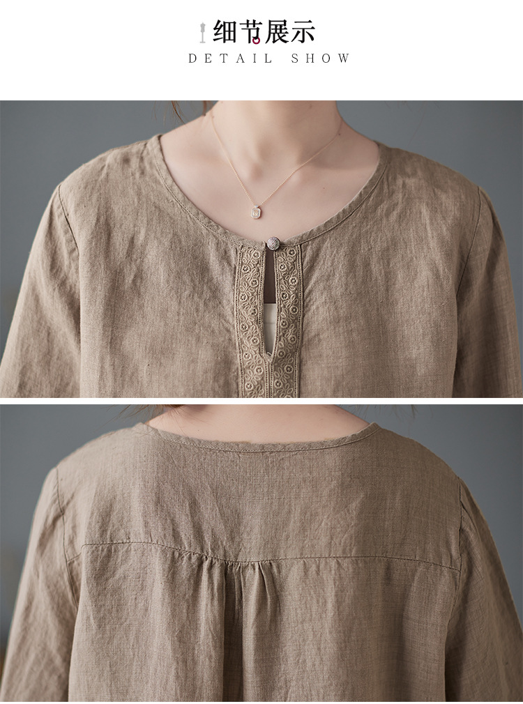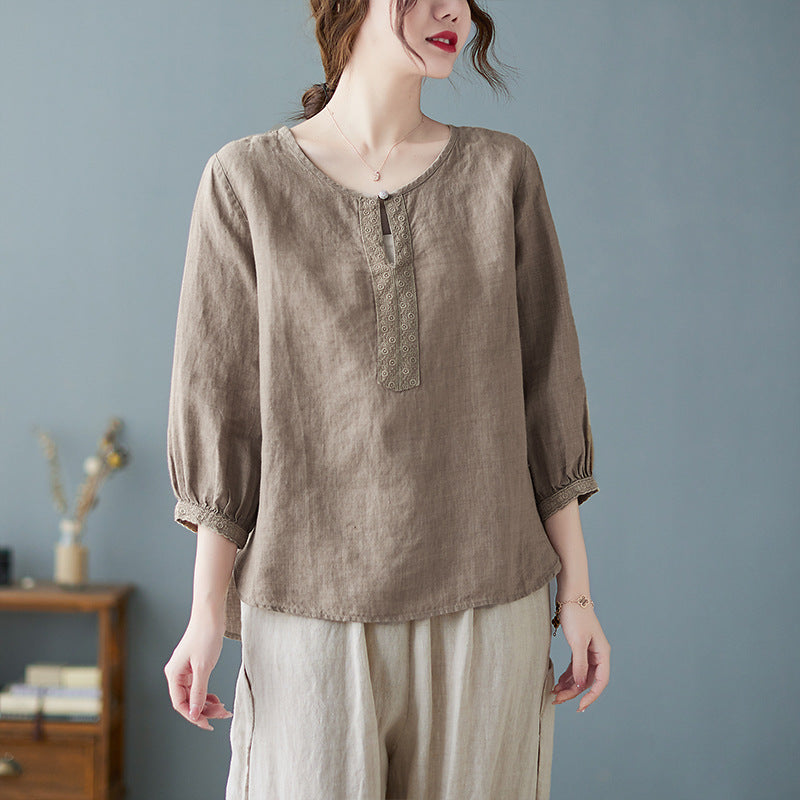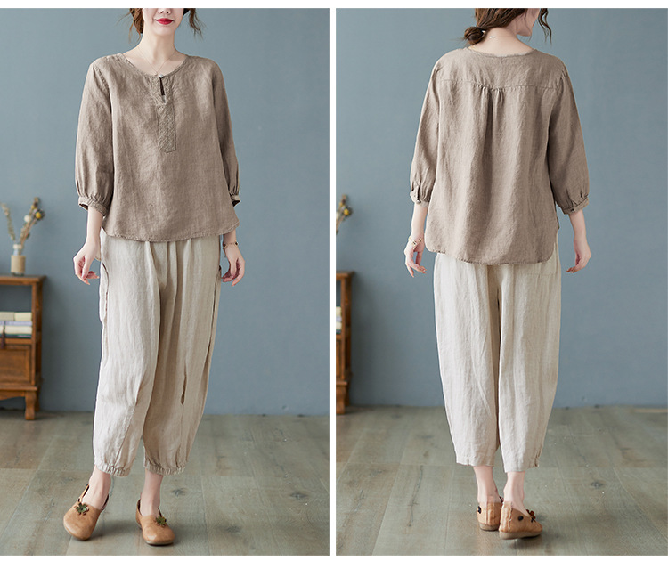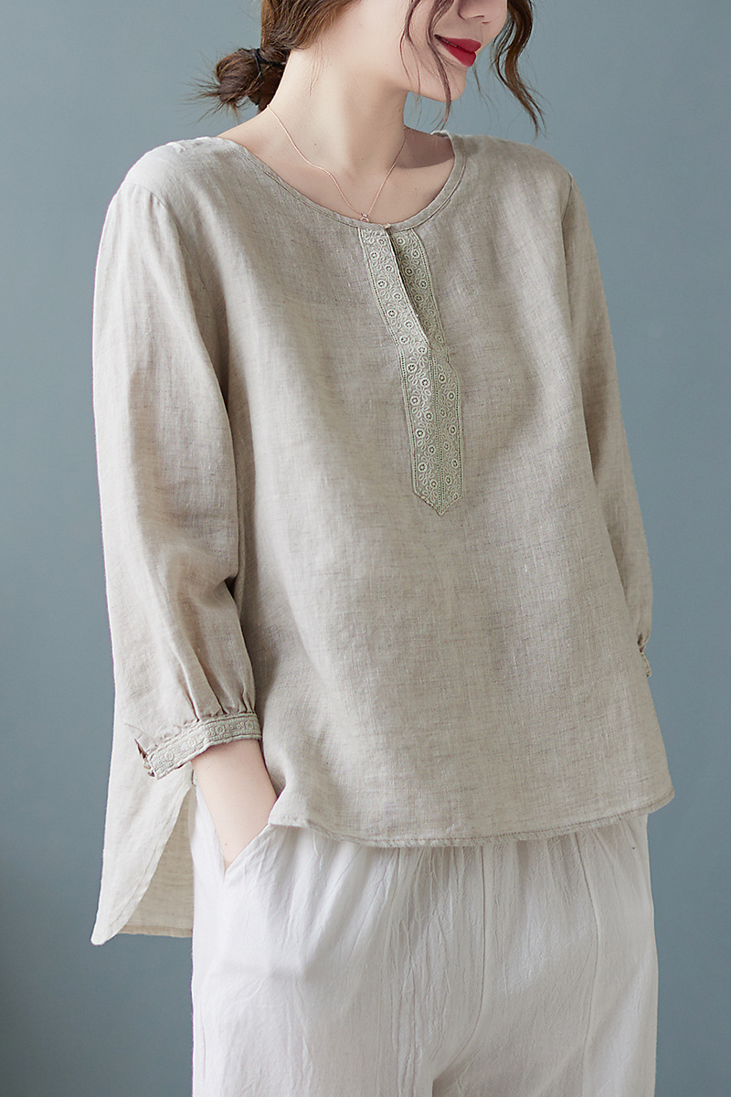 Real shot 2024 summer new cotton and linen literary and retro loose short-sleeved shirt top T-shirt women