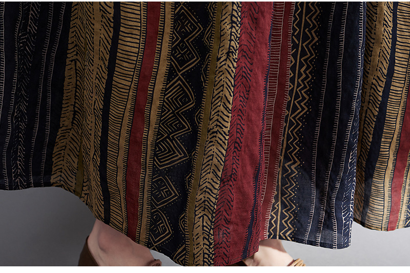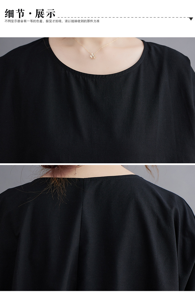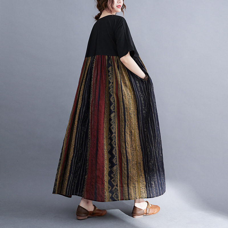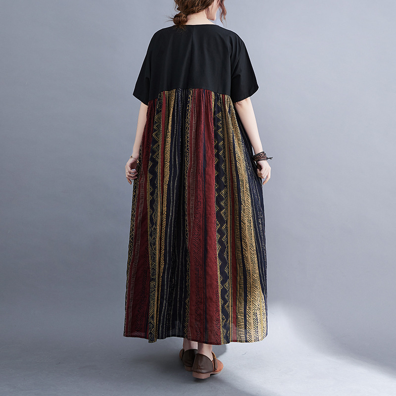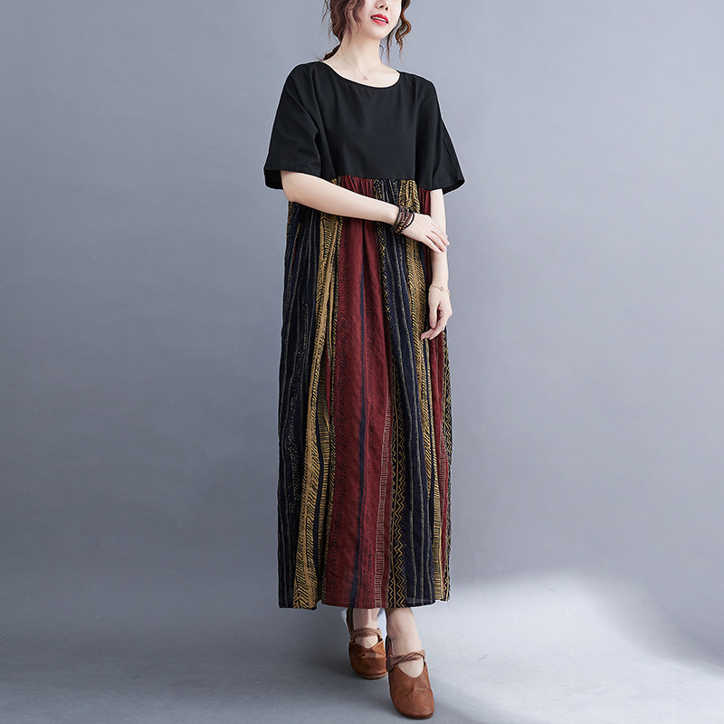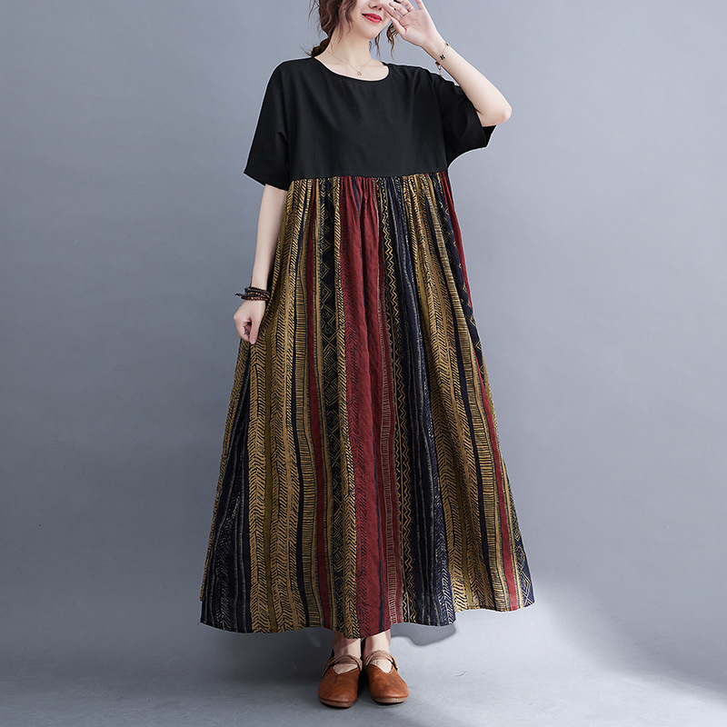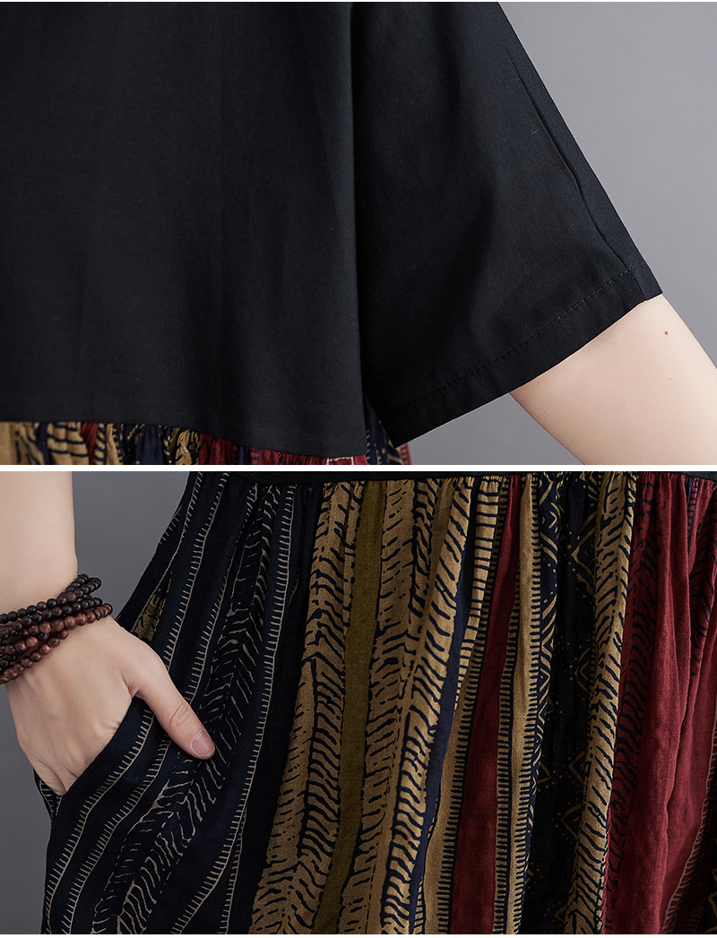 Real shot 2024 summer new literary large size loose cotton and linen printing short-sleeved dress women's long dress 9107 #