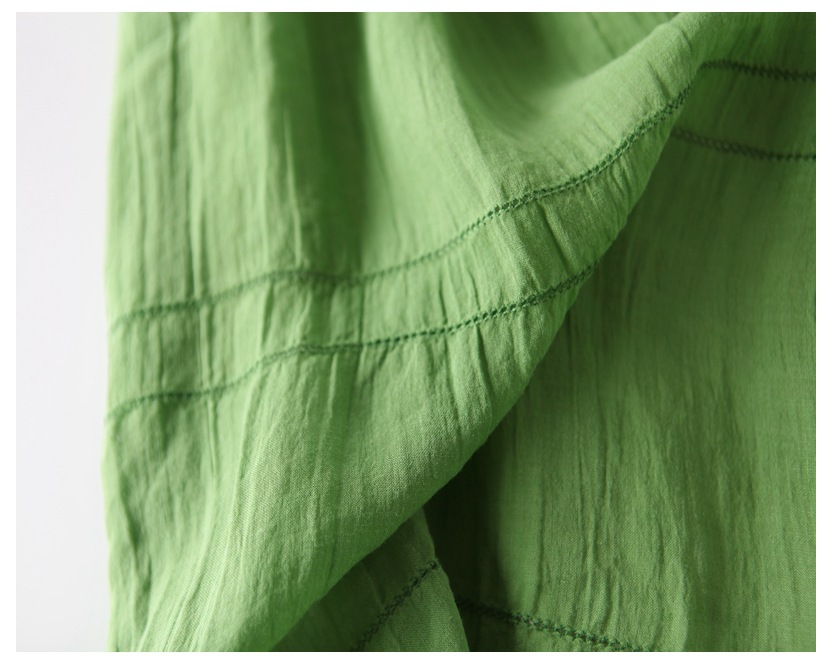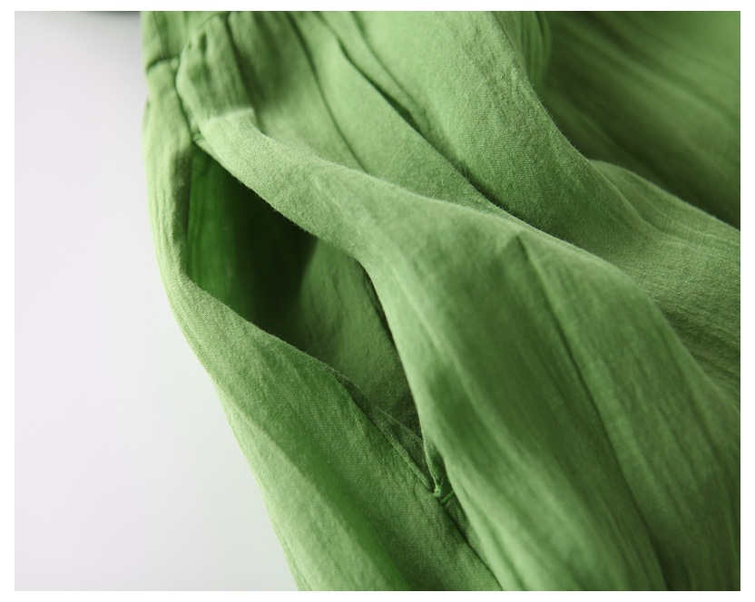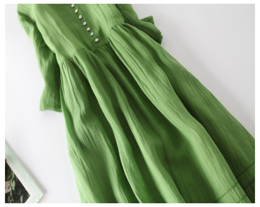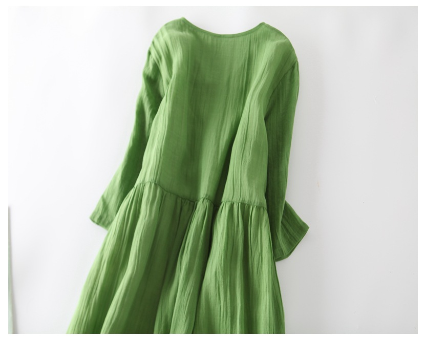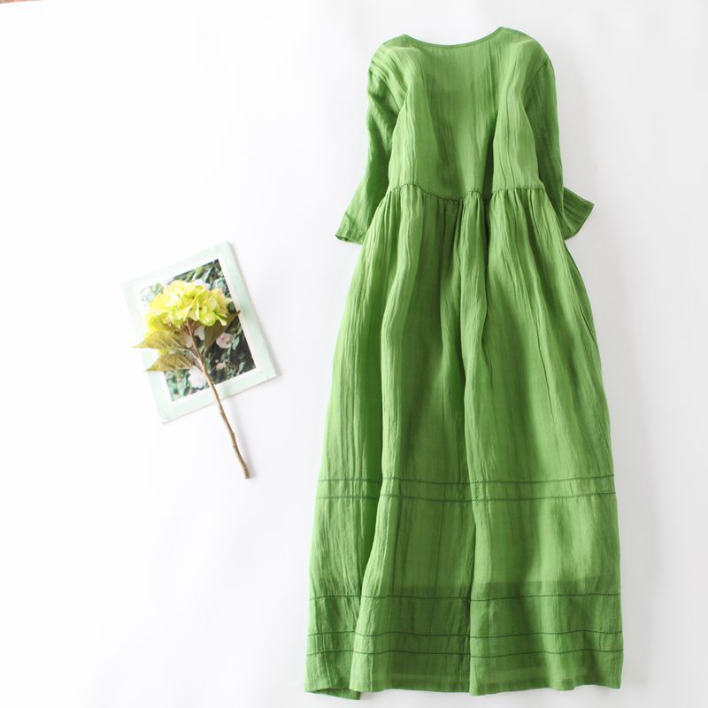 Real shot 2024 summer new literary loose splicing solid color cotton and linen round neck five-quarter sleeve dress women's medium and long