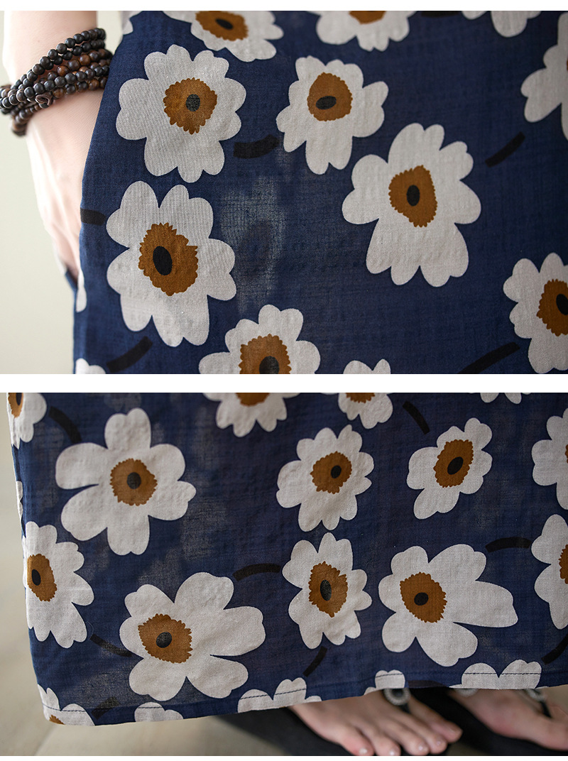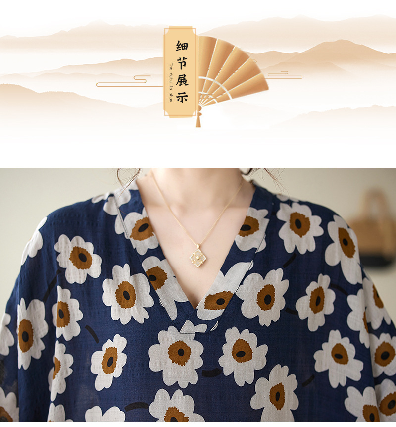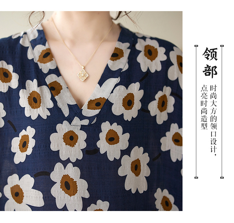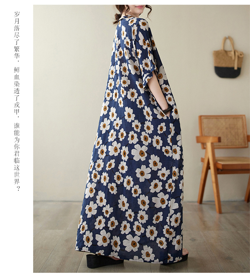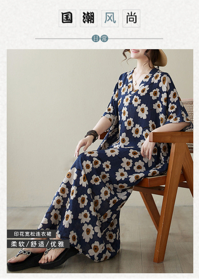 Real shot 2024 summer new V-neck cotton and linen large size loose literary holiday style medium and long beach dress women