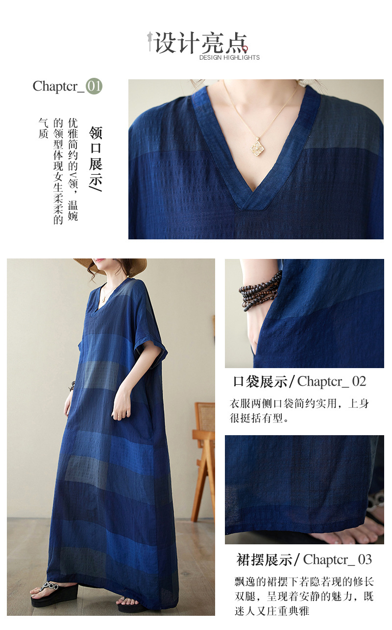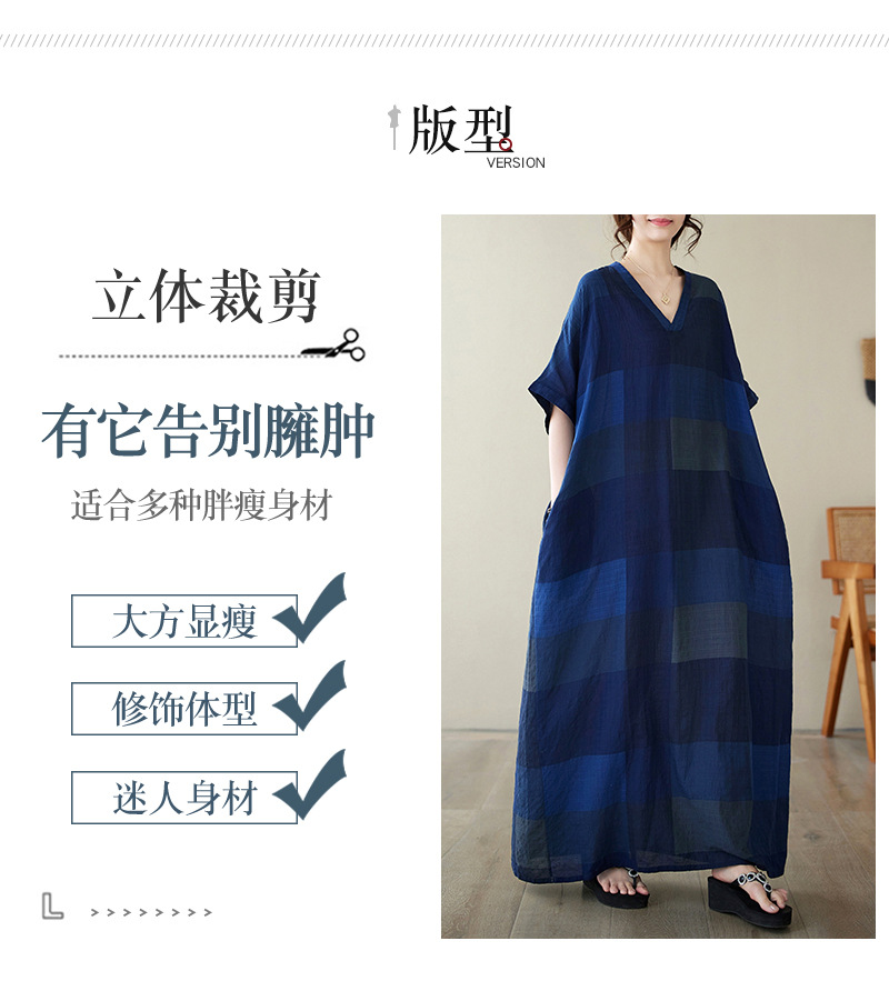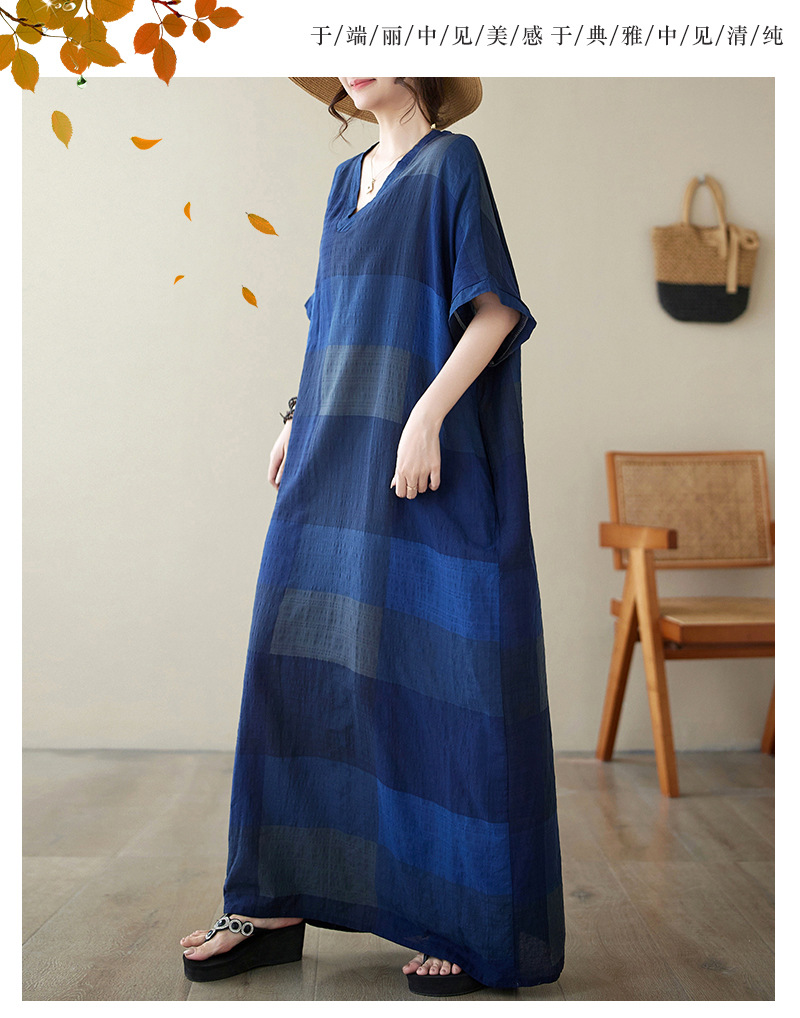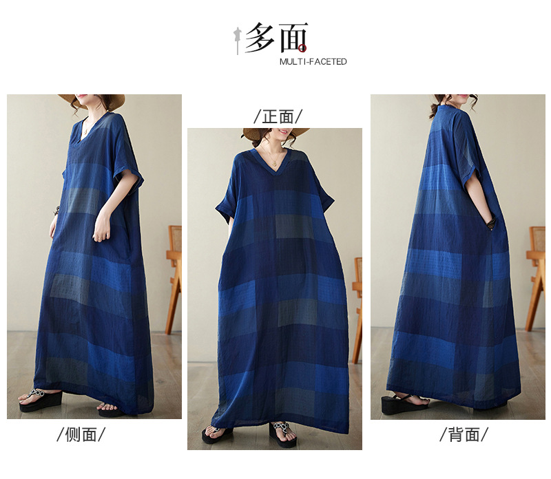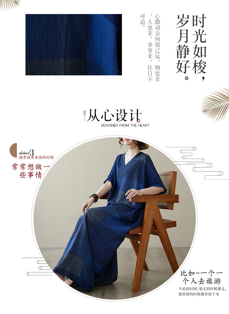 Real shot 2024 summer new V-neck cotton and linen large size loose literary holiday style medium and long beach dress women