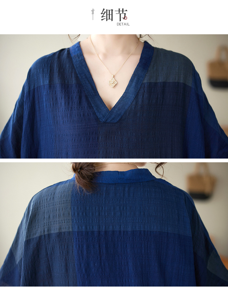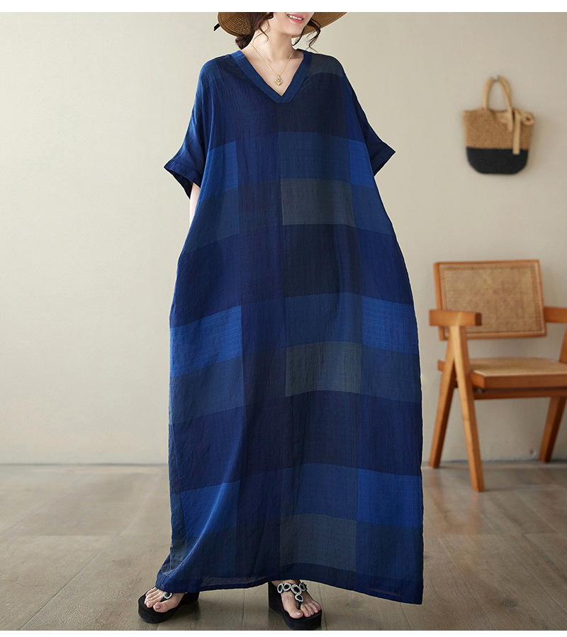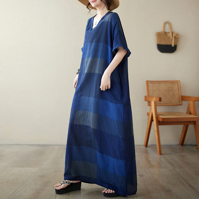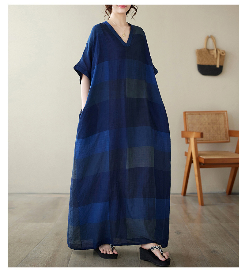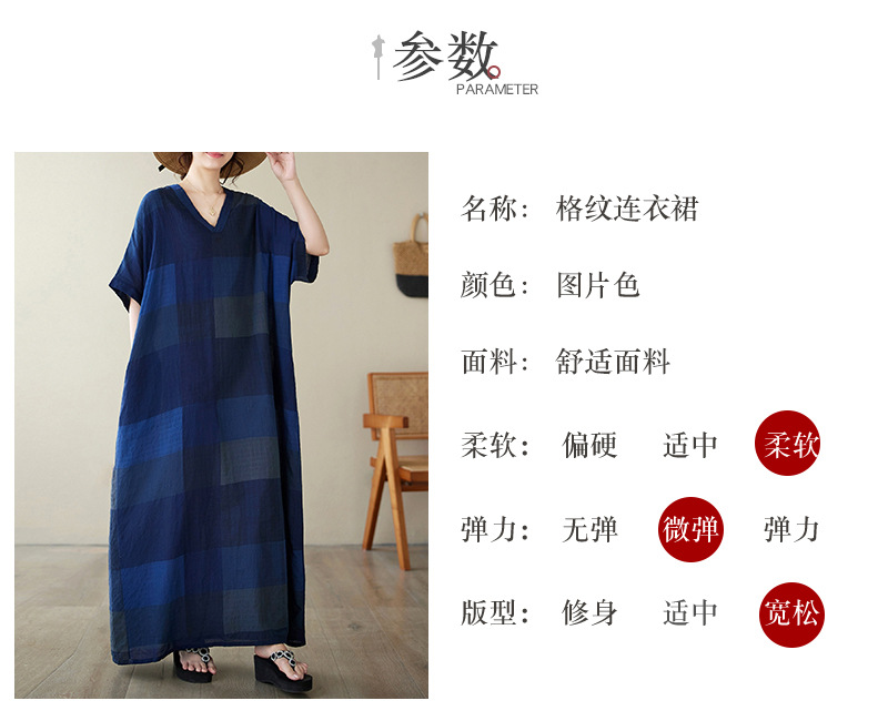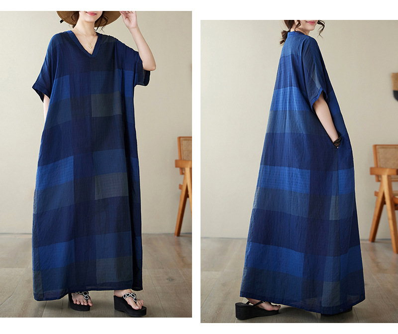 Real shot 2024 summer new V-neck cotton and linen large size loose literary holiday style medium and long beach dress women