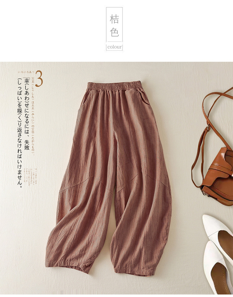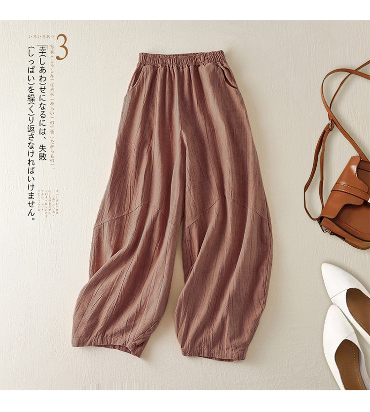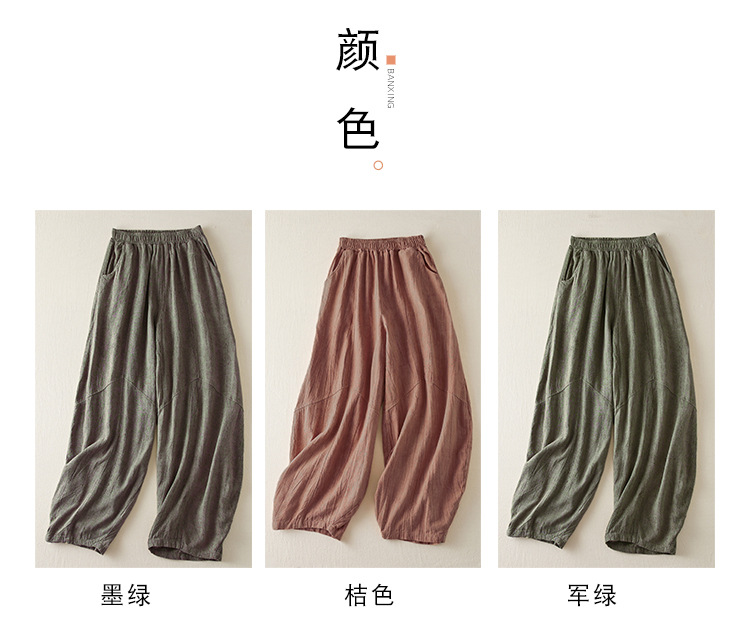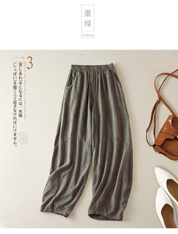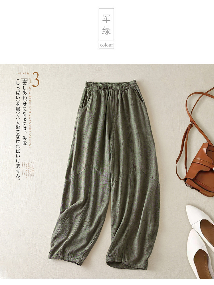 Real shot 2024 summer thin cotton and linen retro bloomers casual loose zen straight radish trousers women