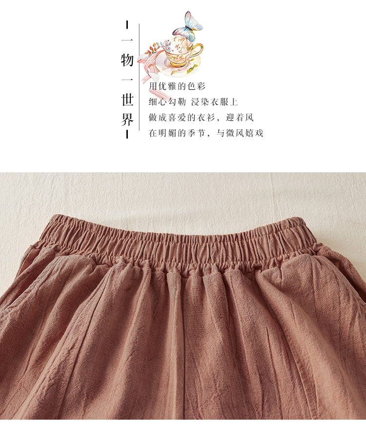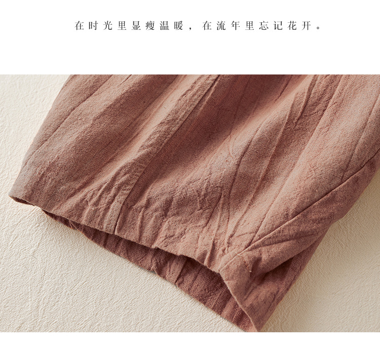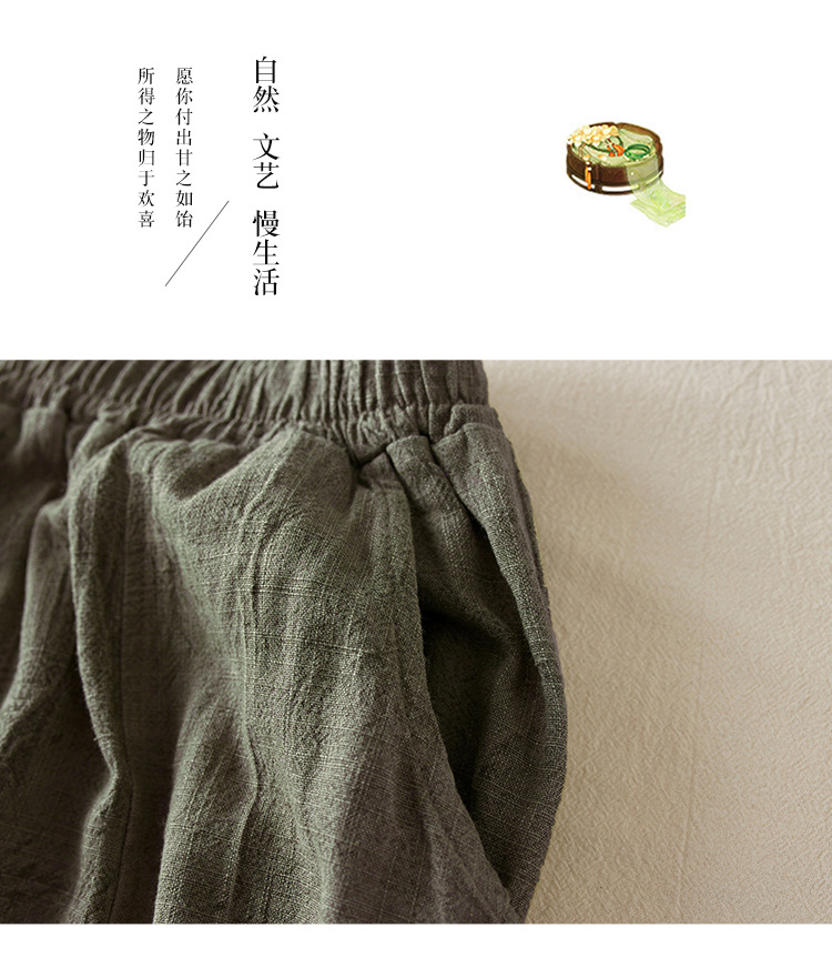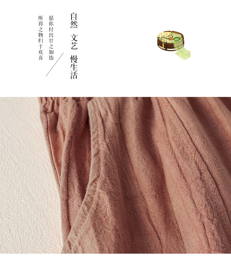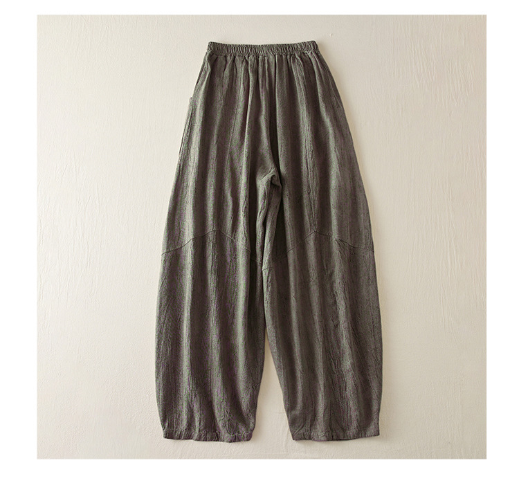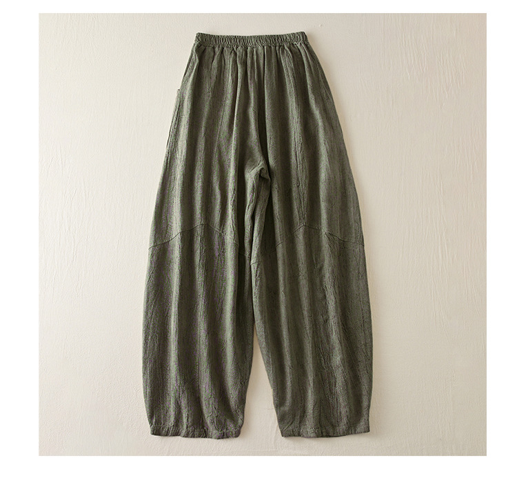 Real shot 2024 summer thin cotton and linen retro bloomers casual loose zen straight radish trousers women