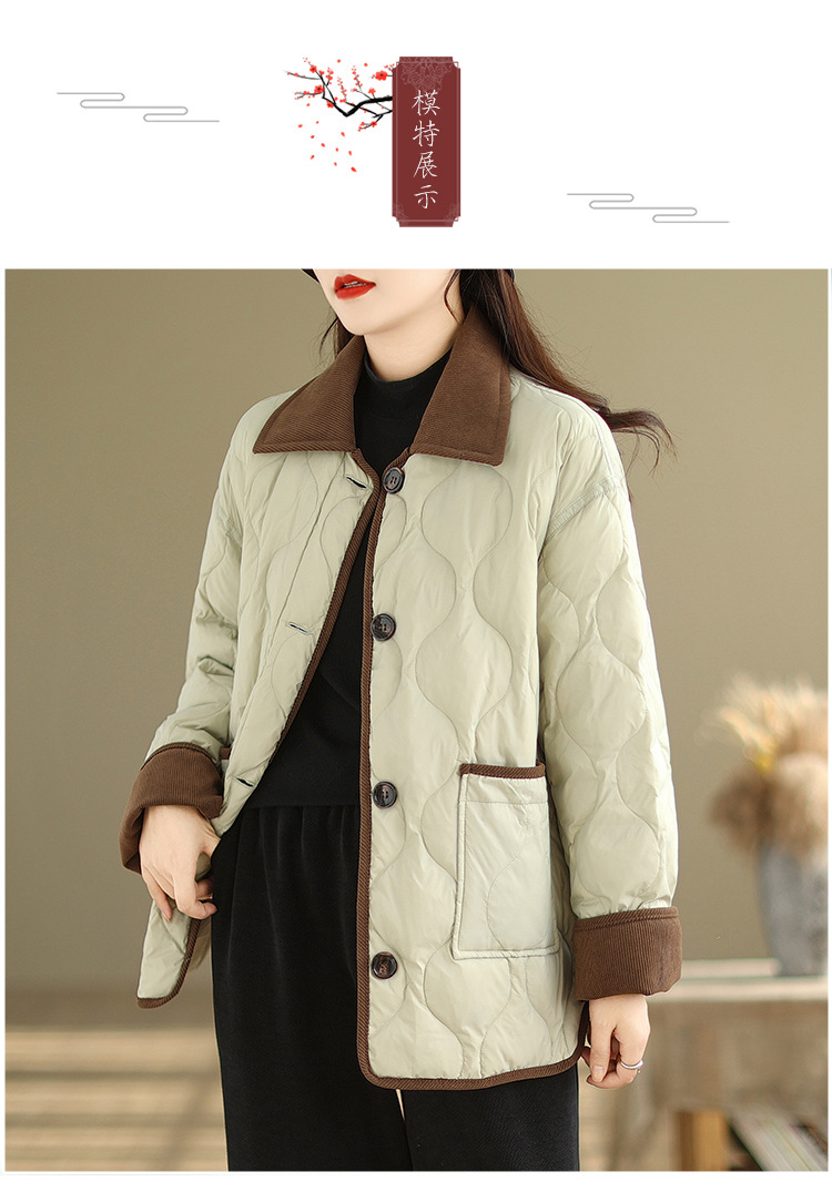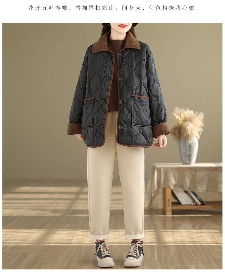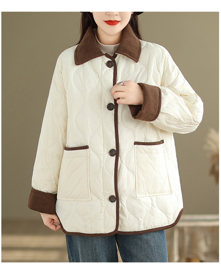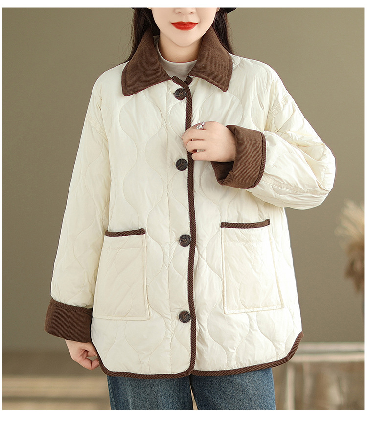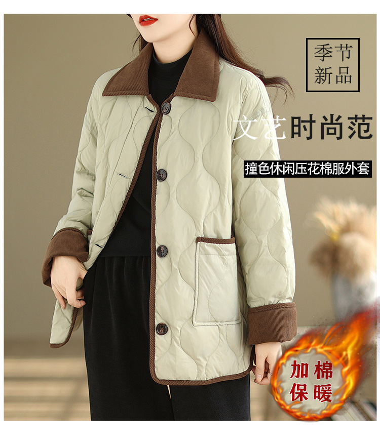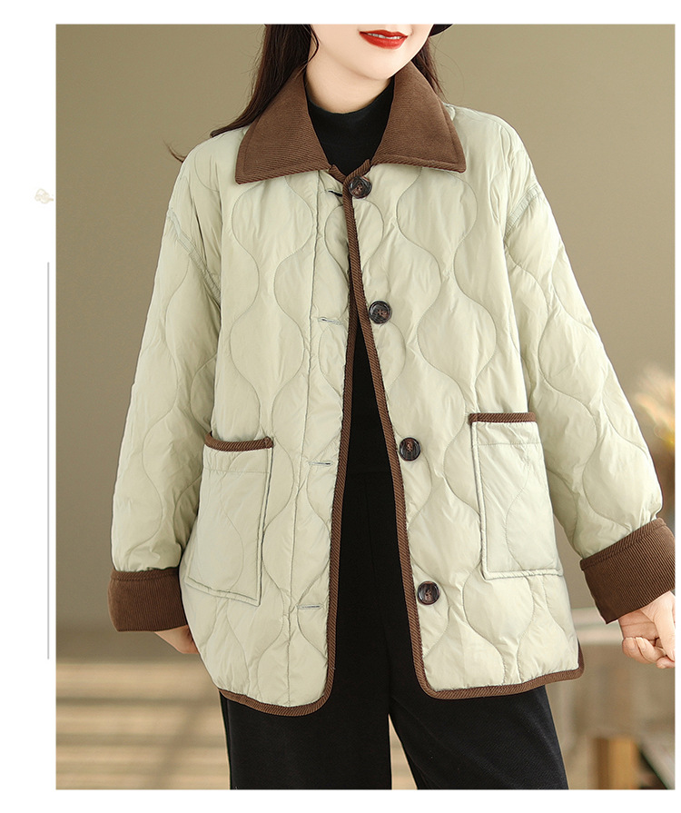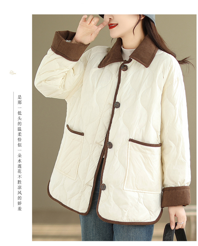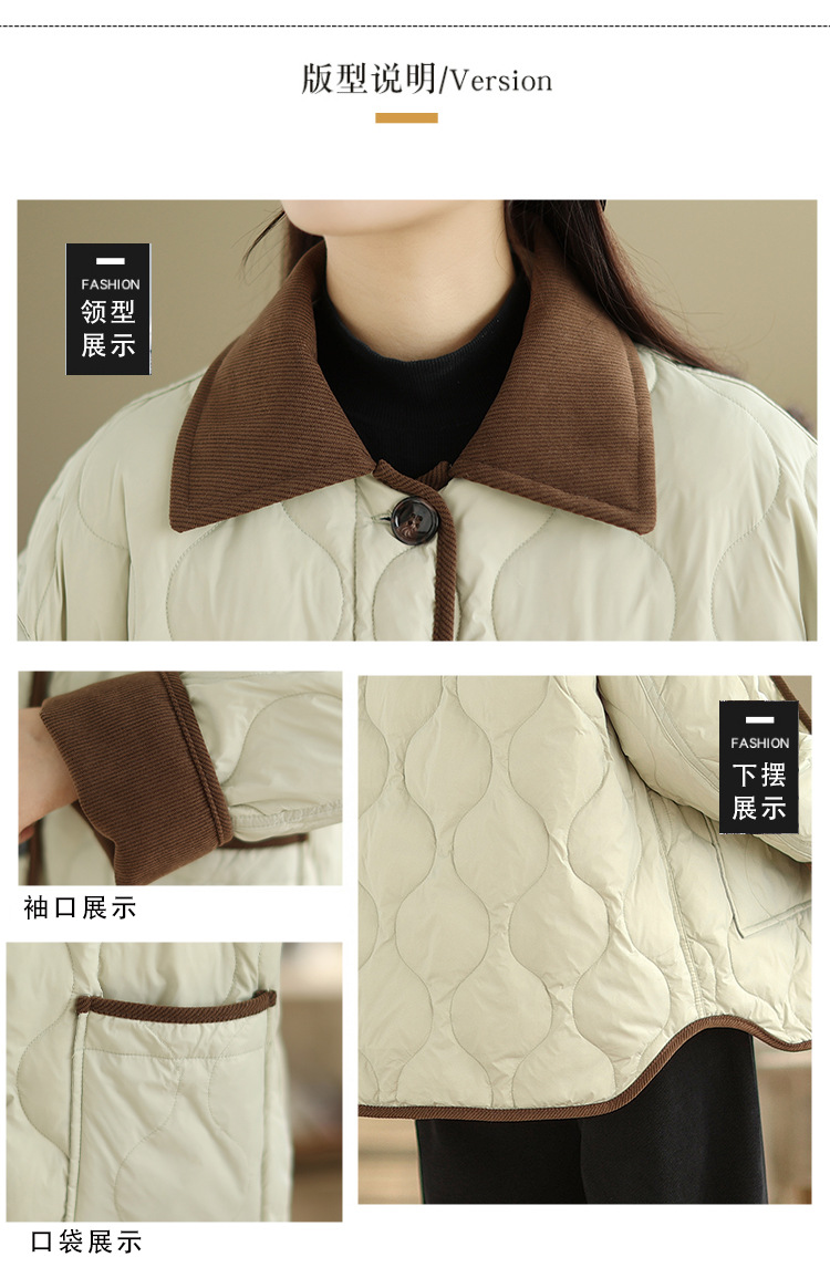 Real shot 2025 autumn and winter new light and short contrasting color lapel rhombus padded jacket women's cotton-padded clothes #1026