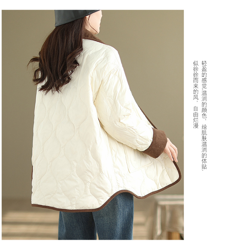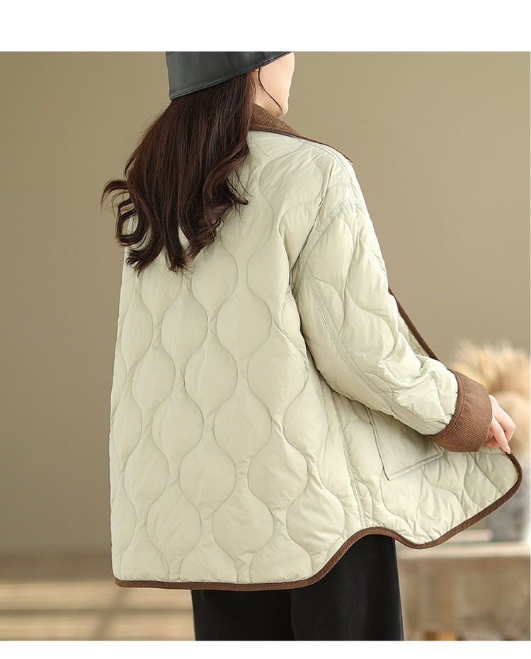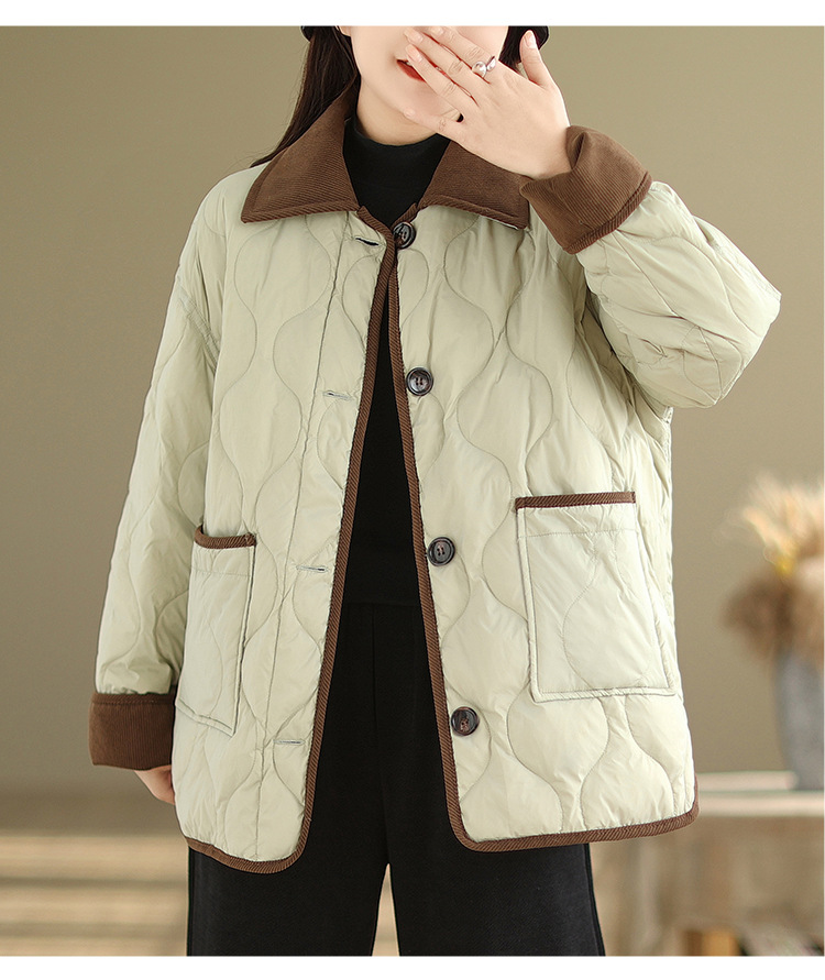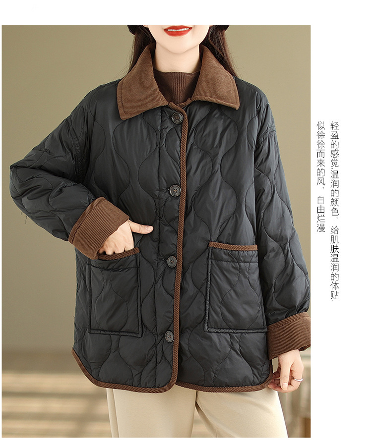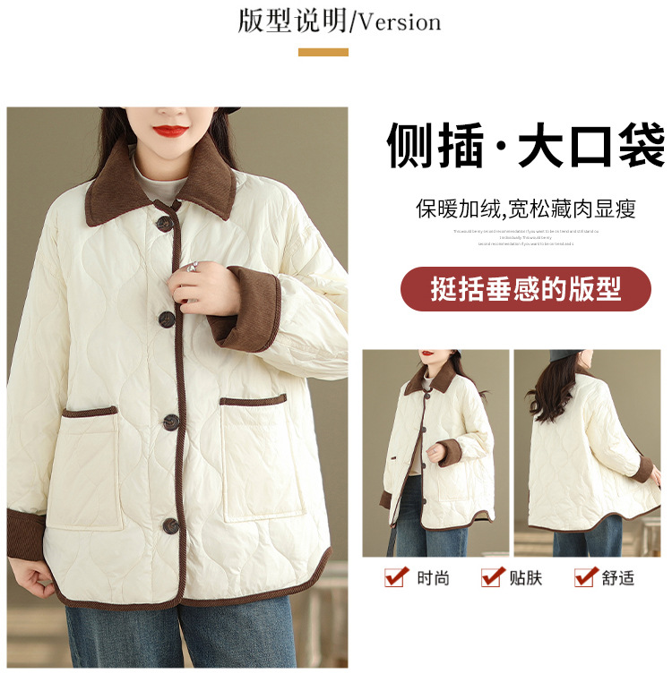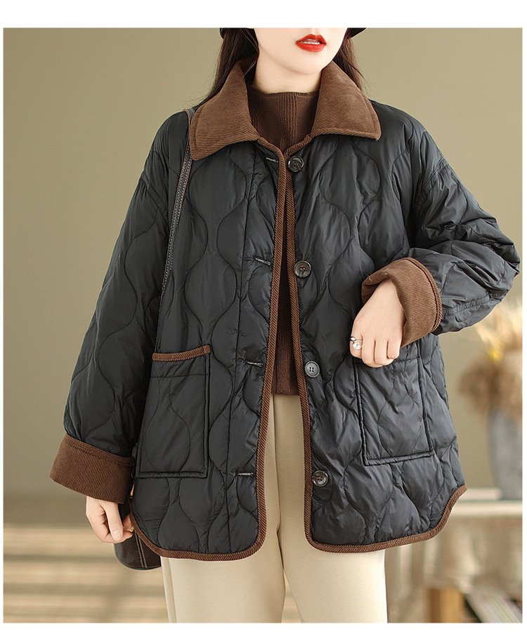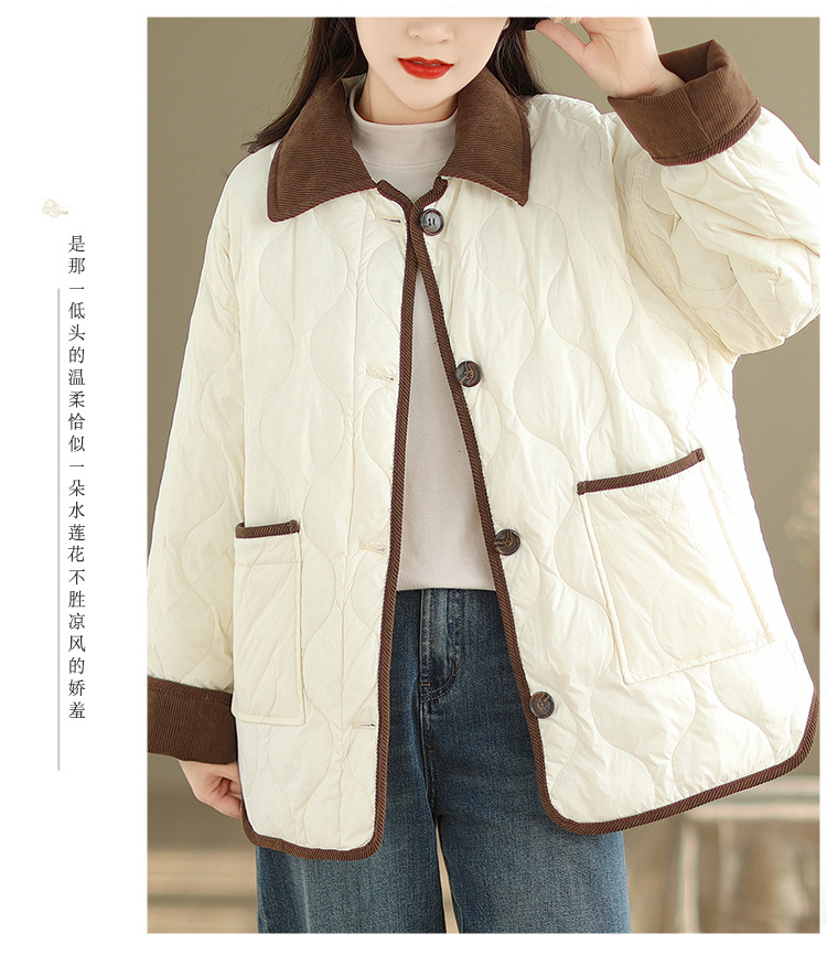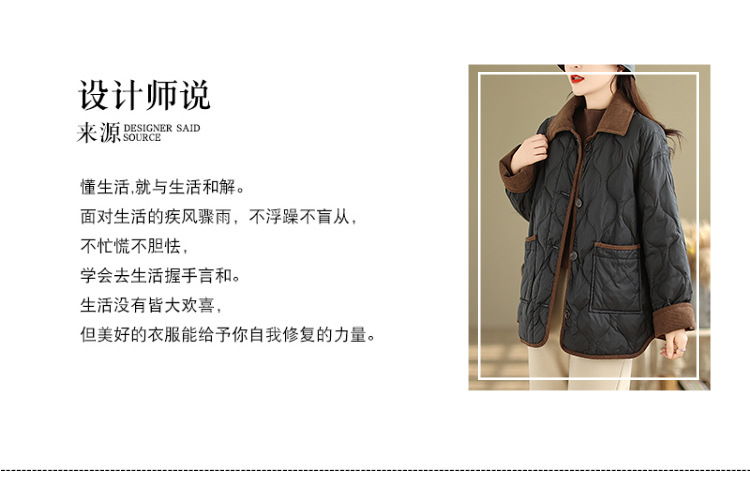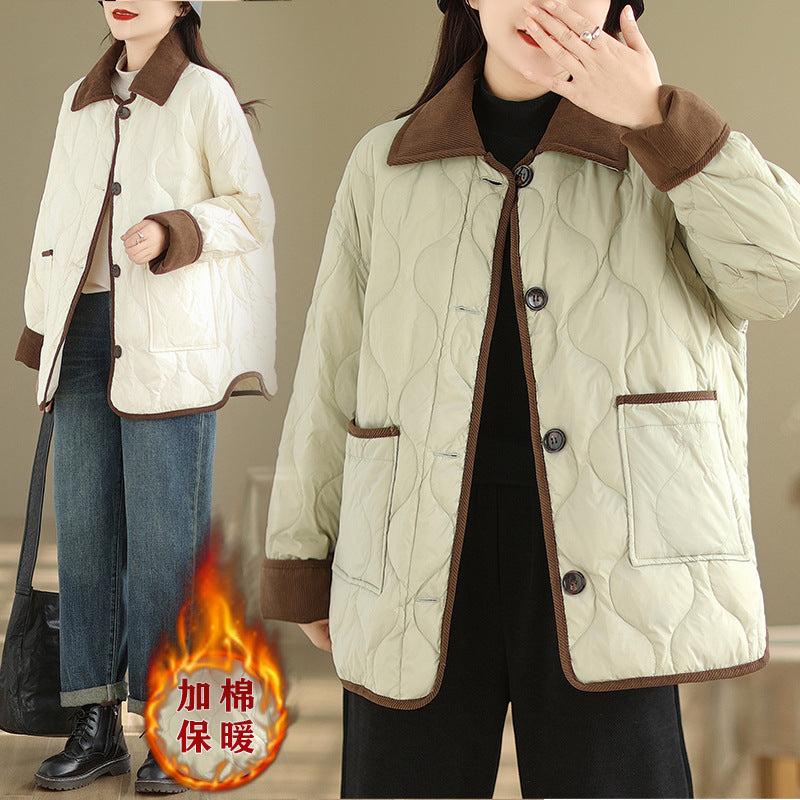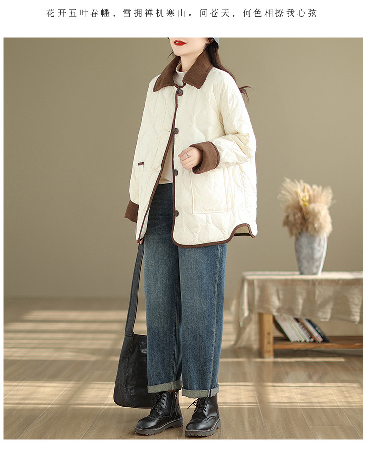Real shot 2025 autumn and winter new light and short contrasting color lapel rhombus padded jacket women's cotton-padded clothes #1026