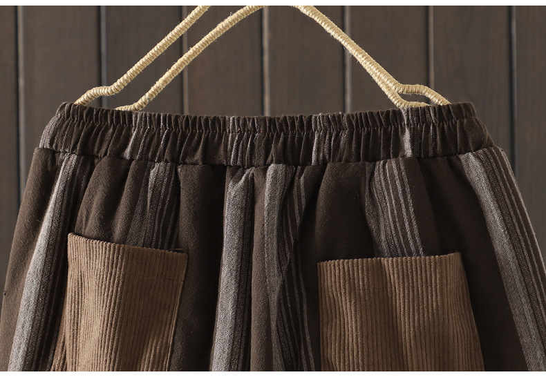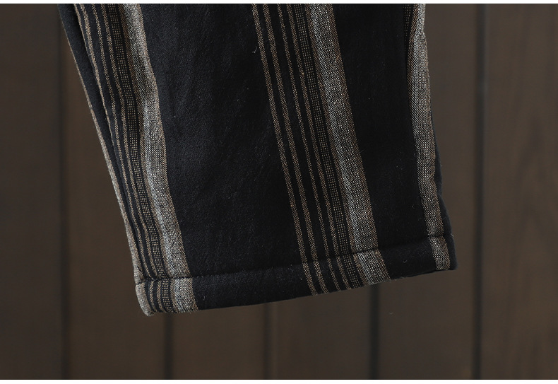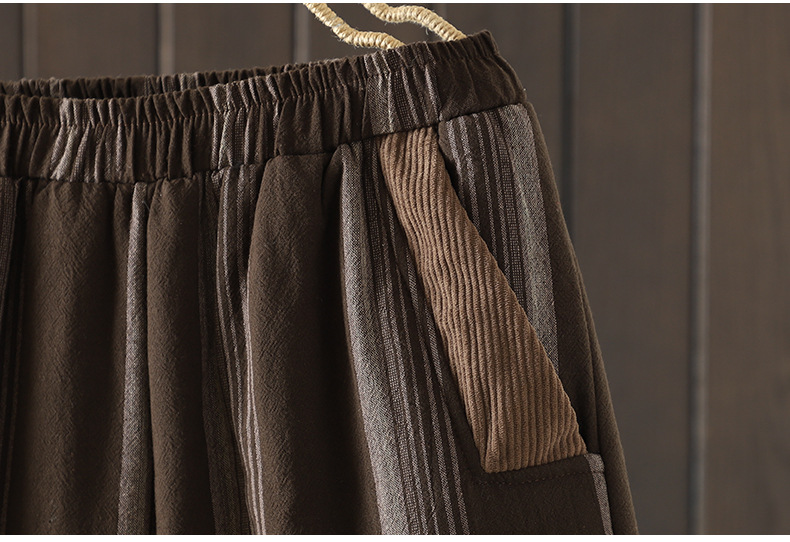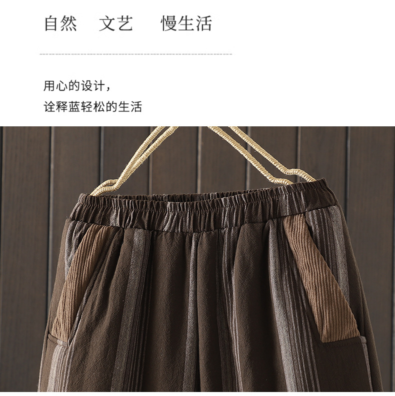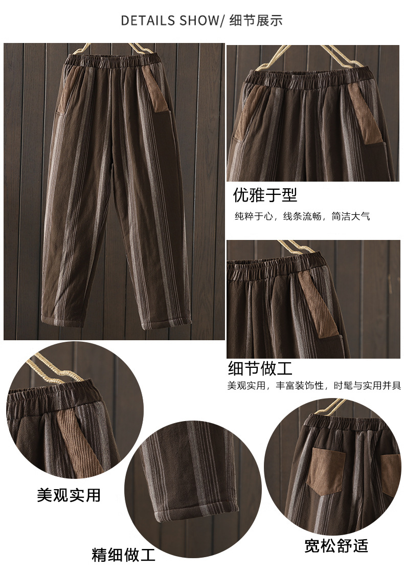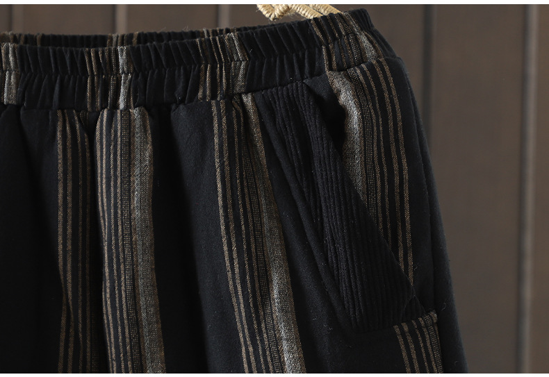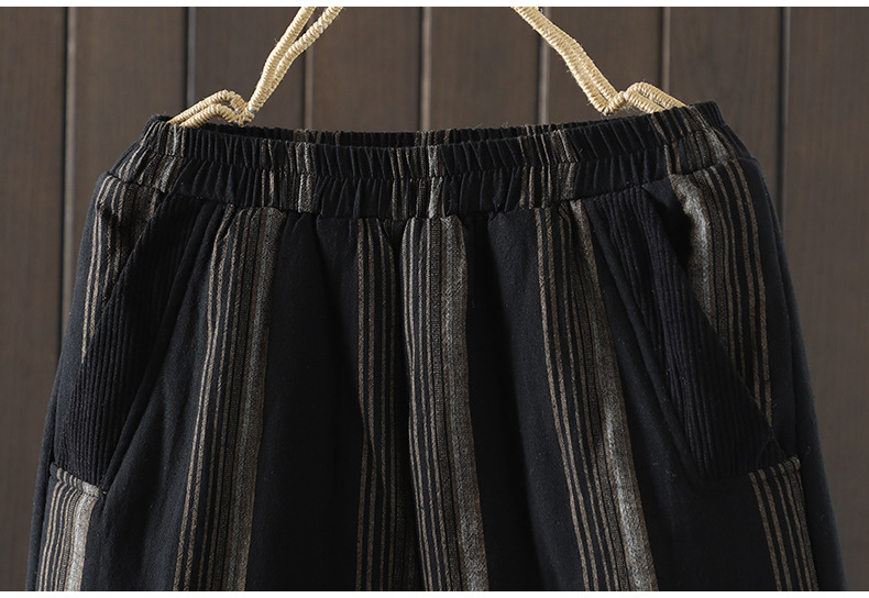 Real shot 2025 autumn and winter new literary loose vertical stripe casual padded cotton warm Harlan pants cotton pants outer wear