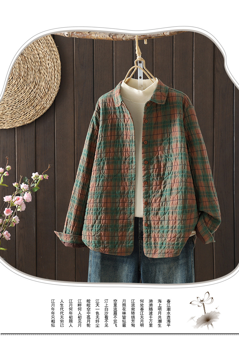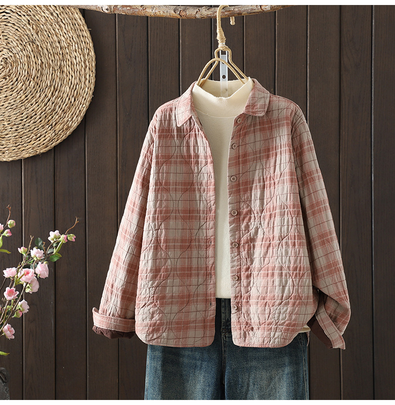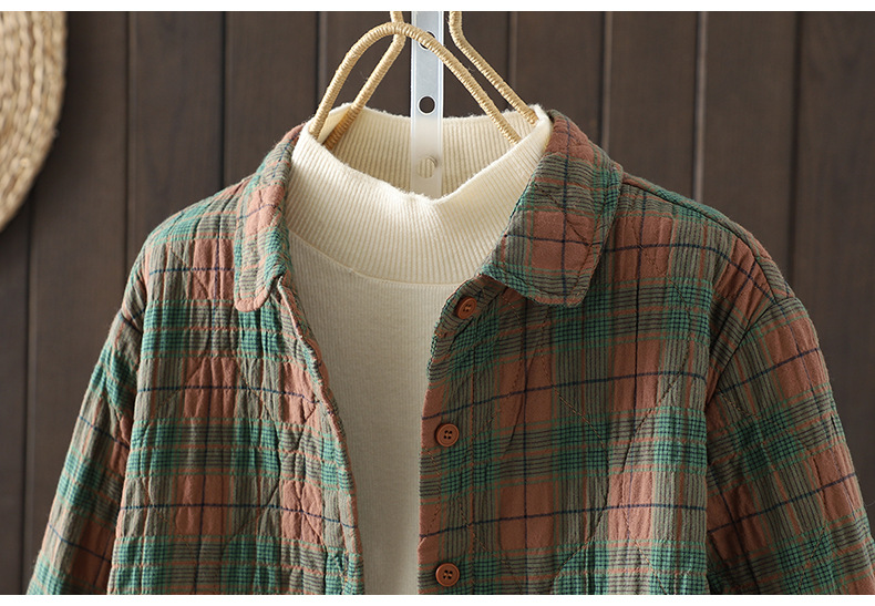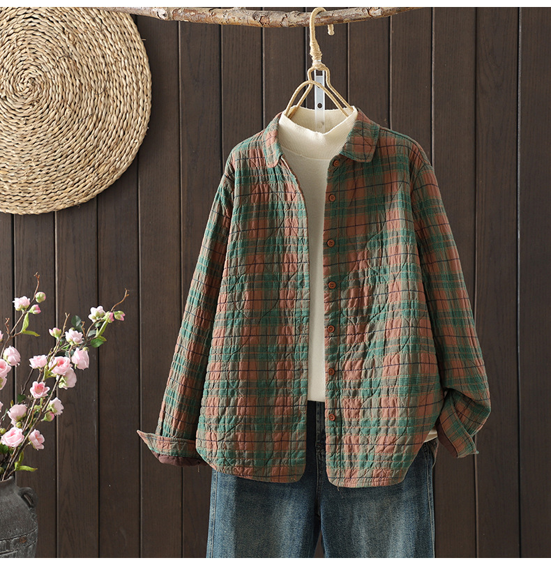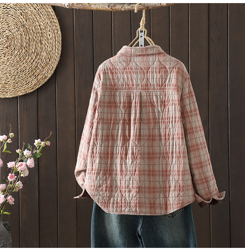 Real shot 2025 autumn and winter new padded thickened plaid shirt casual age-reducing lapel cotton shirt jacket