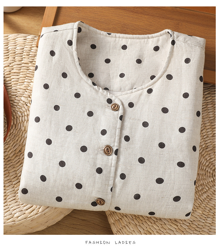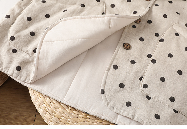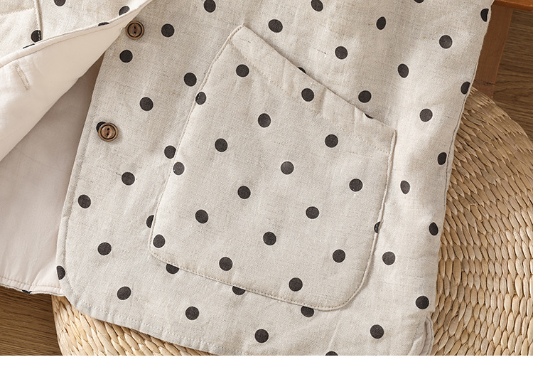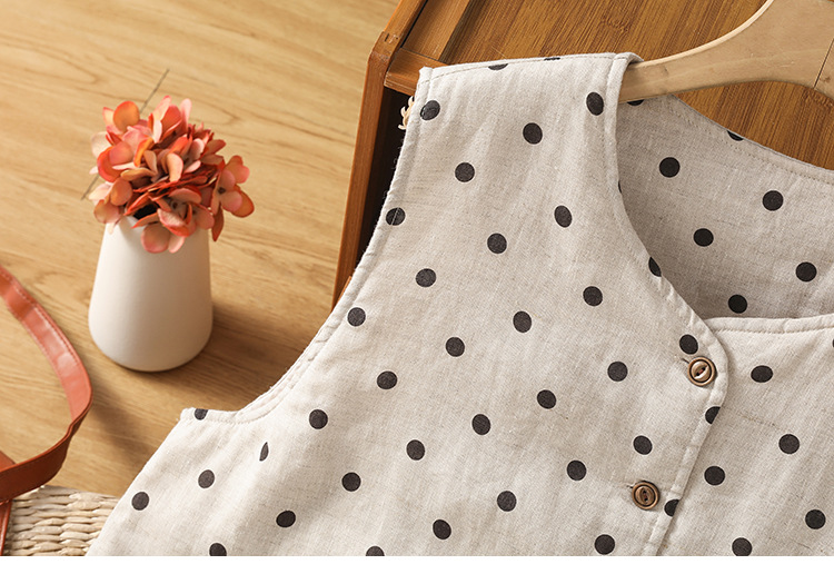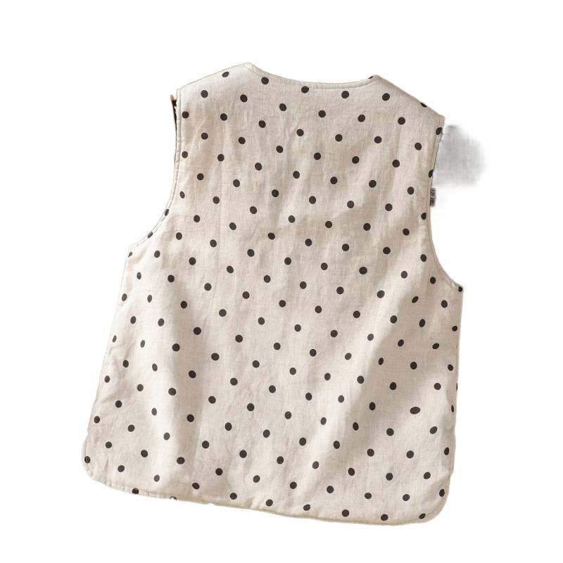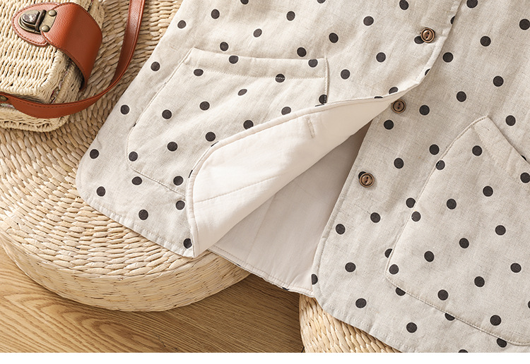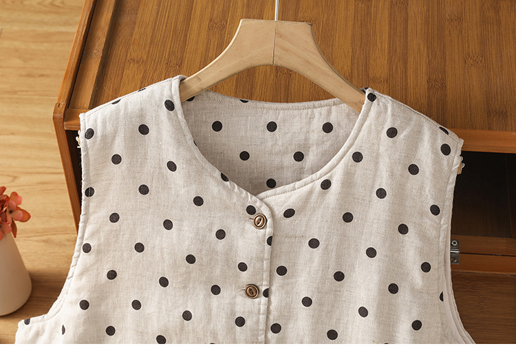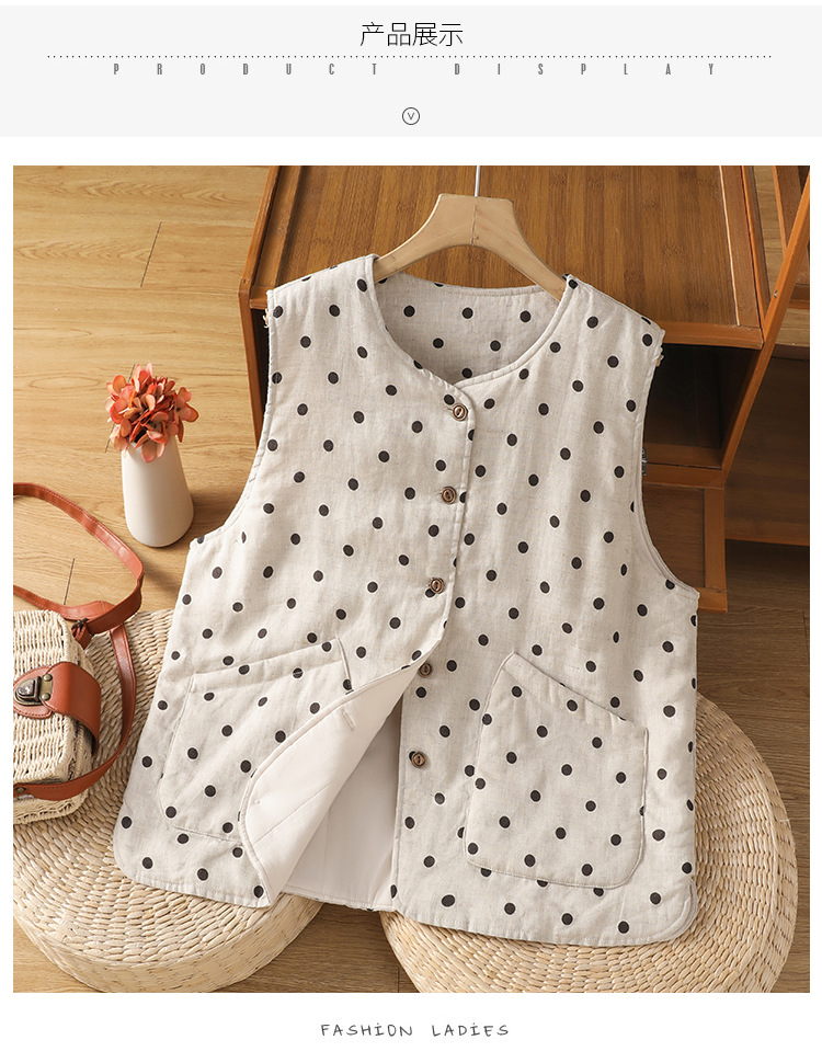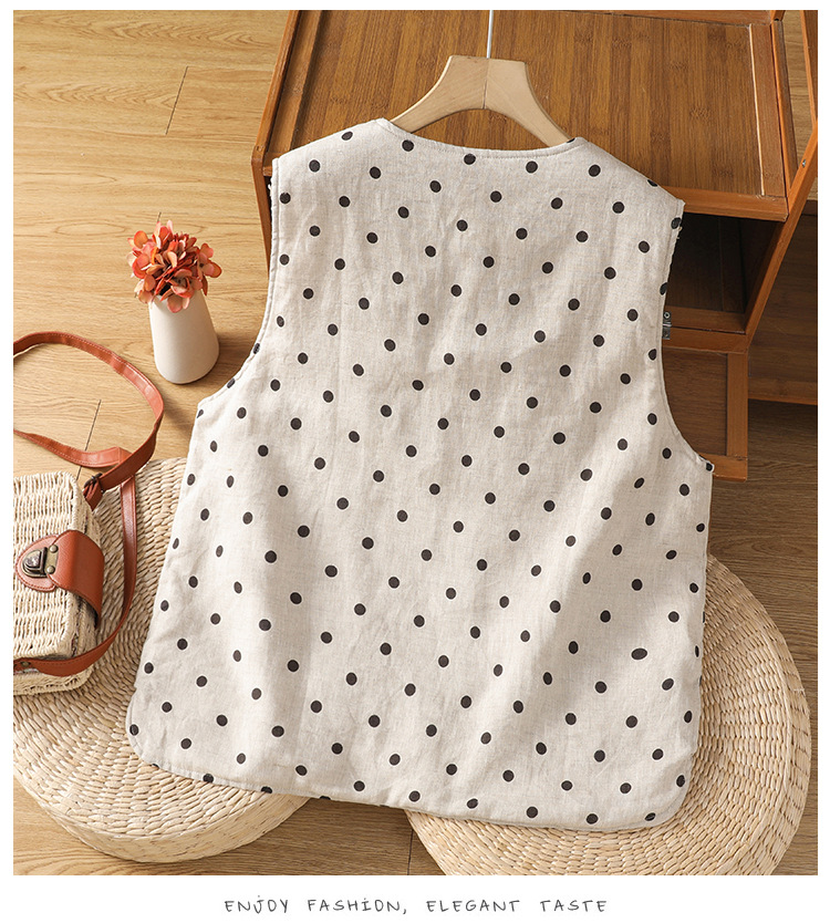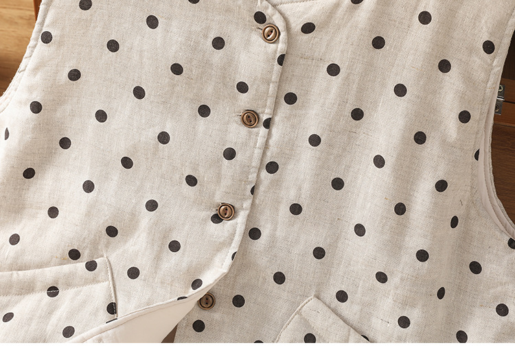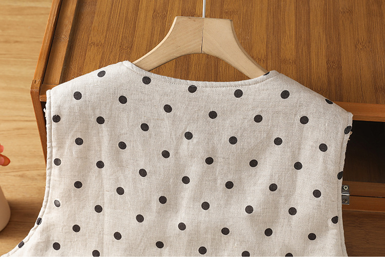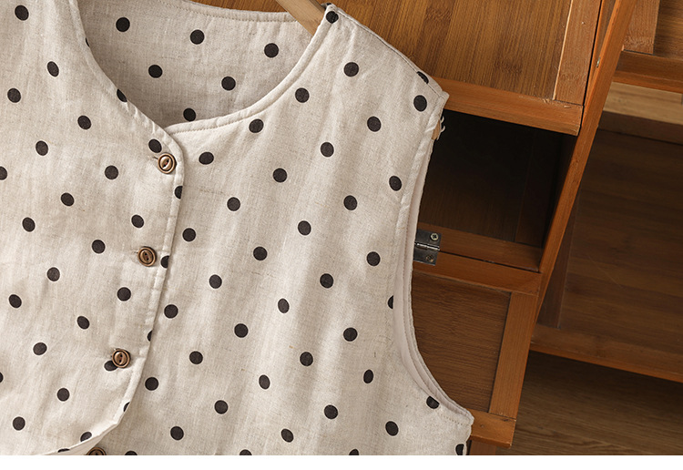 Real shot 2025 autumn and winter new polka dot cotton and linen cotton clothes vest warm literary and retro cotton padded vest short jacket