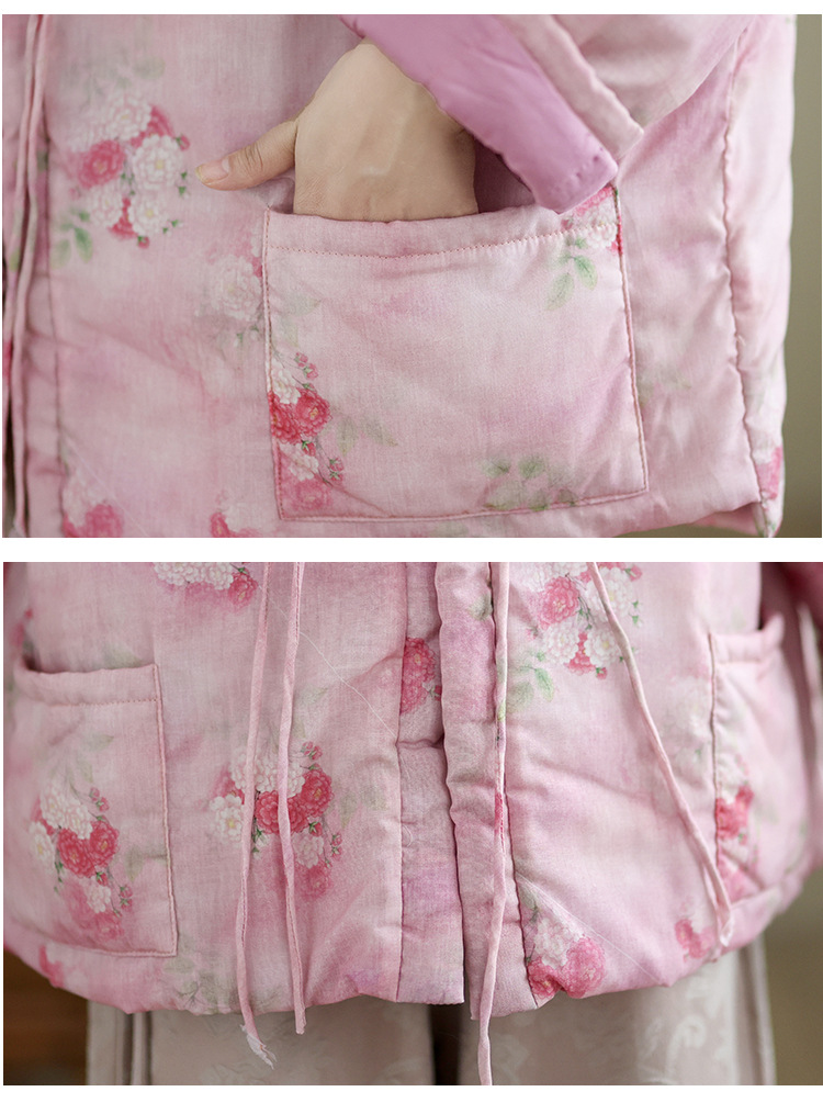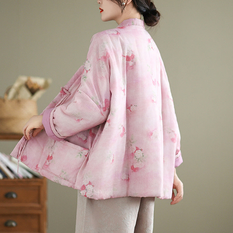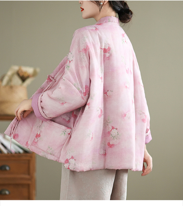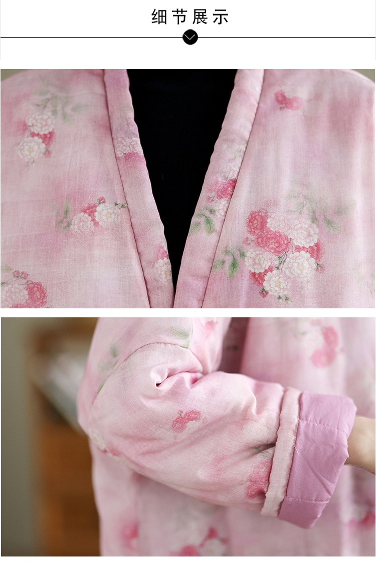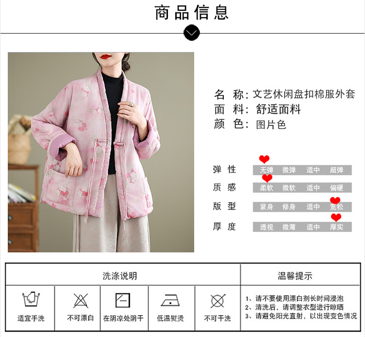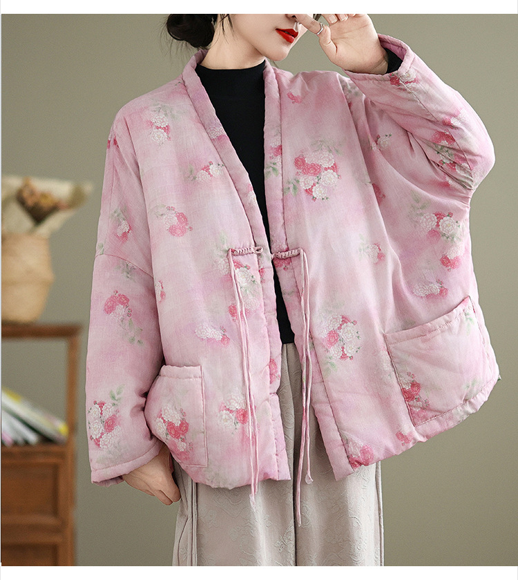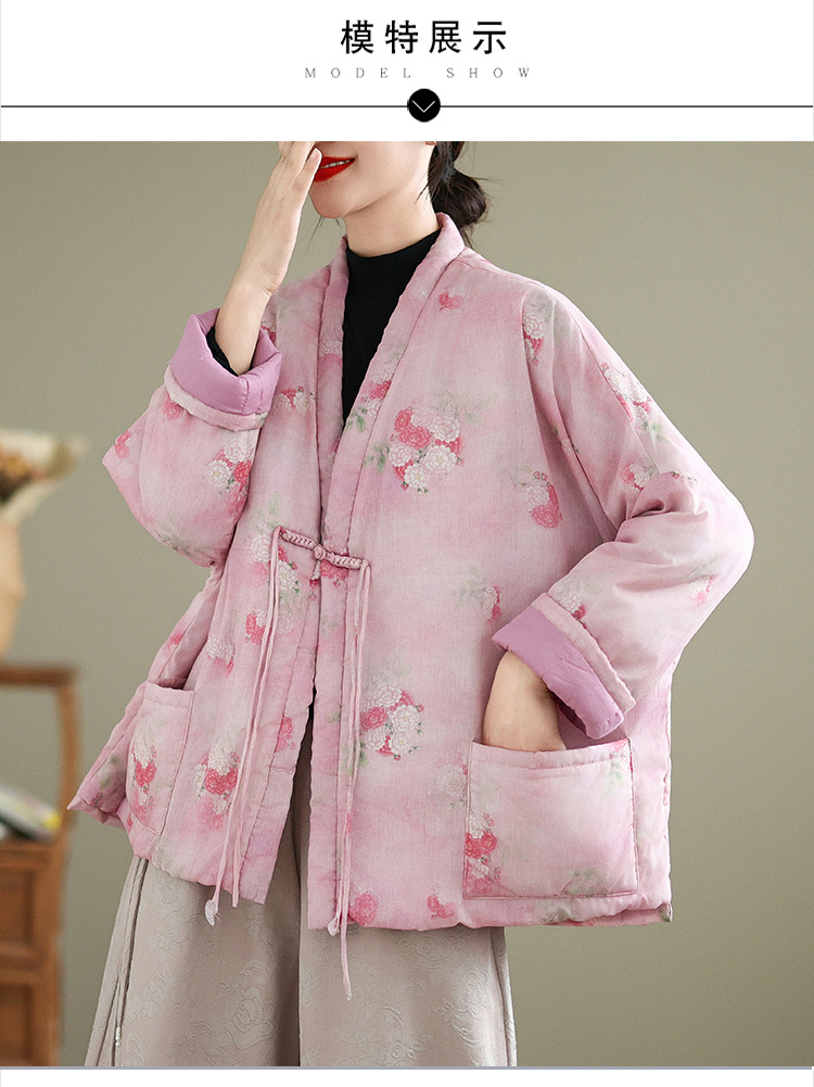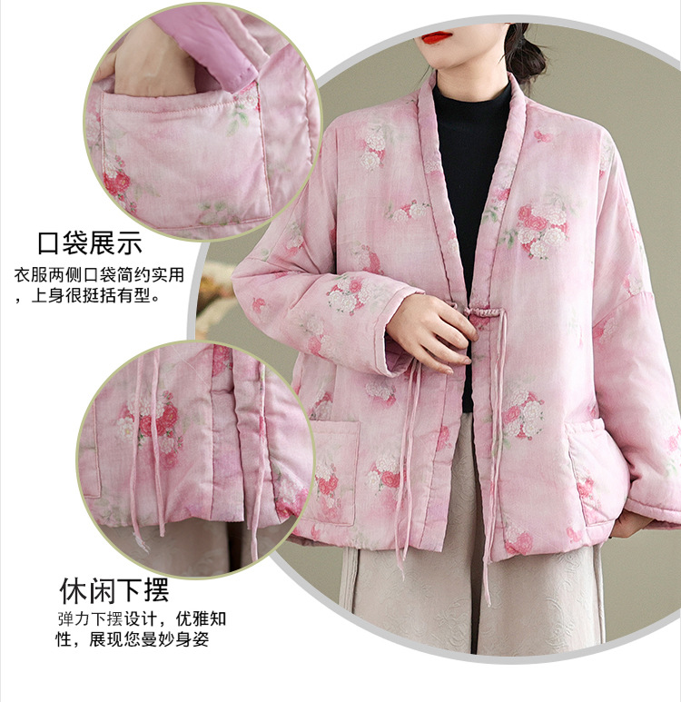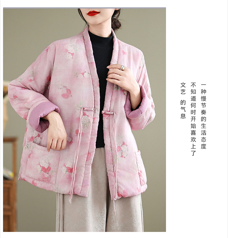 Real shot 2025 autumn and winter new retro national style buckle loose and thin V-neck open chest large size warm cotton-padded clothes