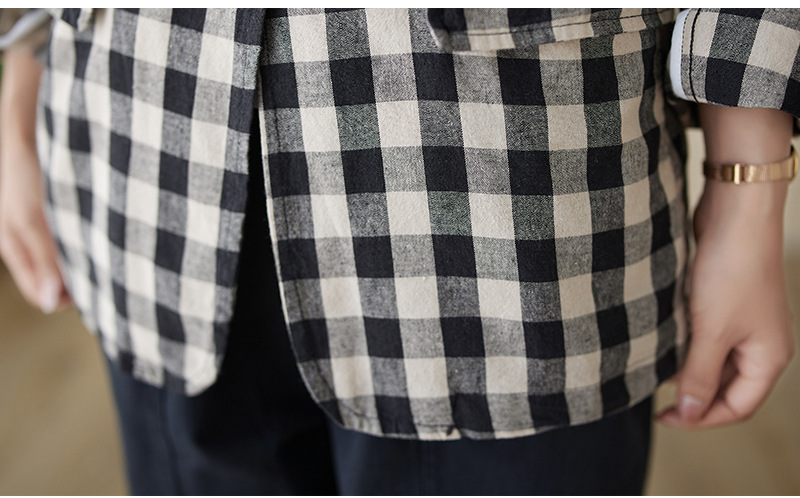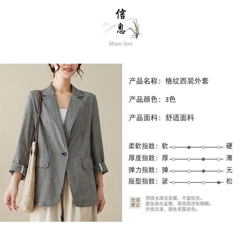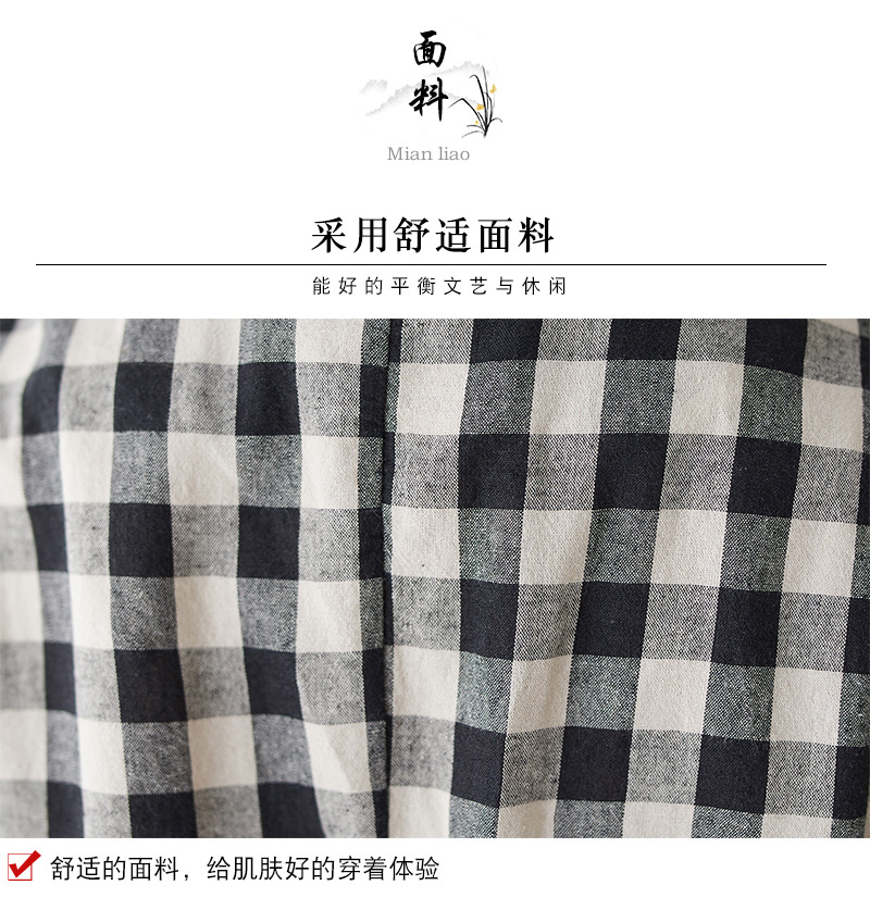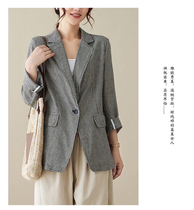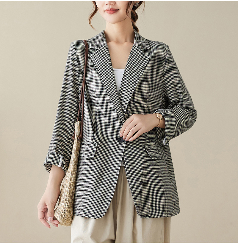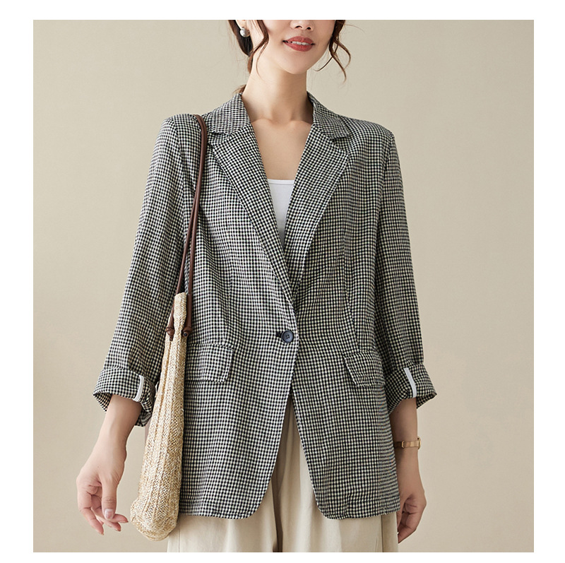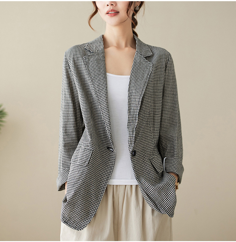 Real shot 2025 autumn literary and retro cotton and linen plaid jacket women's thin casual suit short top
