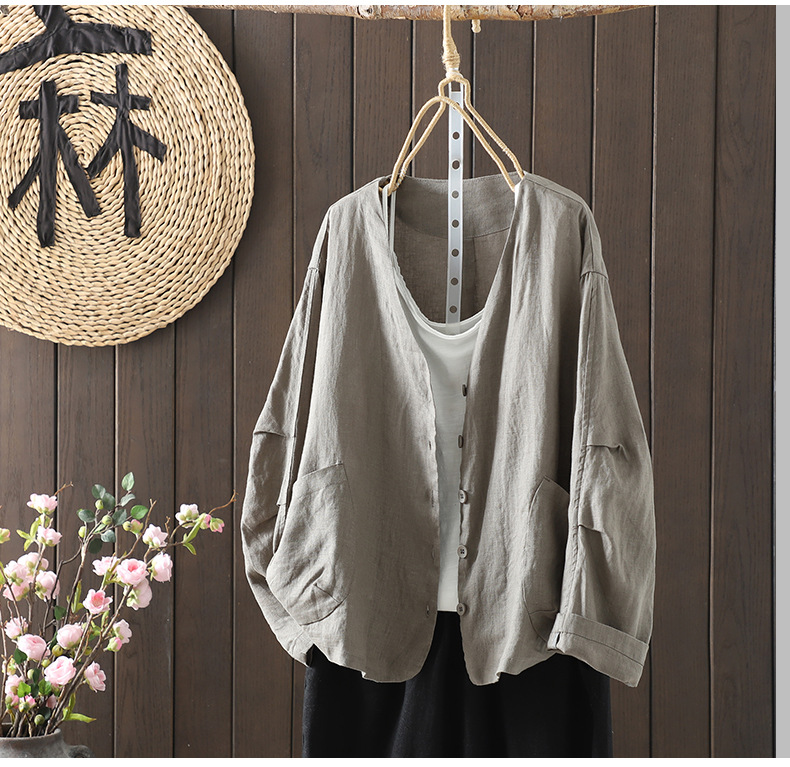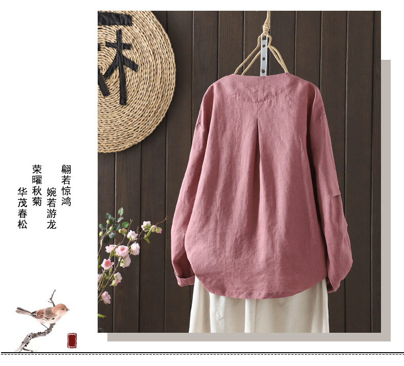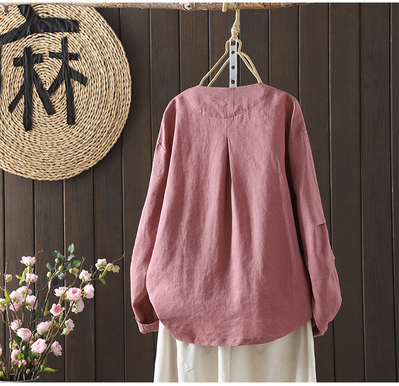 Real shot 2025 autumn new casual loose solid color V-neck long-sleeved shirt women's shirt top #9538
