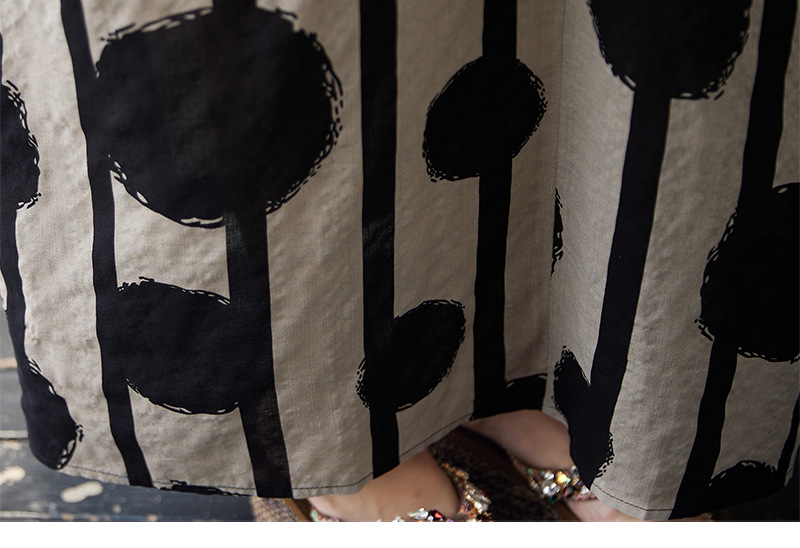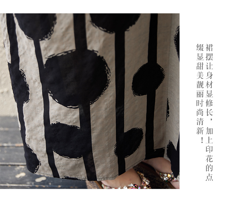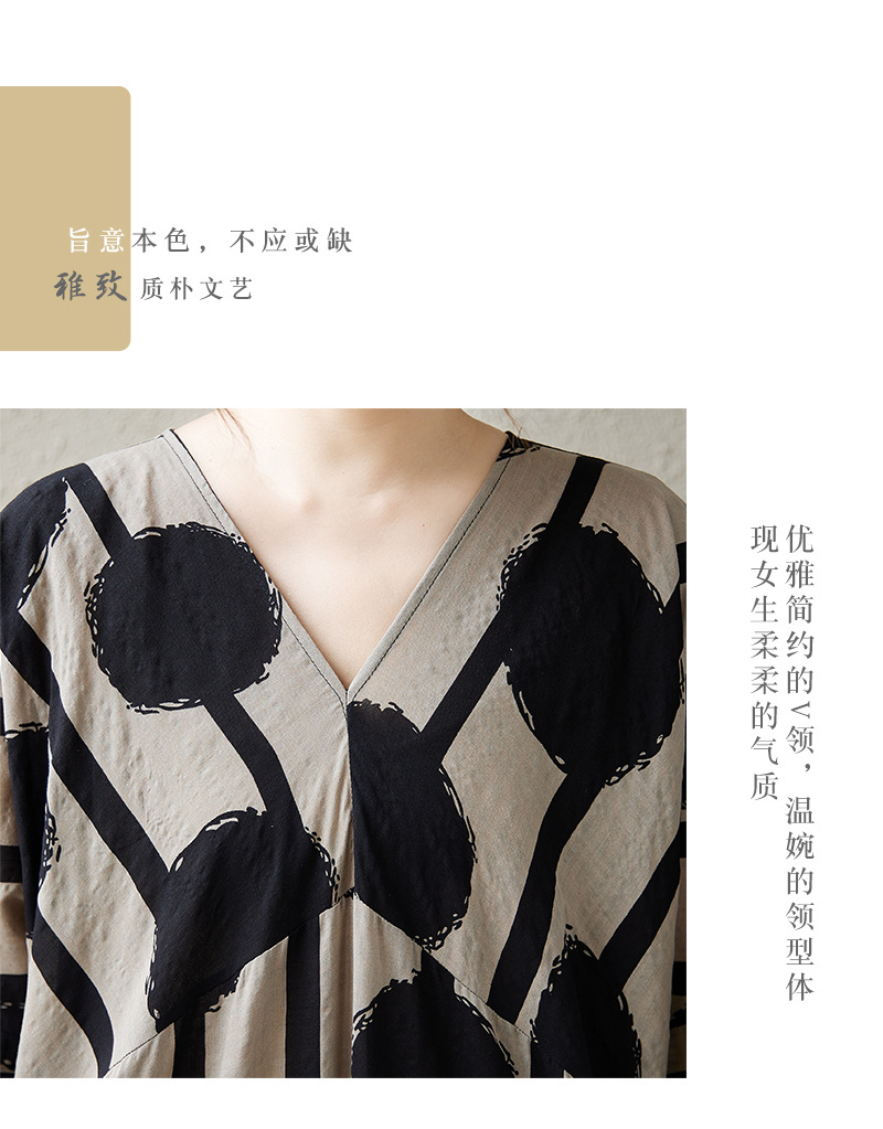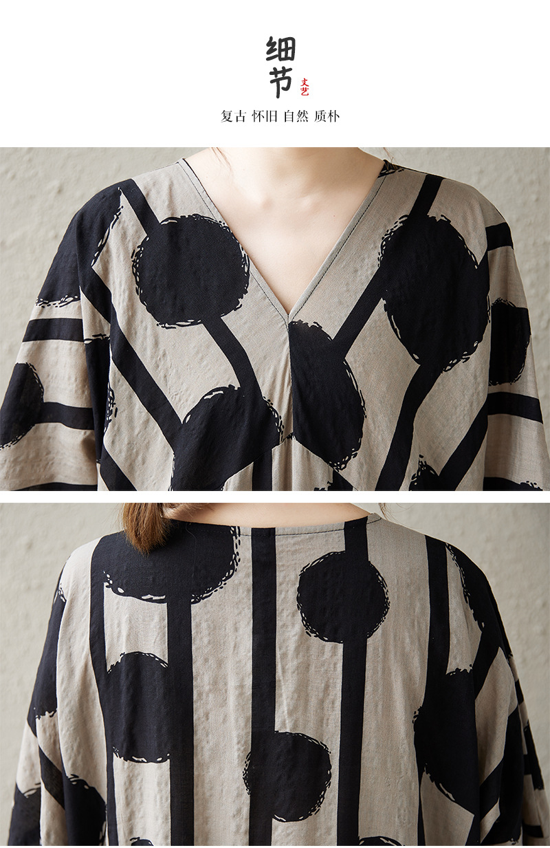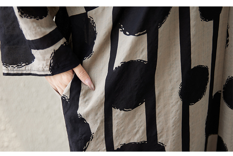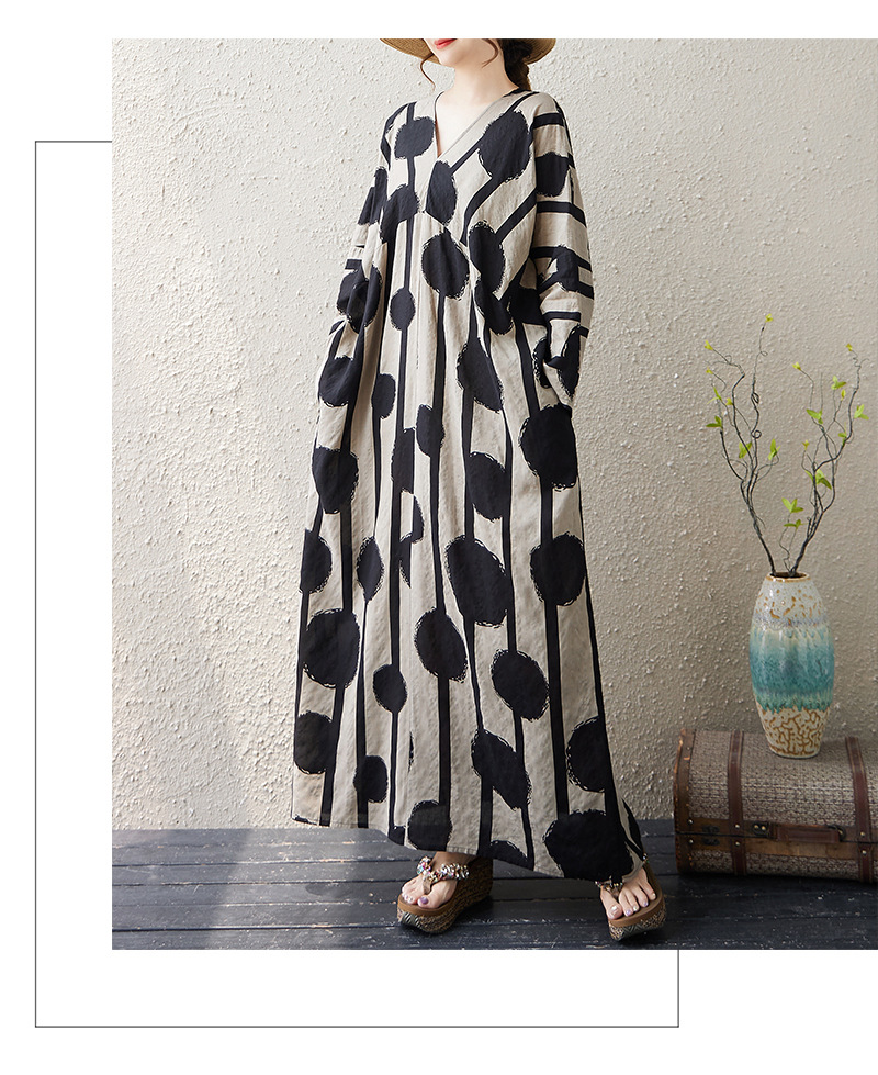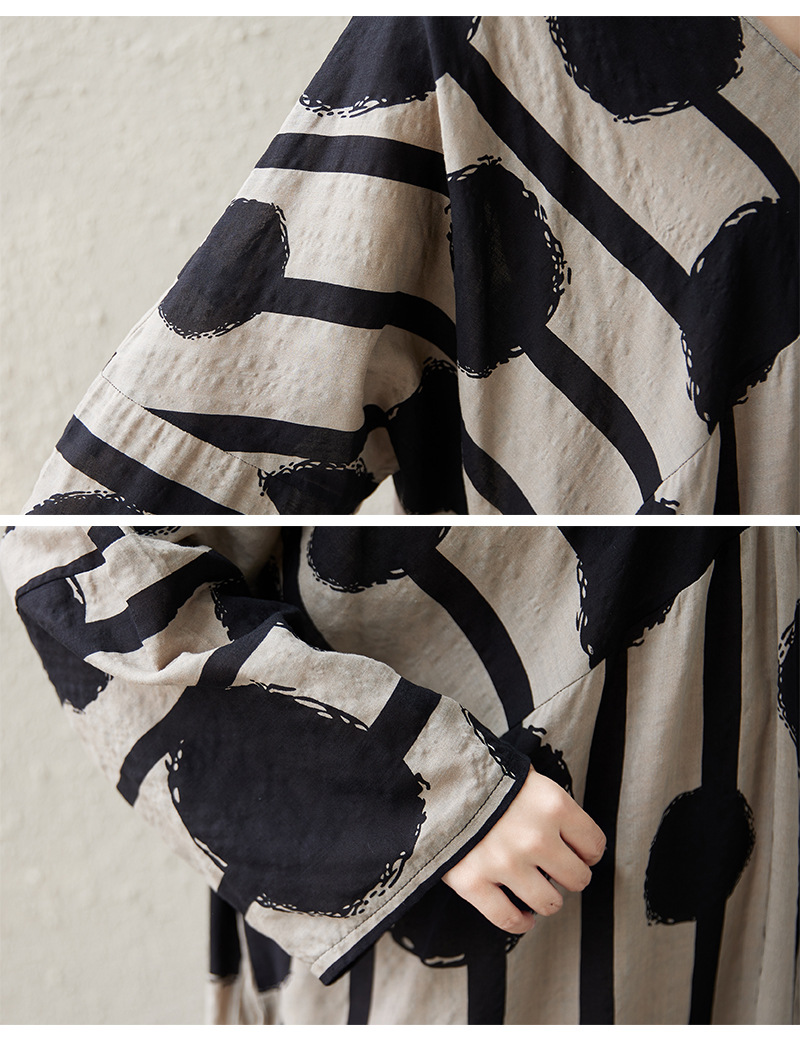 Real shot 2025 autumn new large size long-sleeved sunscreen v-neck thin cotton and linen printing loose and thin dress women