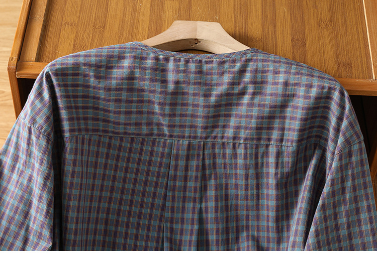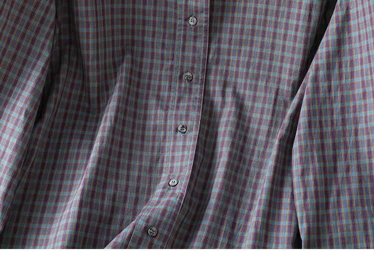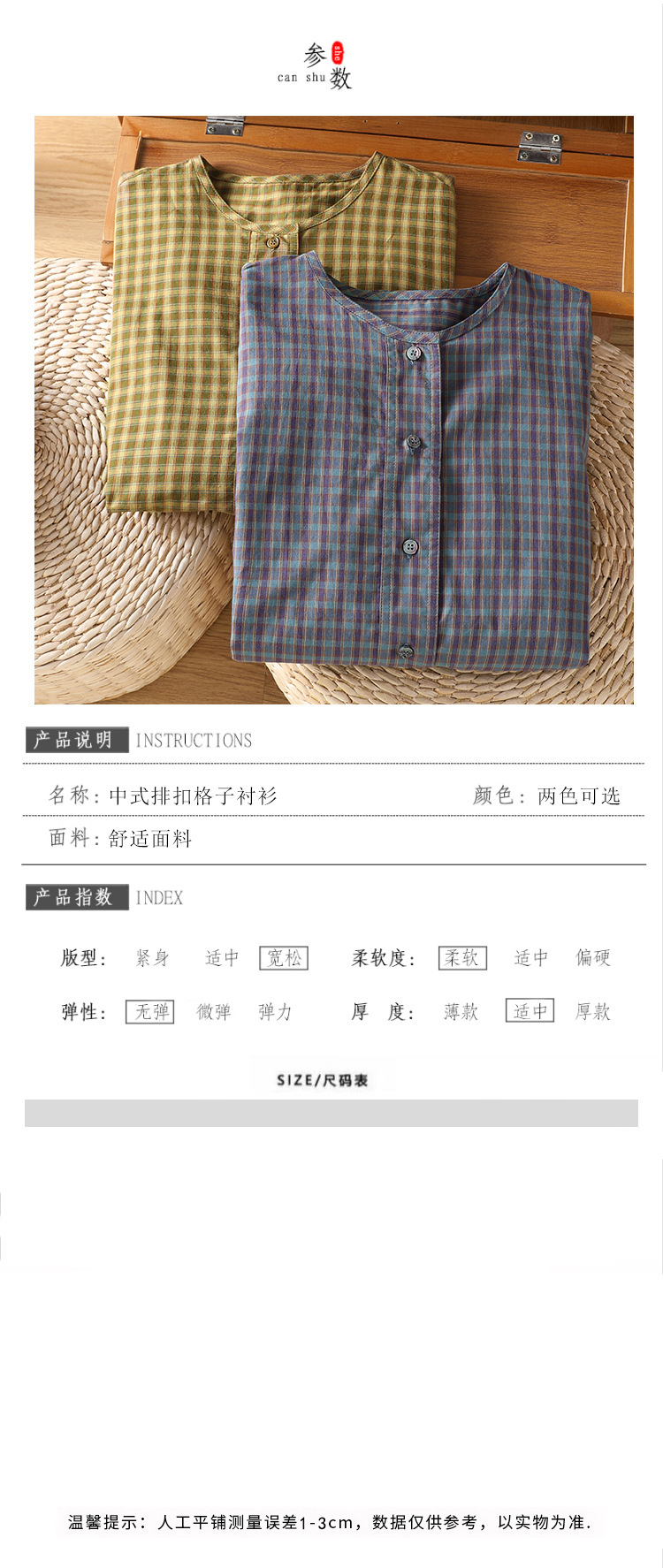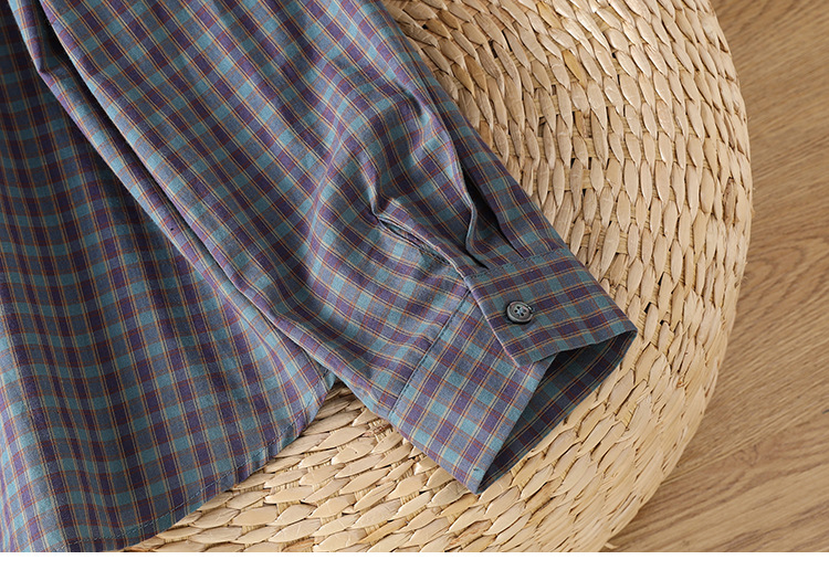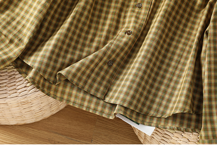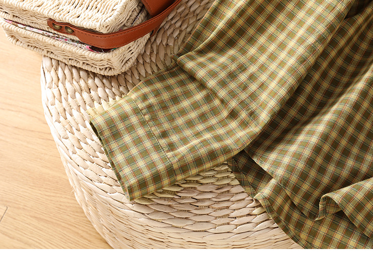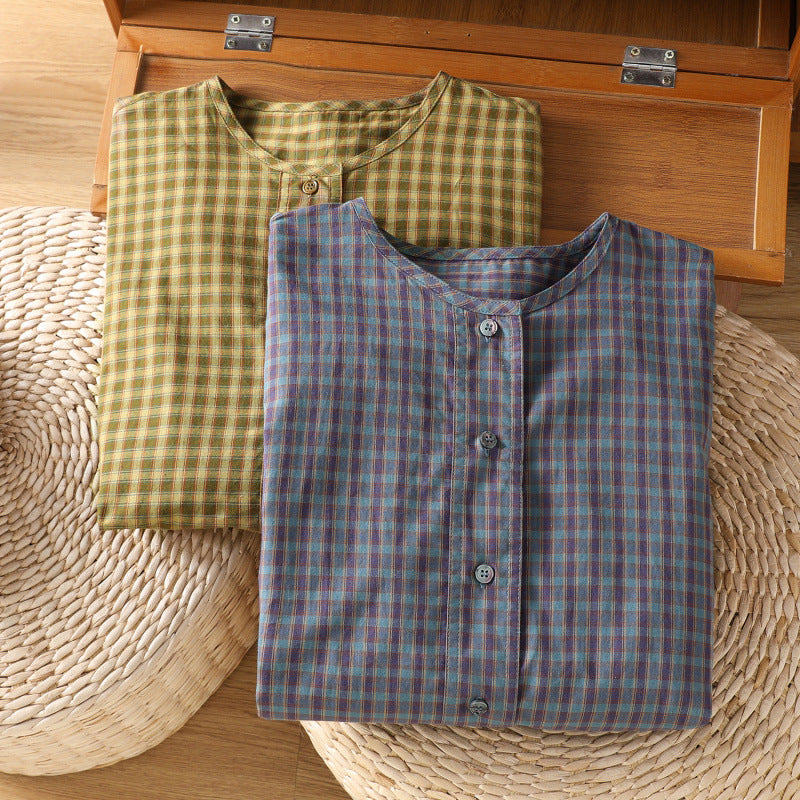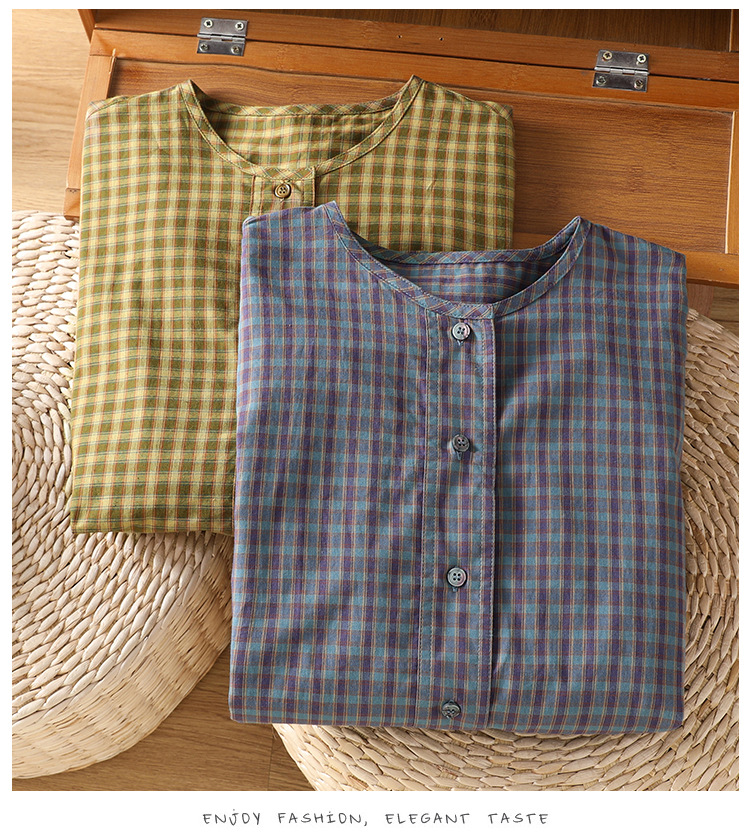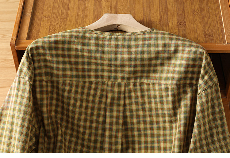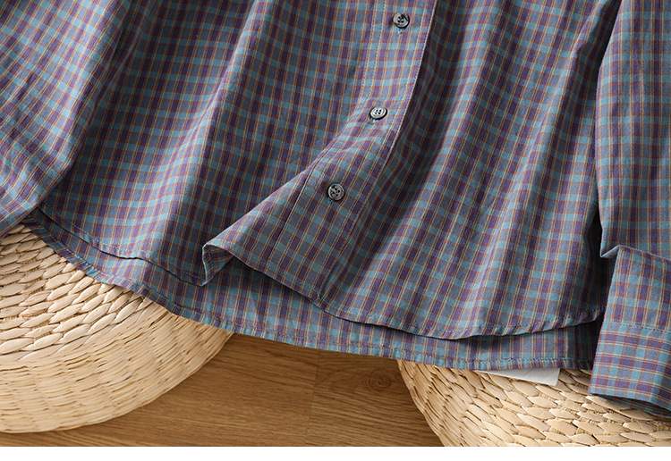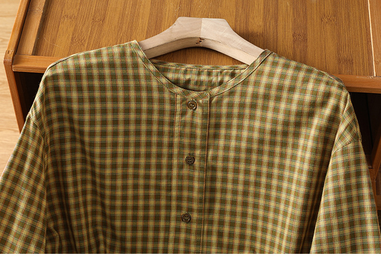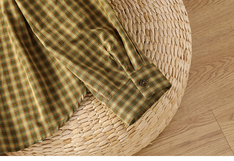 Real shot 2025 autumn new literary plaid long-sleeved cotton and linen plaid round neck shirt jacket women's shirt