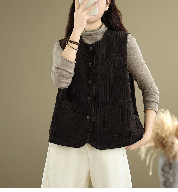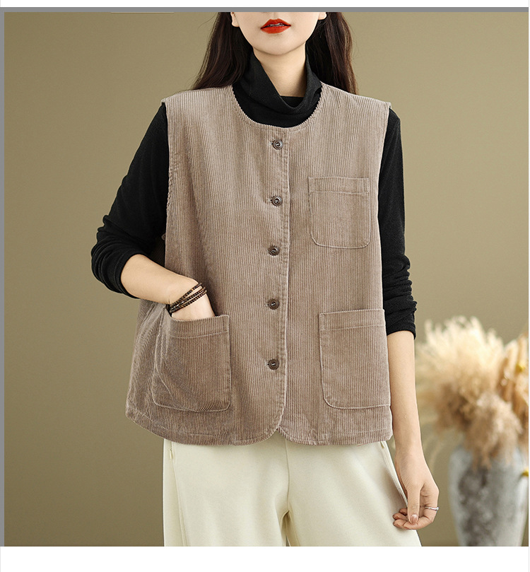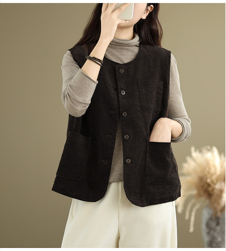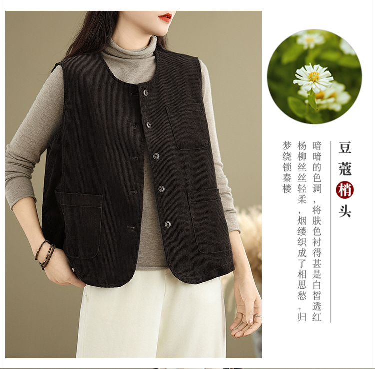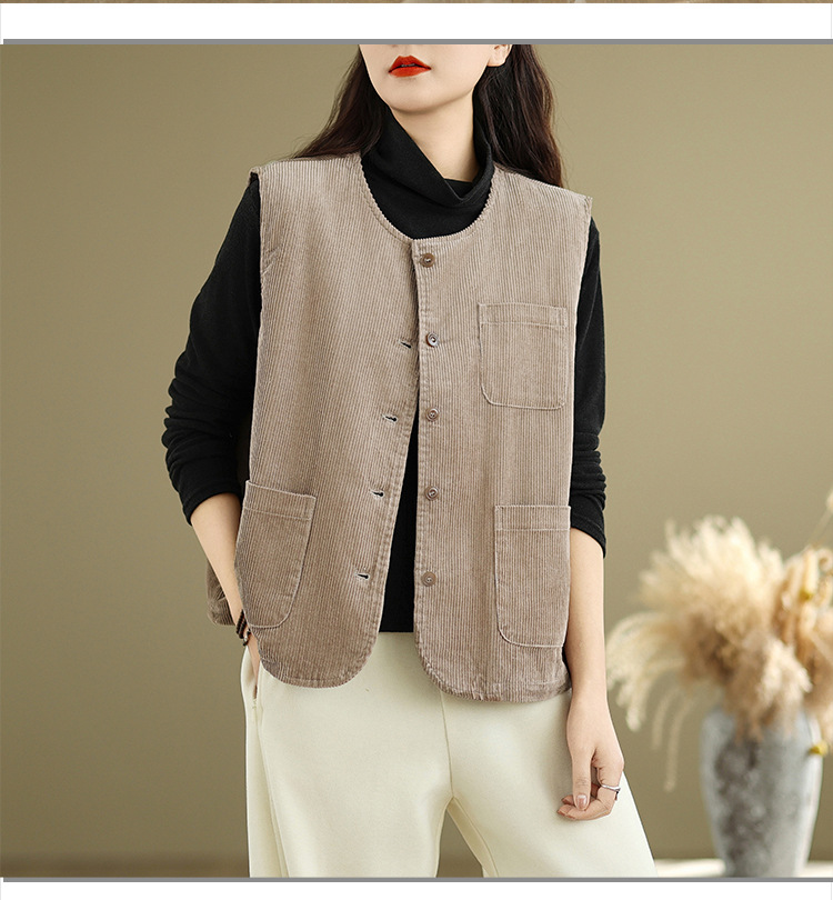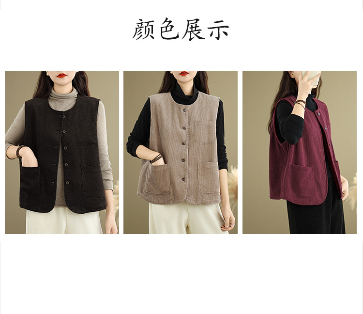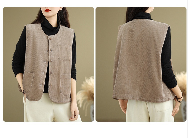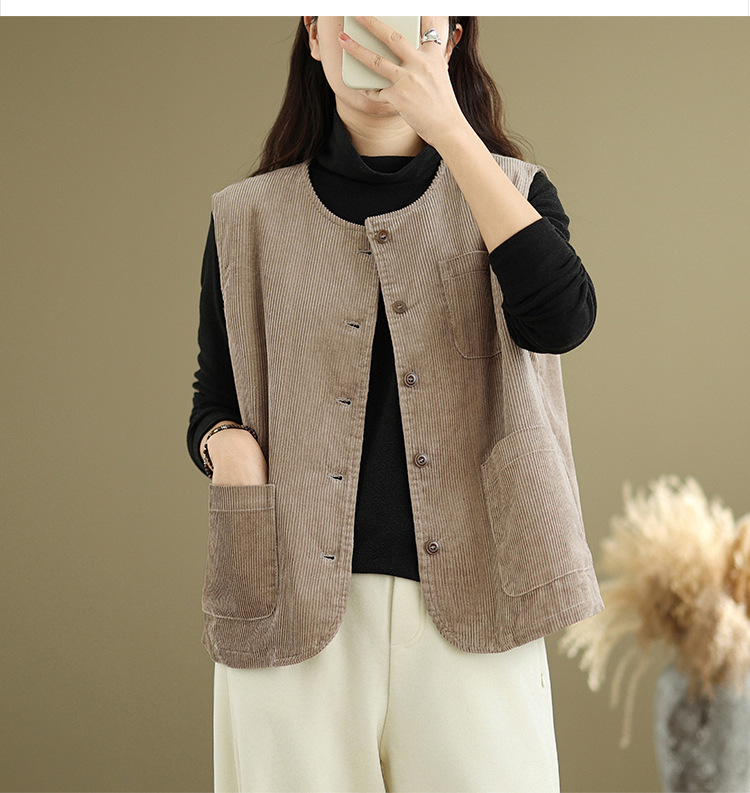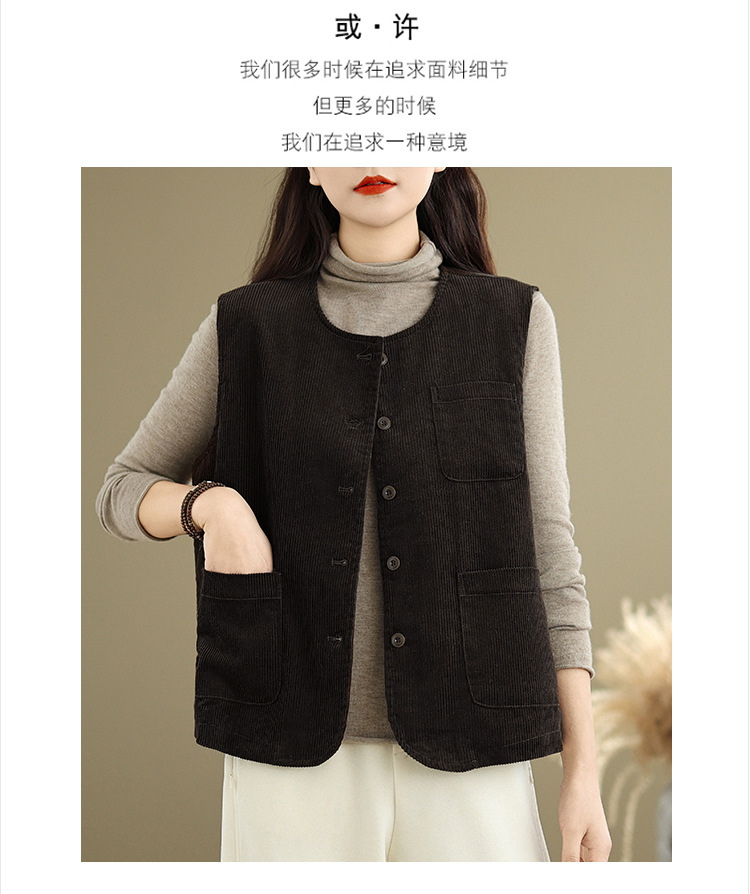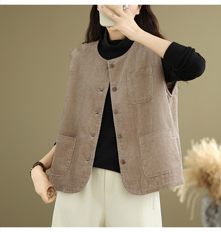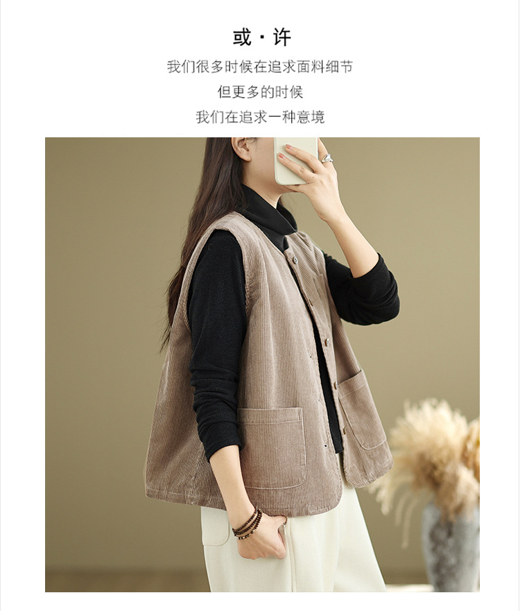 Real shot 2025 autumn new round neck vest vest vest retro commuter loose casual vest jacket women