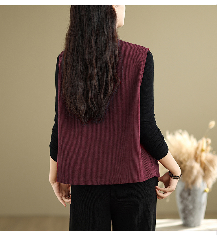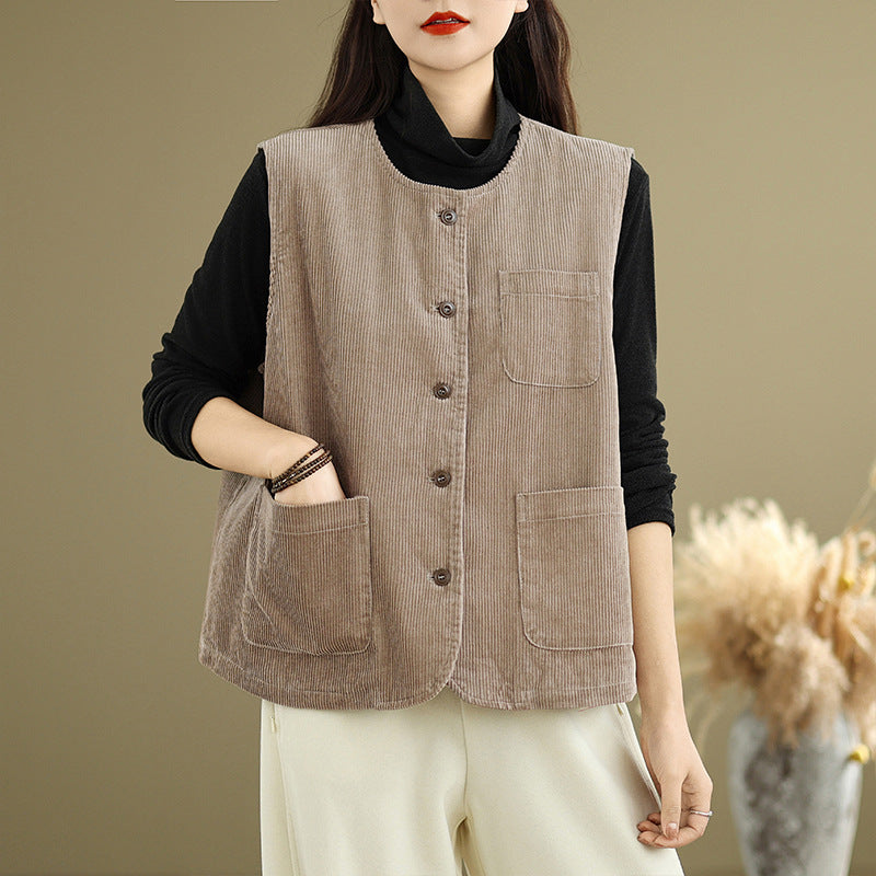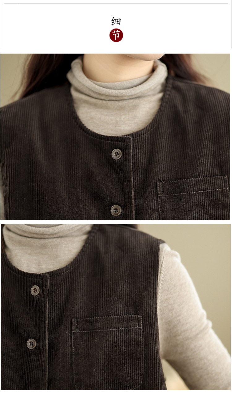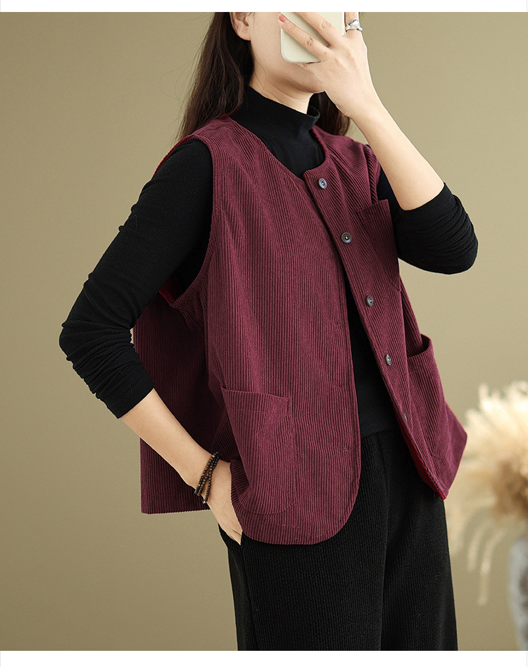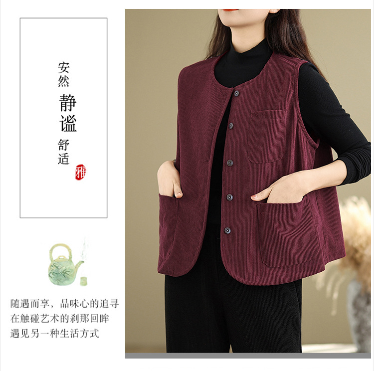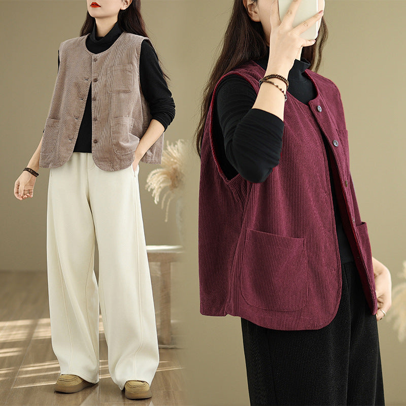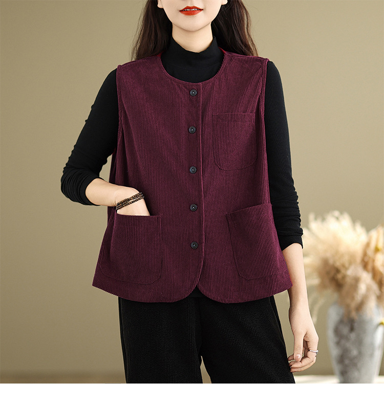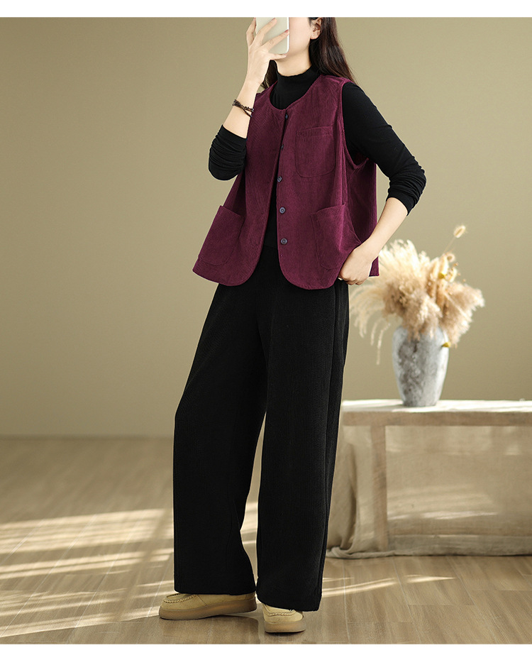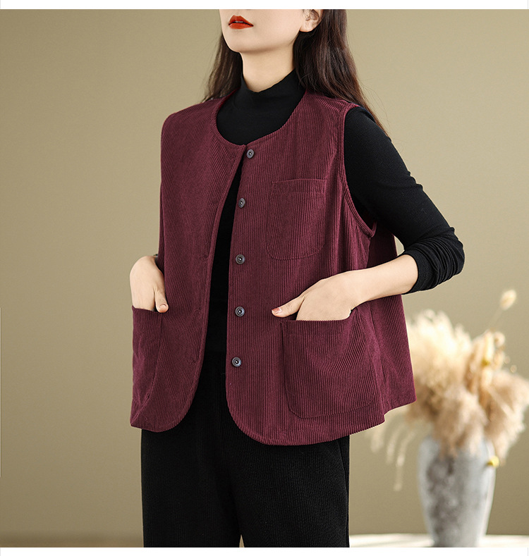 Real shot 2025 autumn new round neck vest vest vest retro commuter loose casual vest jacket women