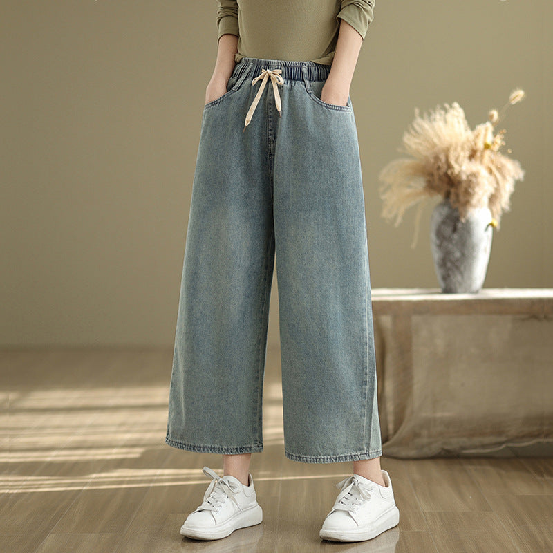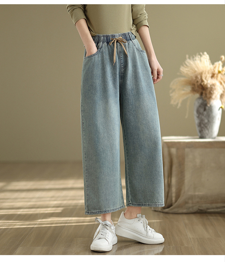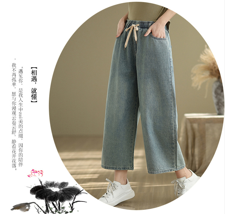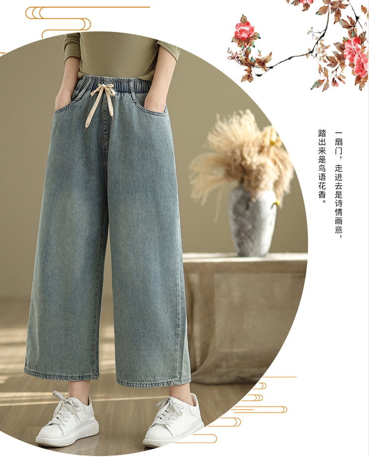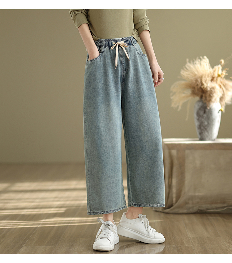 Real shot 2025 spring and summer new large size loose casual denim wide-leg pants women's clothing