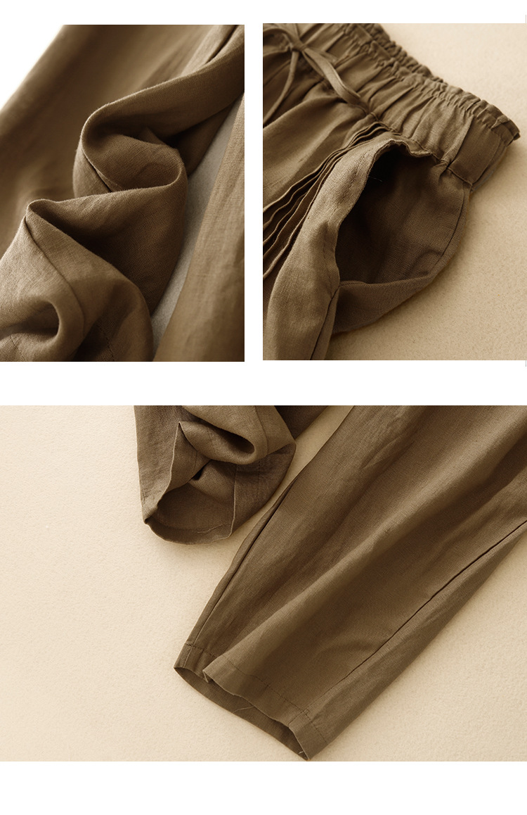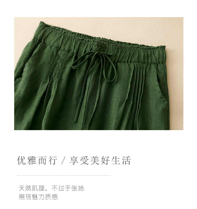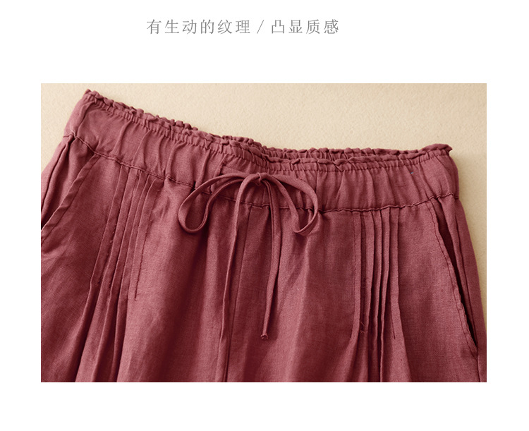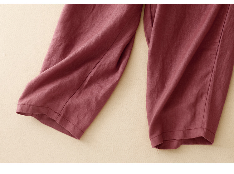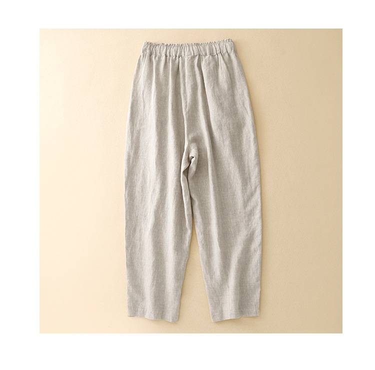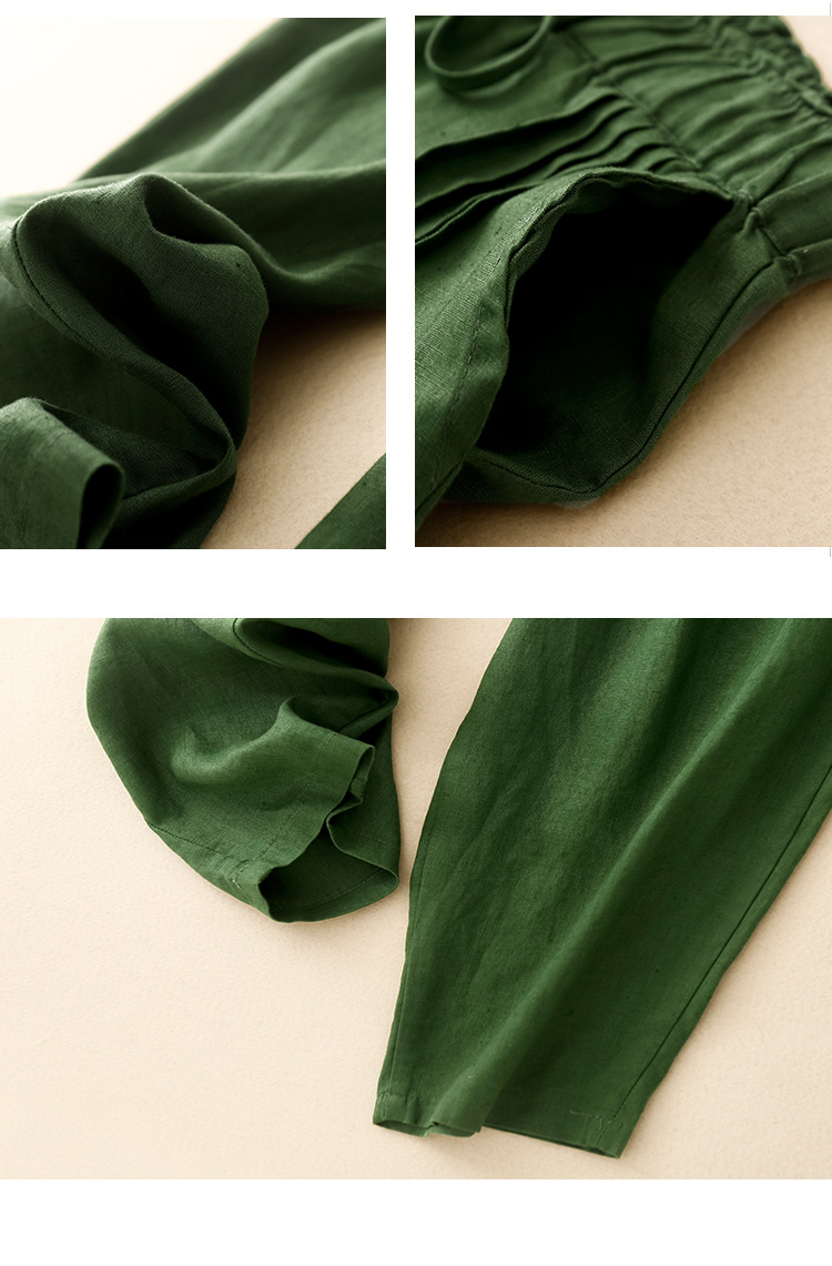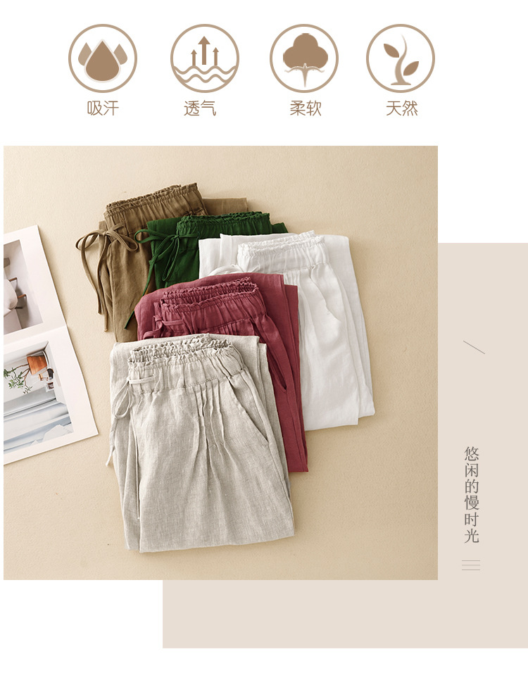 Real shot 2025 spring new casual loose solid color cotton and linen elastic waist Harlan pants women's nine-point pants #9037