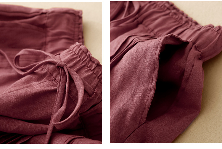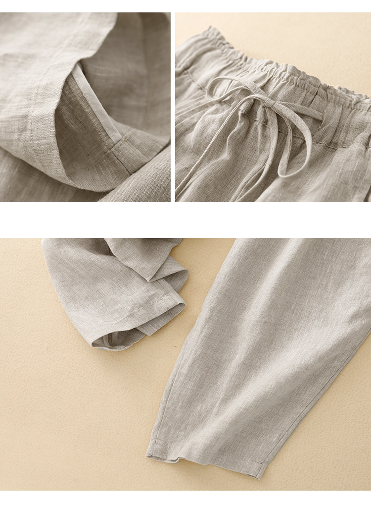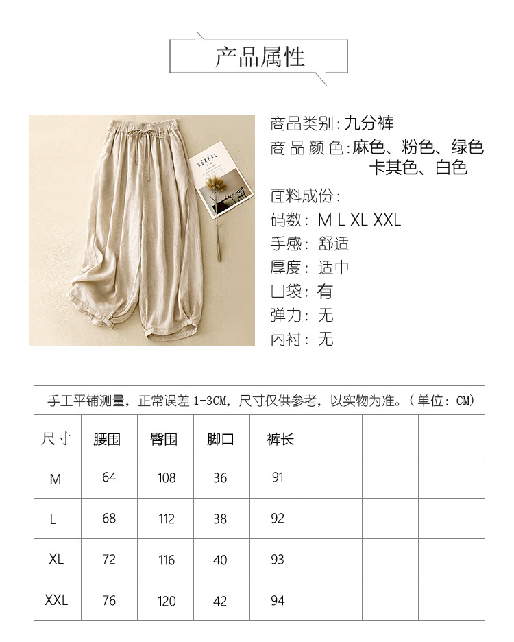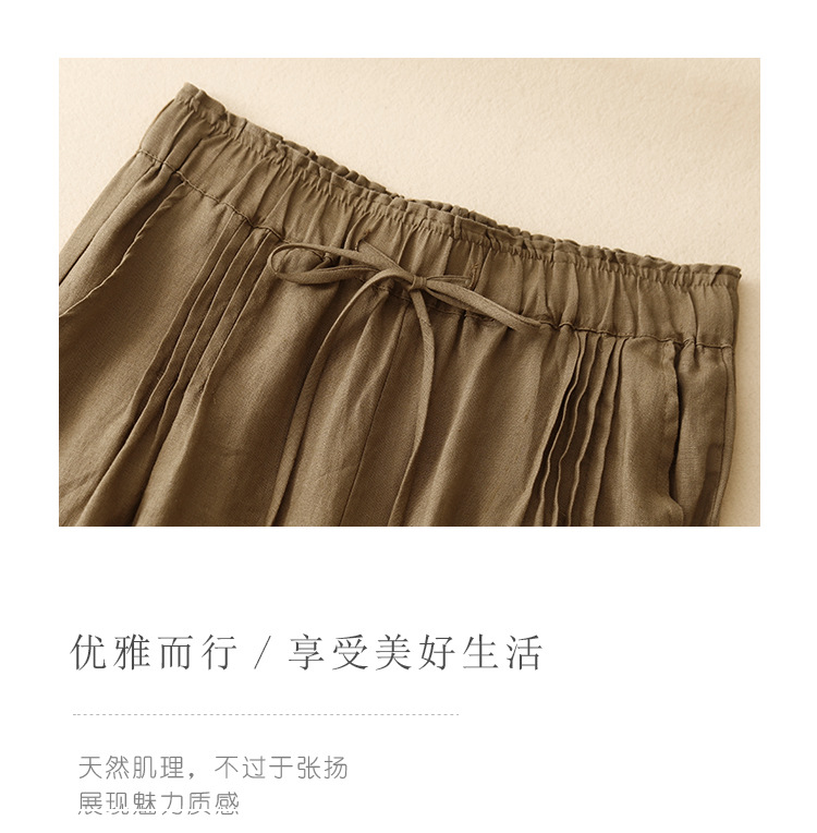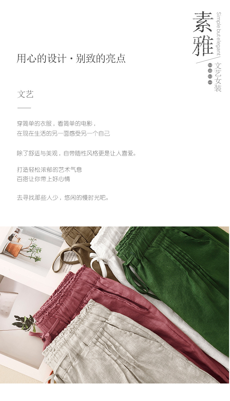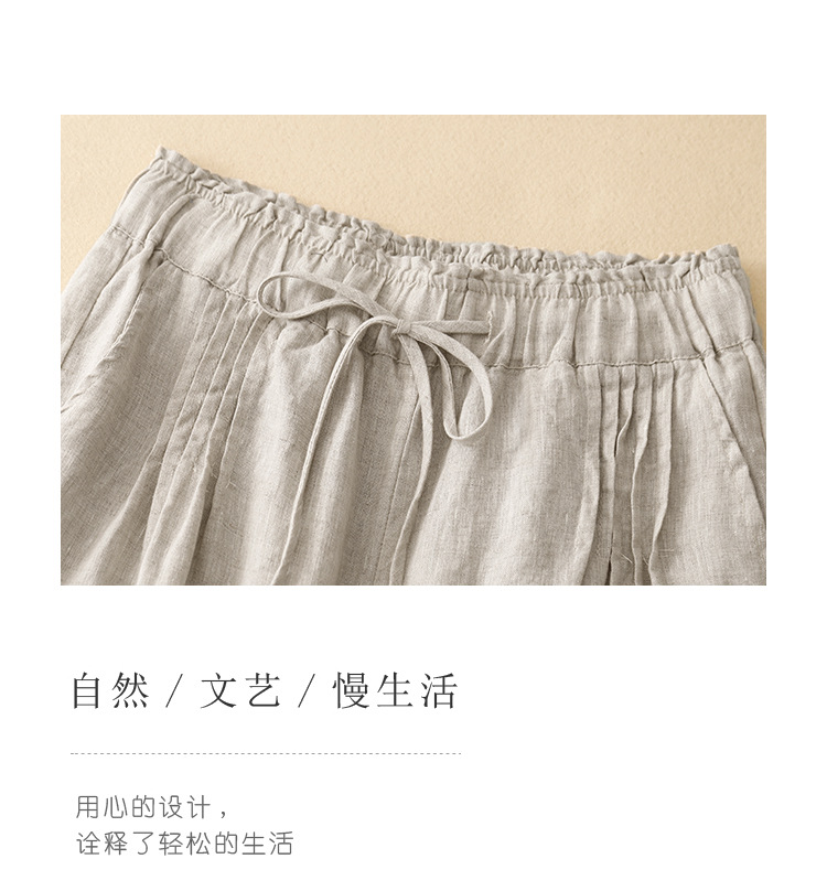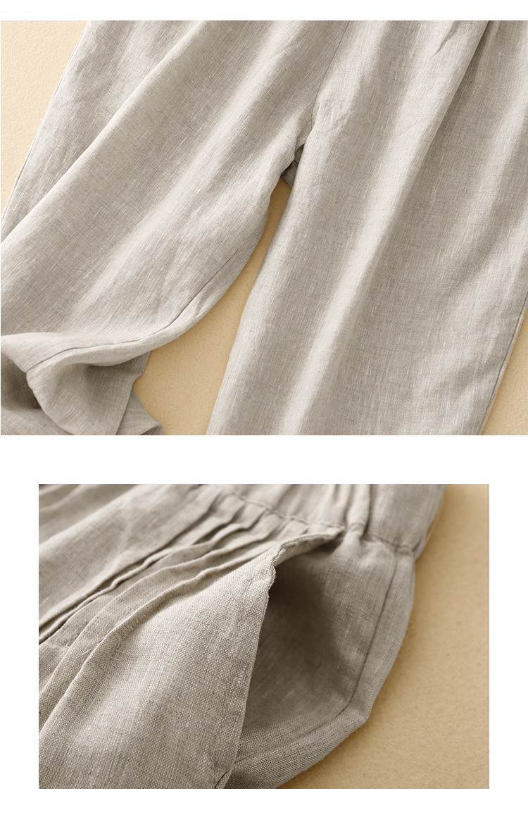 Real shot 2025 spring new casual loose solid color cotton and linen elastic waist Harlan pants women's nine-point pants #9037