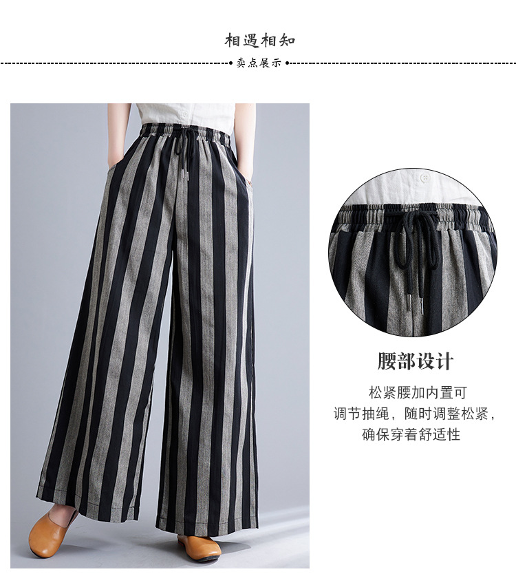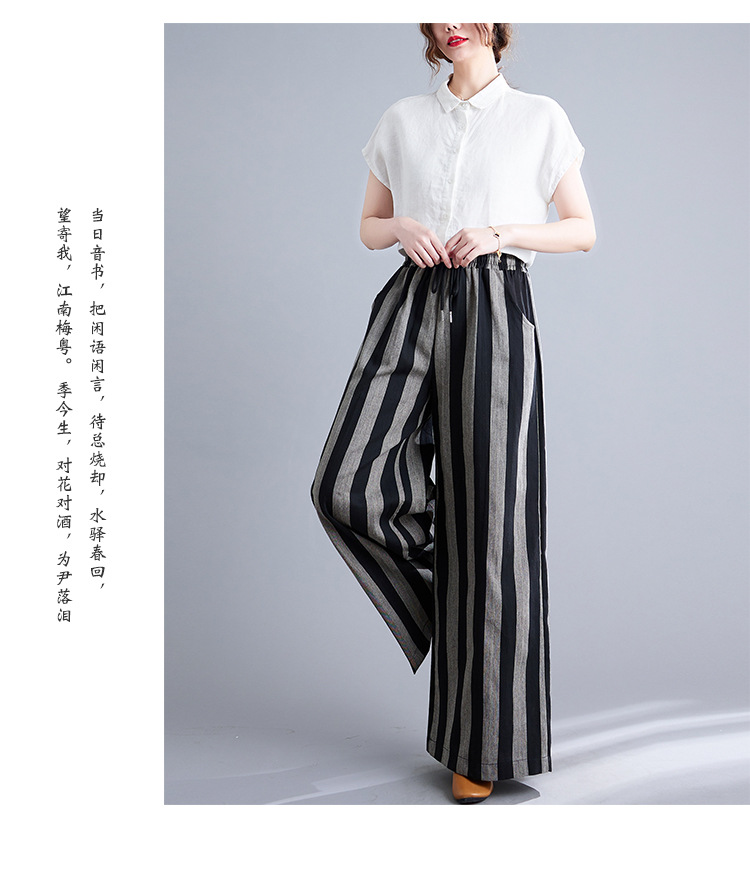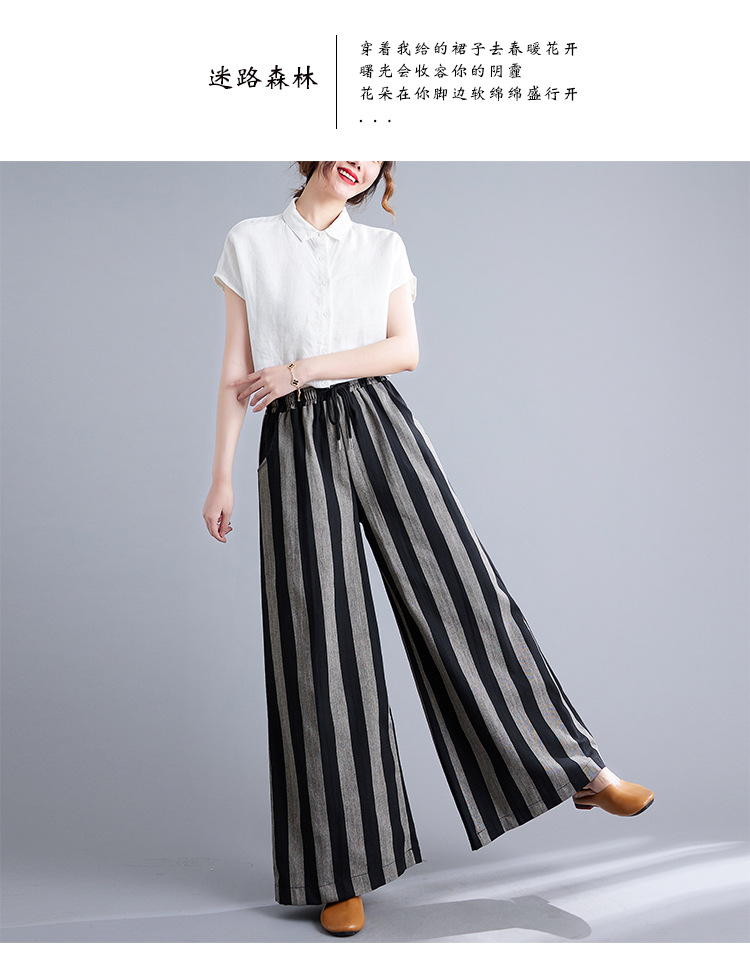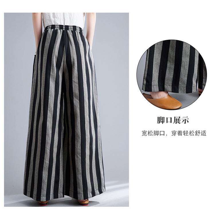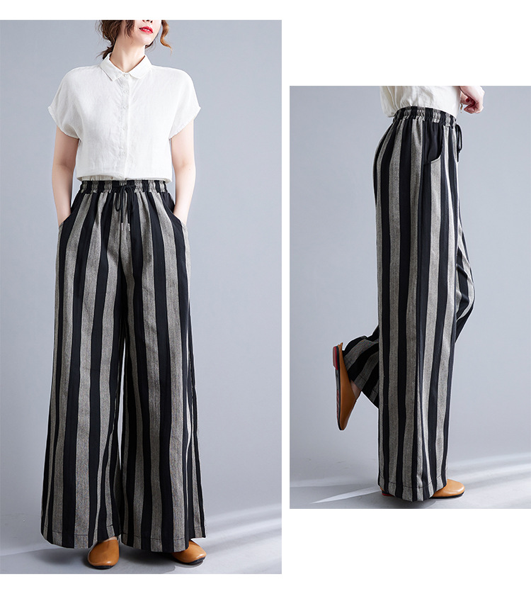 Real shot 2025 spring new retro literary loose striped elastic waist wide leg pants casual trousers women 8247