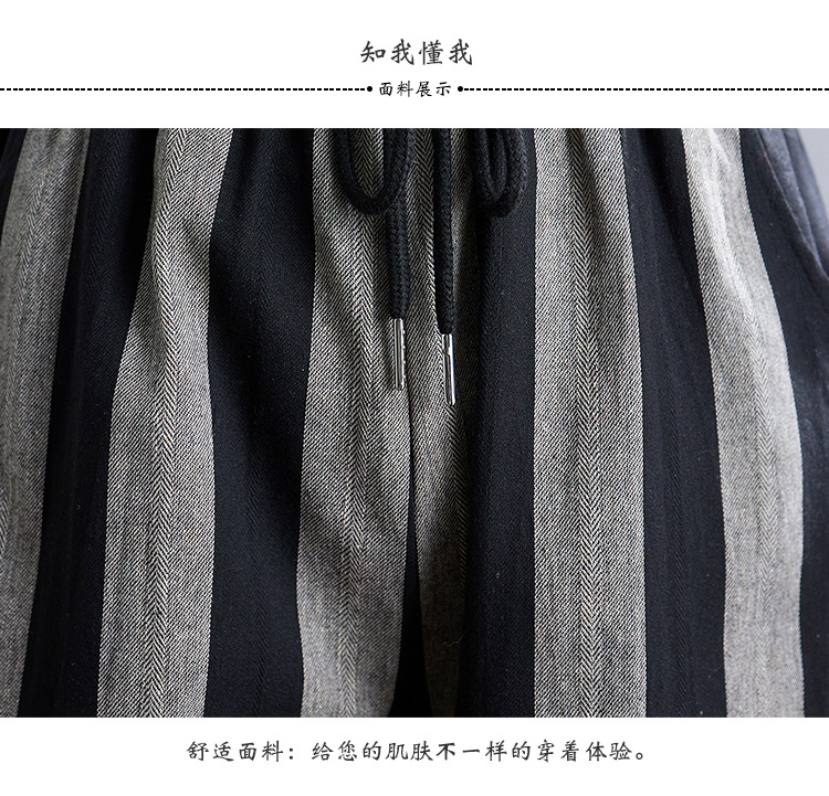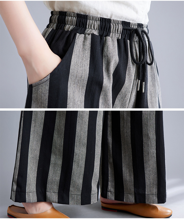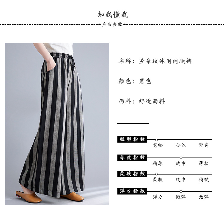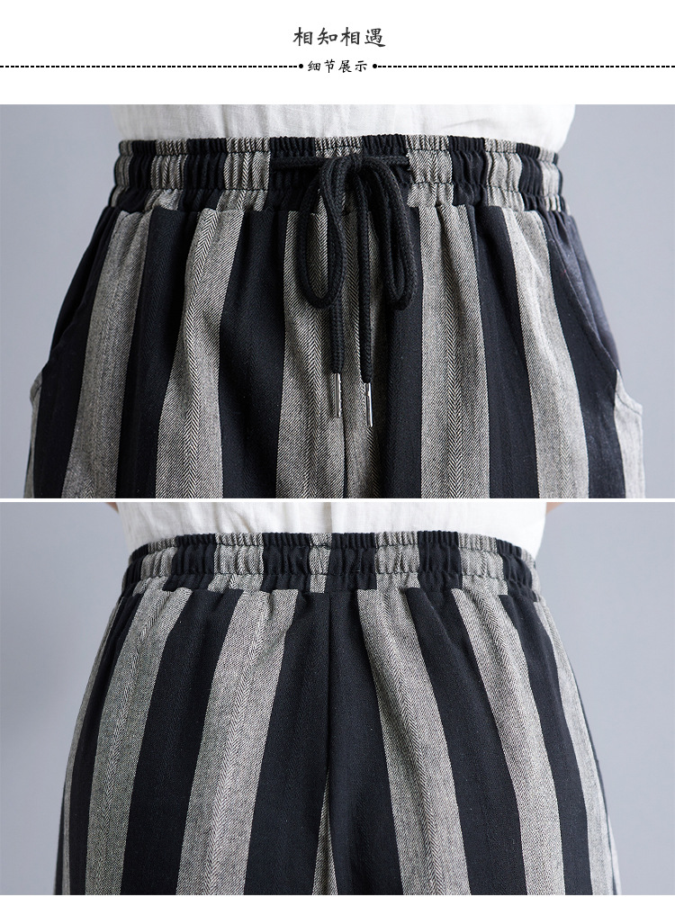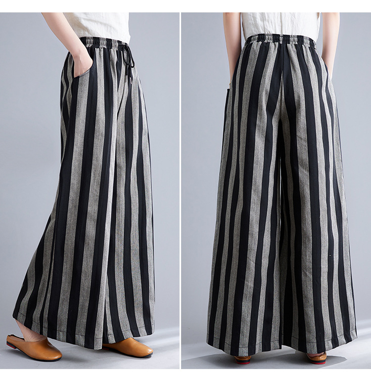 Real shot 2025 spring new retro literary loose striped elastic waist wide leg pants casual trousers women 8247