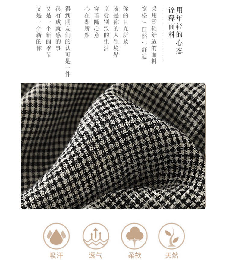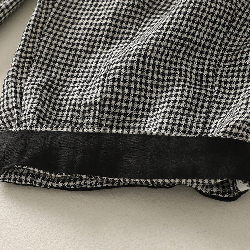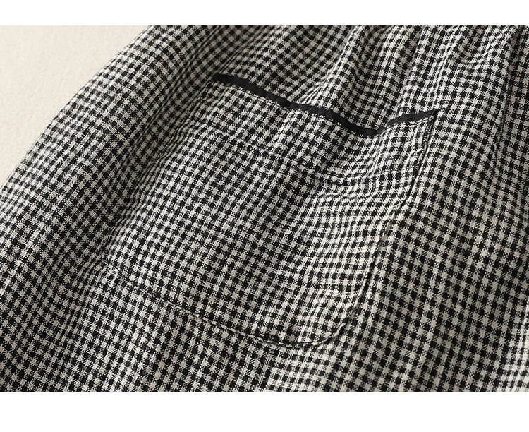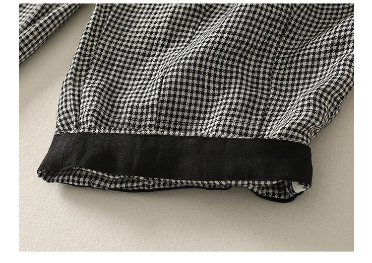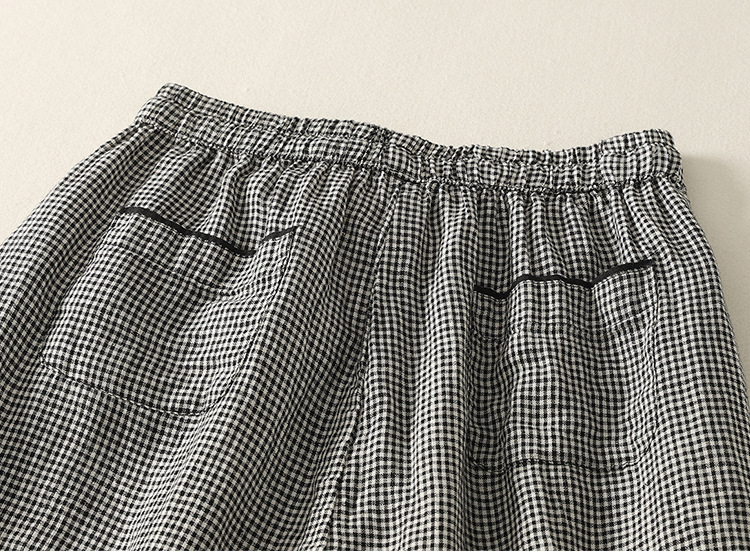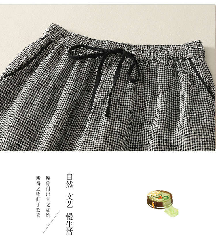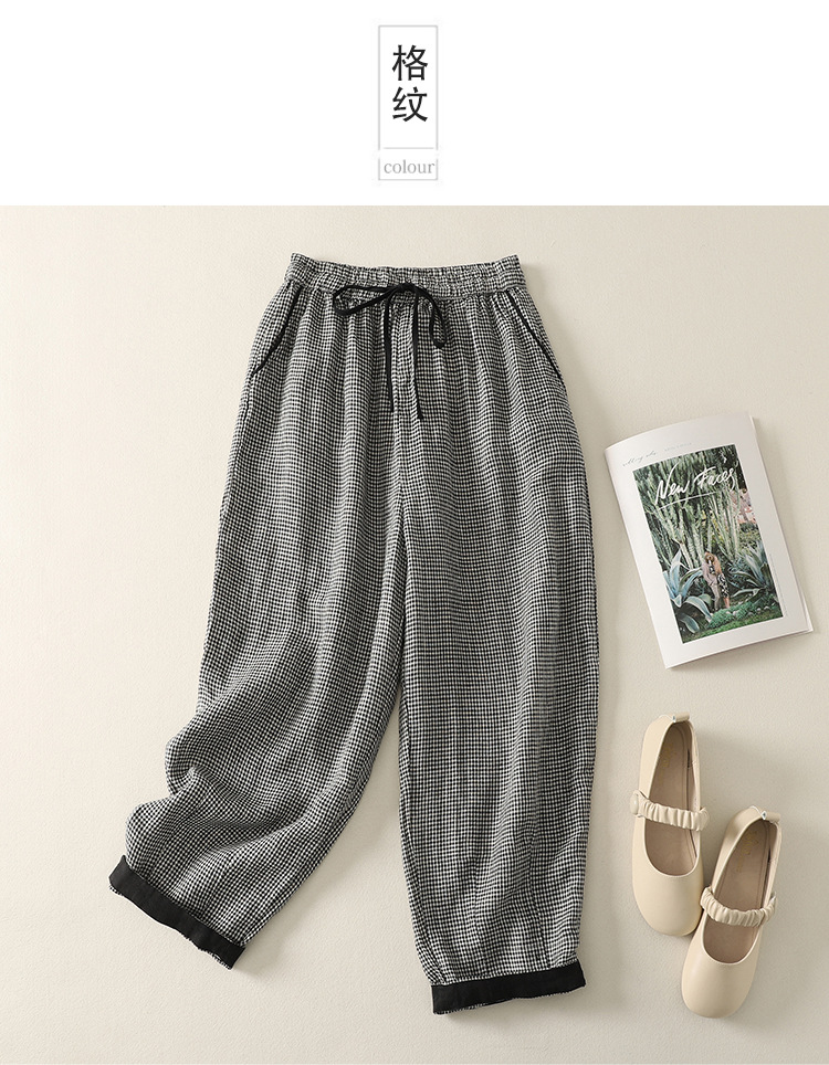 Real shot 2025 summer new casual loose cotton and linen plaid elastic waist Harlan pants nine-point pants women's #2615