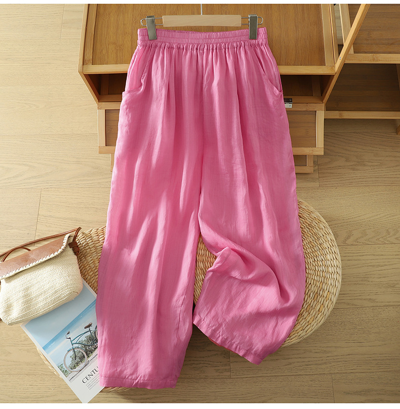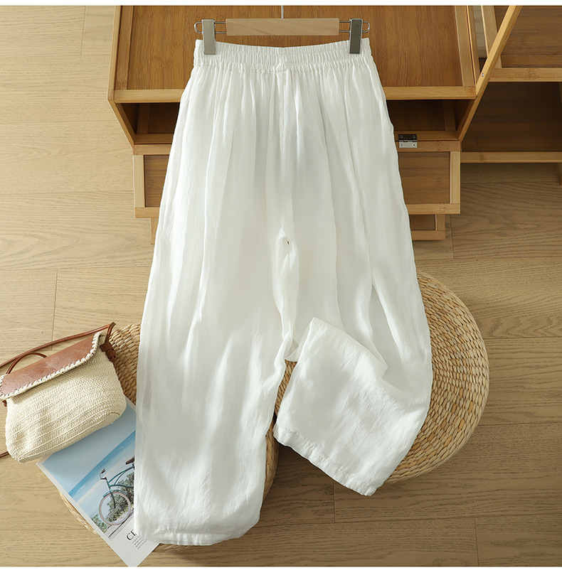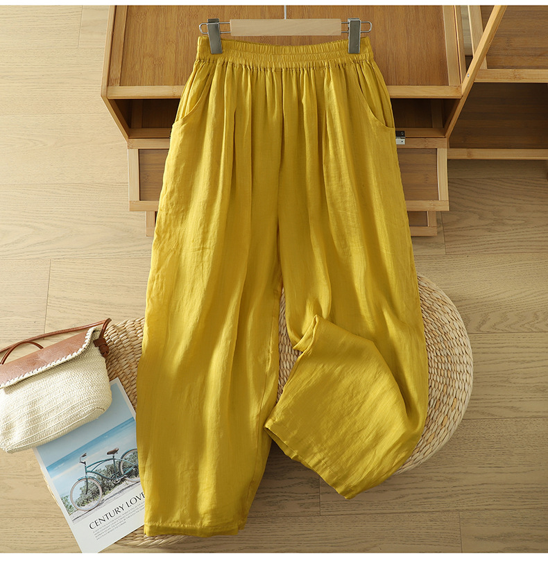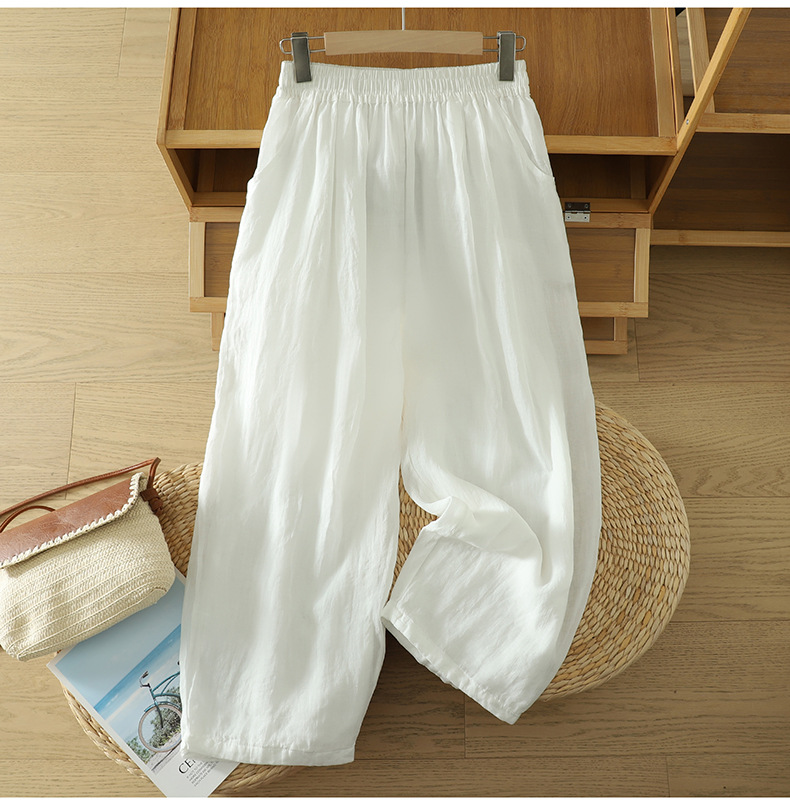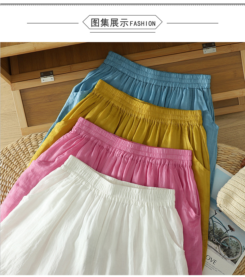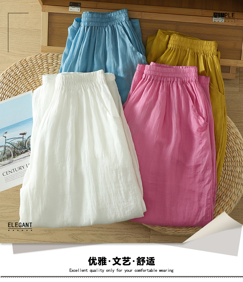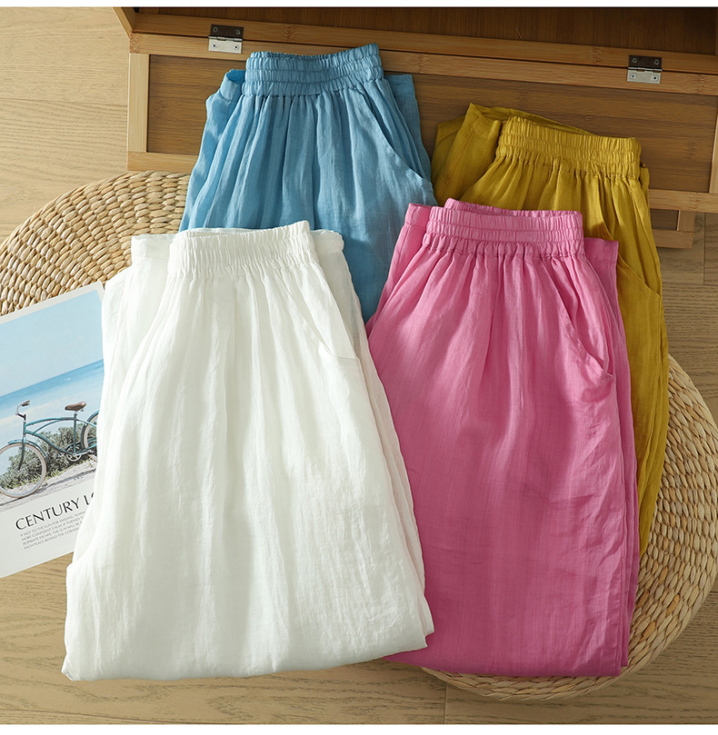Real shot 2025 summer new cotton and linen double-layer loose cover meat elastic waist casual trousers casual Harlan trousers women