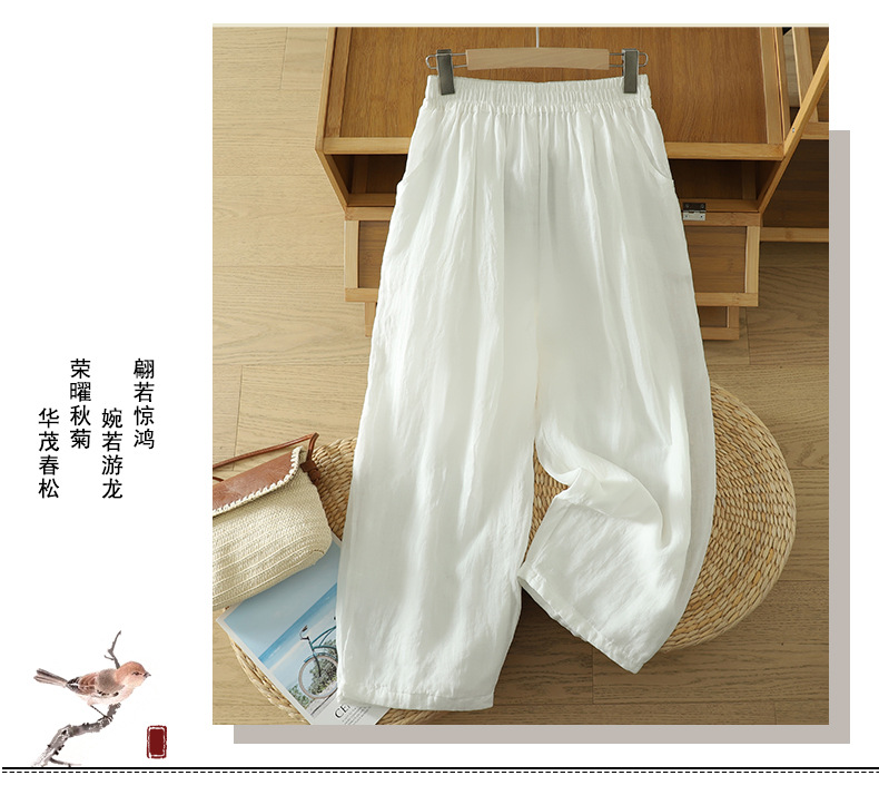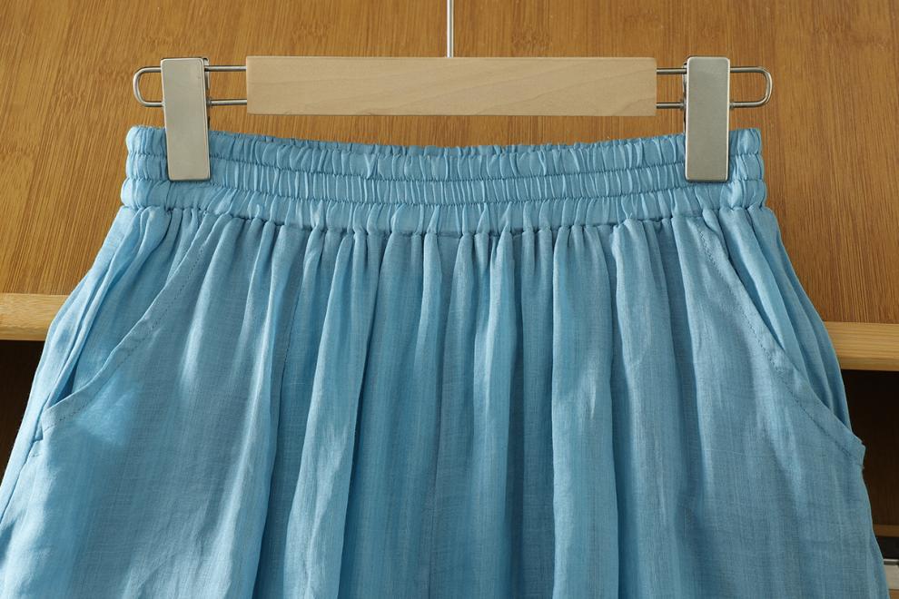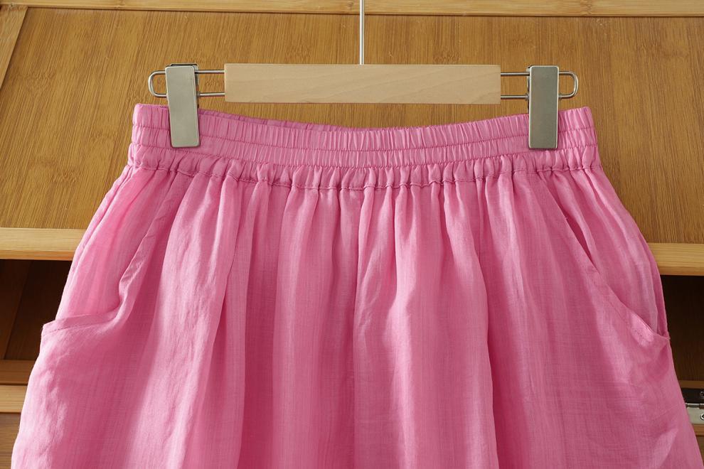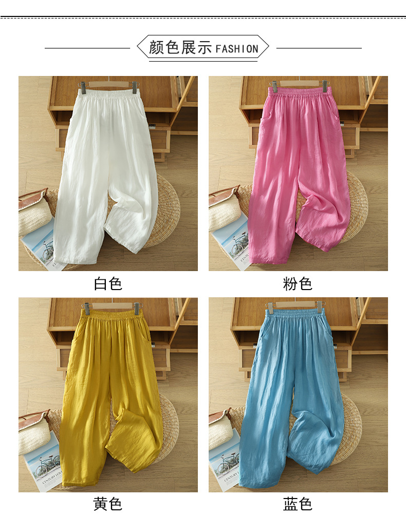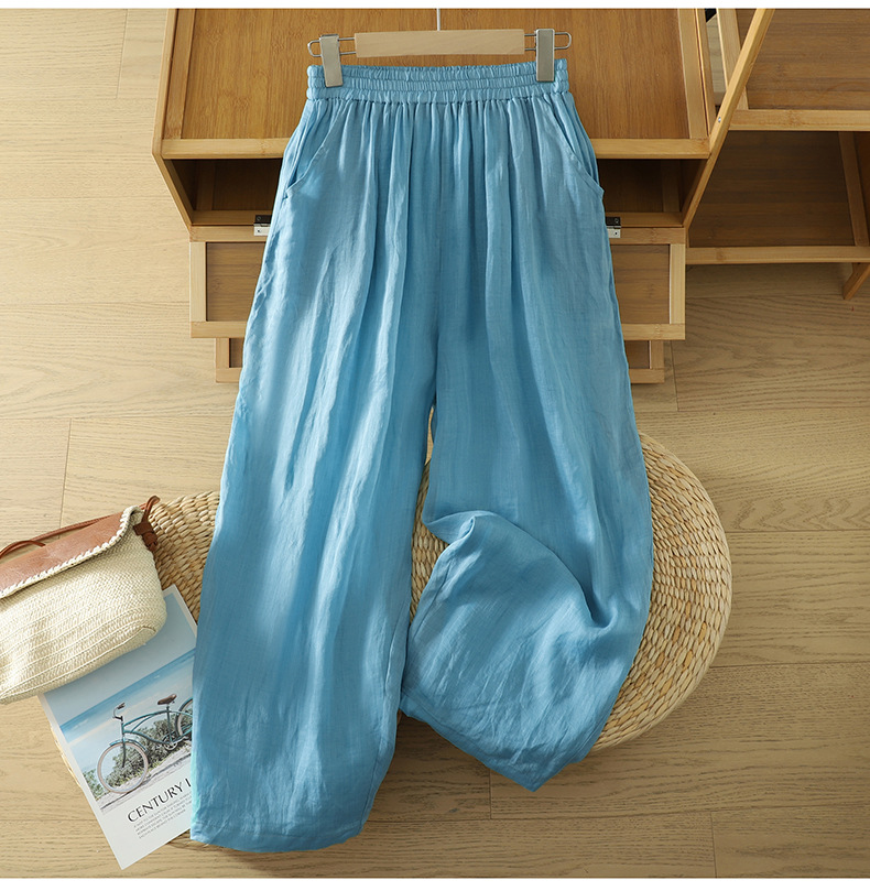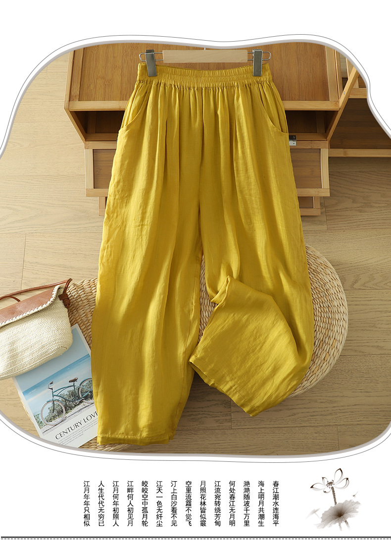 Real shot 2025 summer new cotton and linen double-layer loose cover meat elastic waist casual trousers casual Harlan trousers women