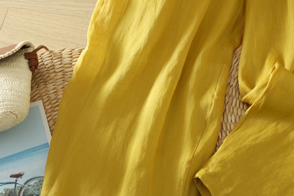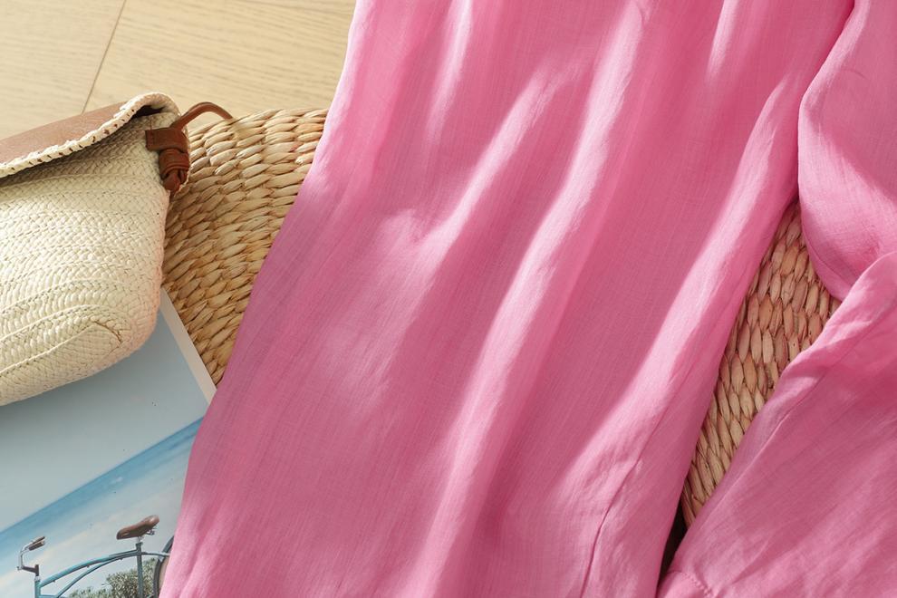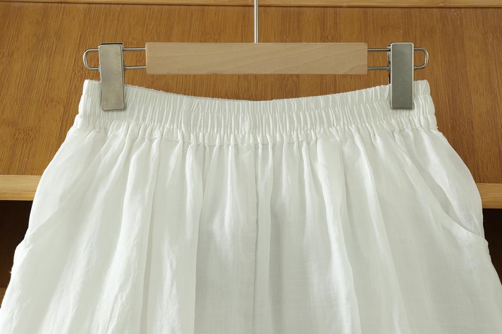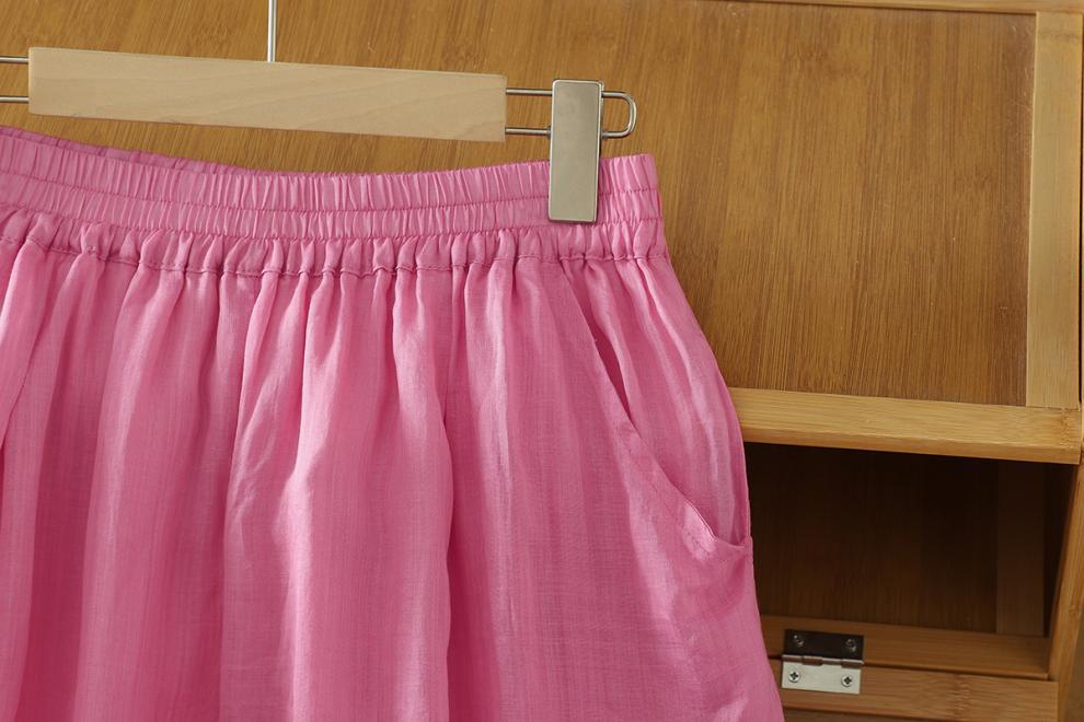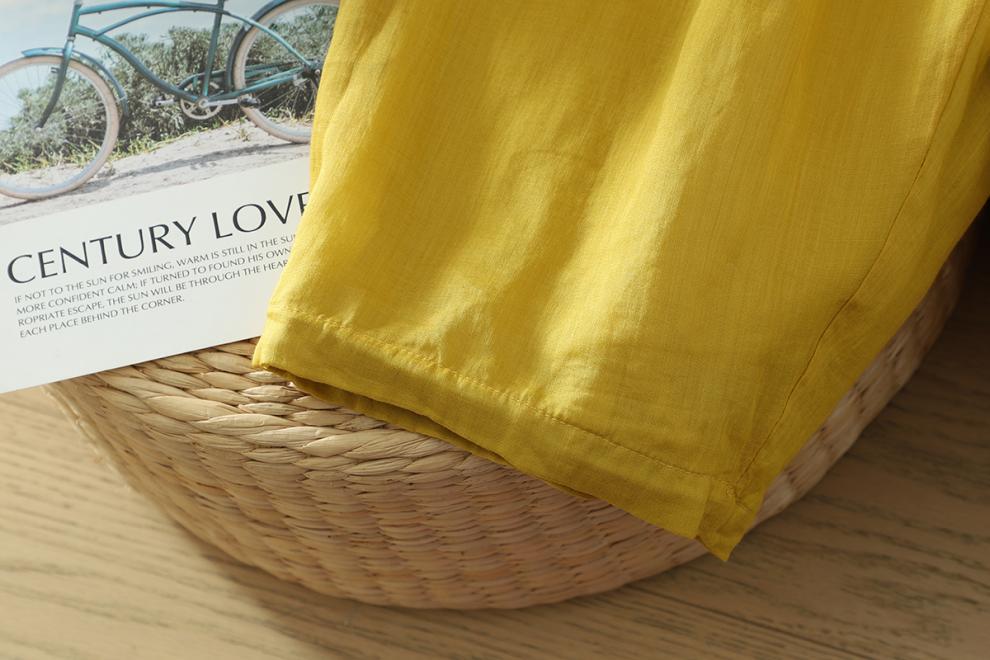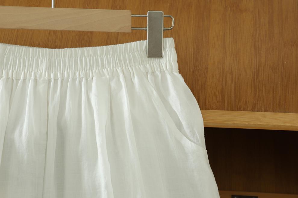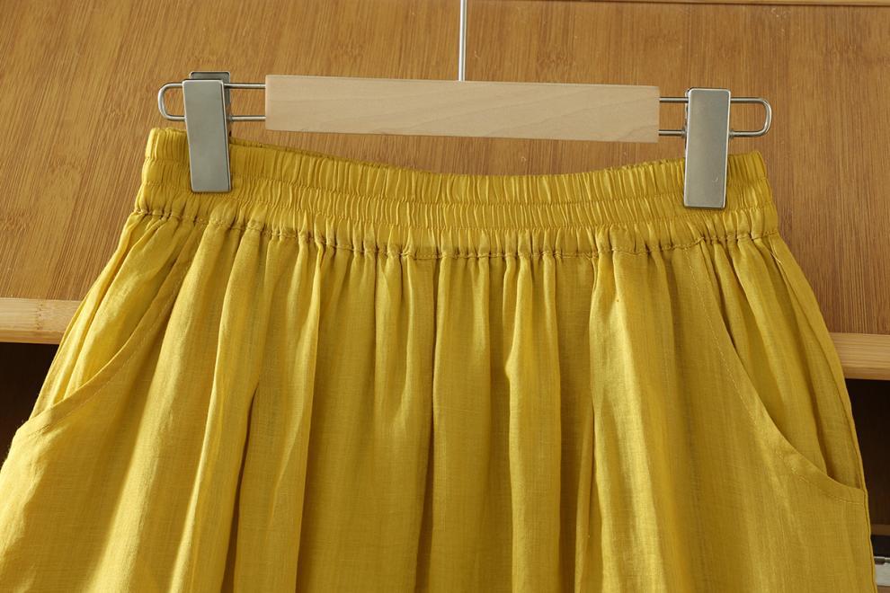 Real shot 2025 summer new cotton and linen double-layer loose cover meat elastic waist casual trousers casual Harlan trousers women