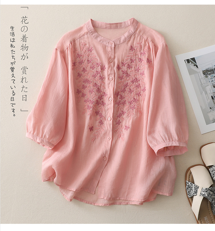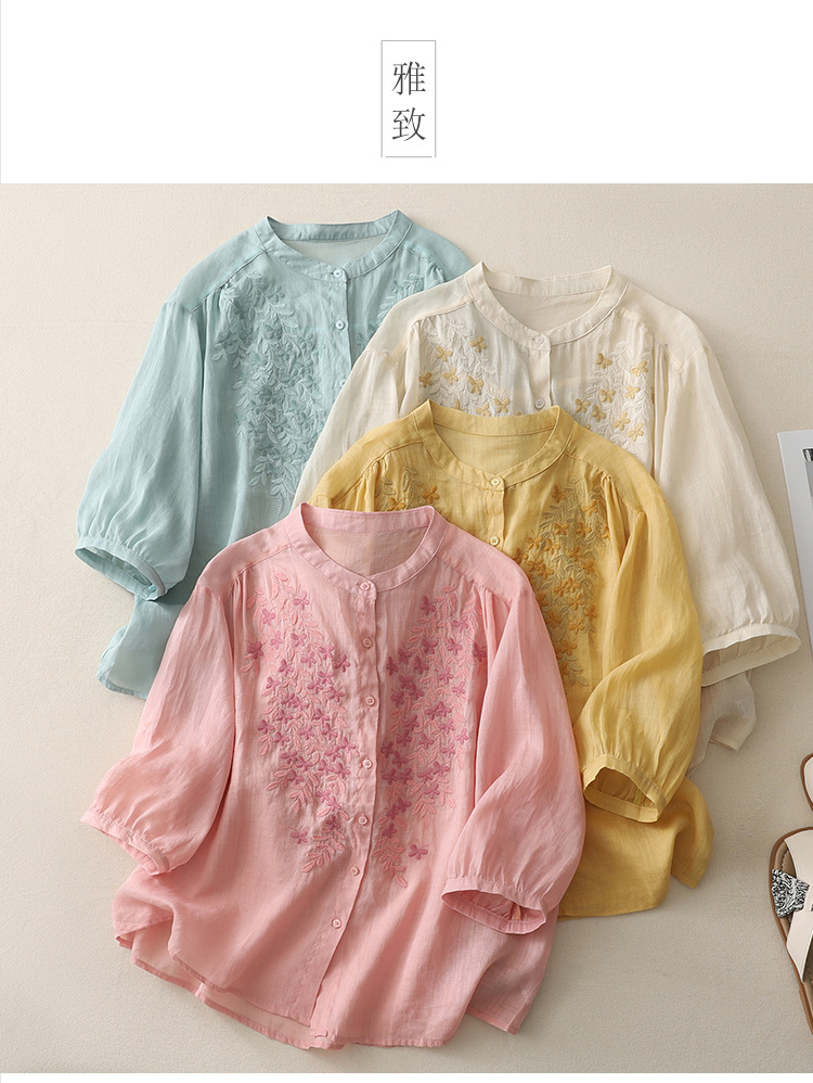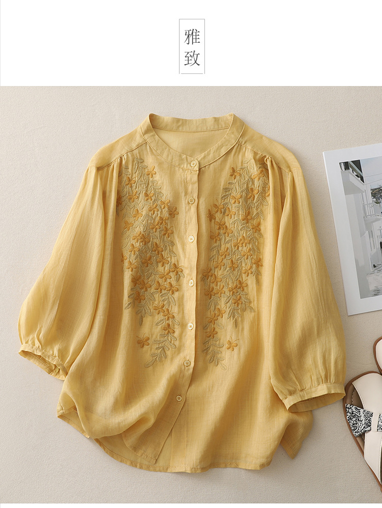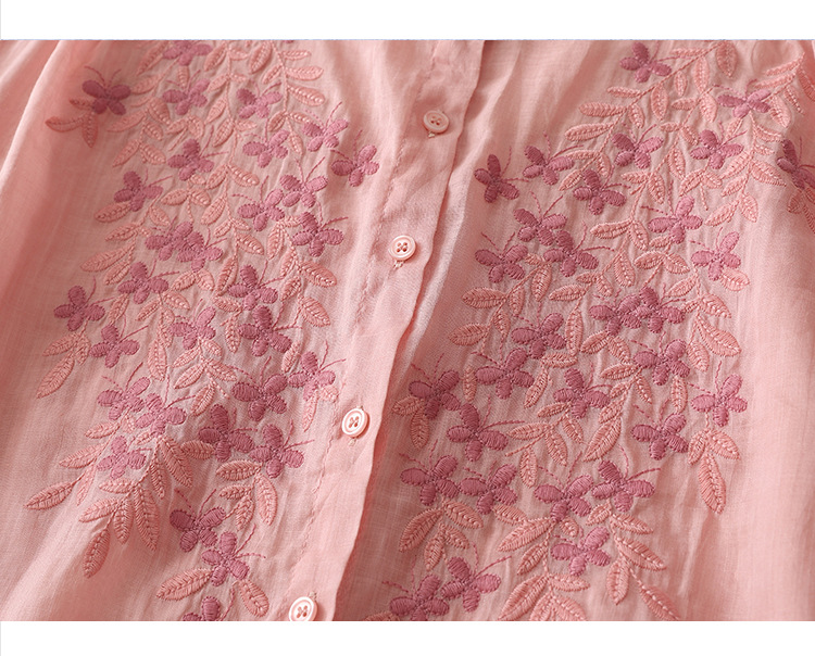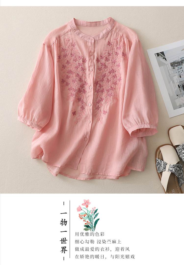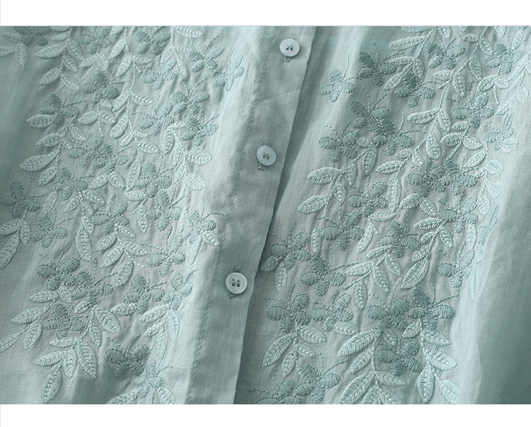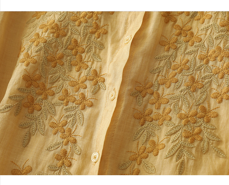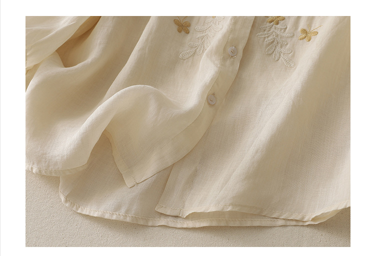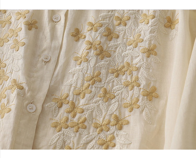 Real shot 2025 summer new cotton and linen ethnic style embroidered shirt single-breasted cardigan top women