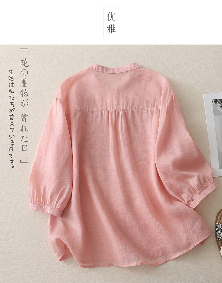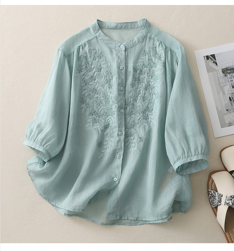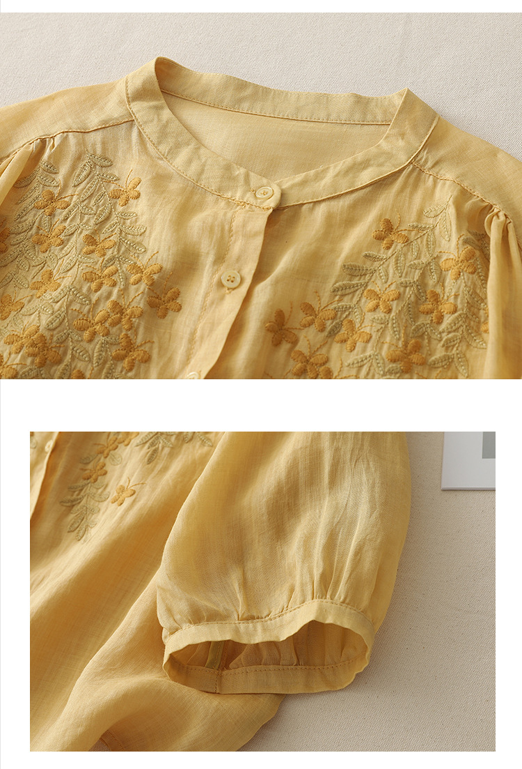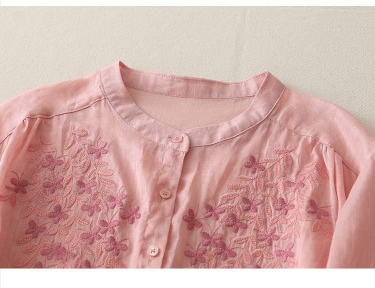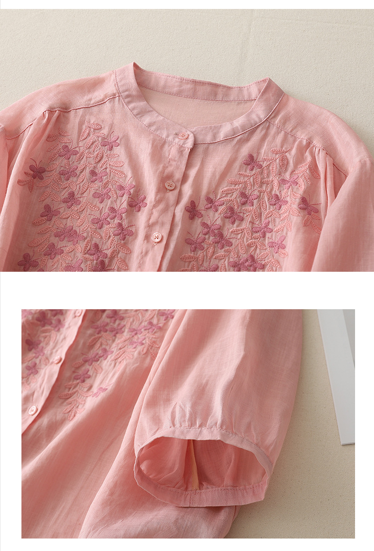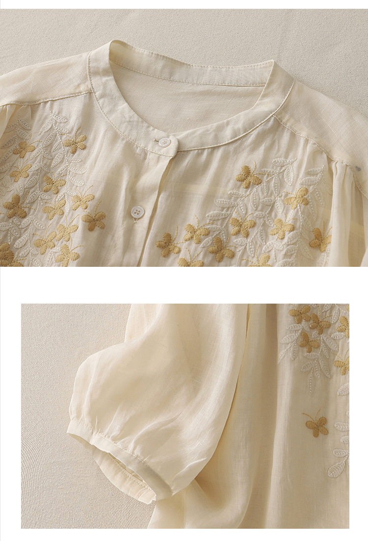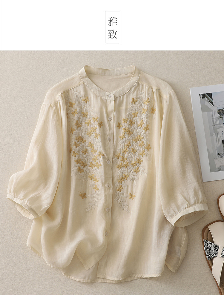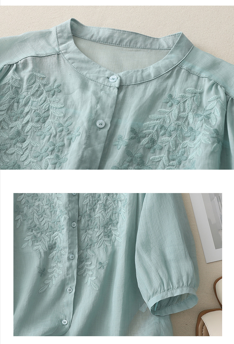 Real shot 2025 summer new cotton and linen ethnic style embroidered shirt single-breasted cardigan top women