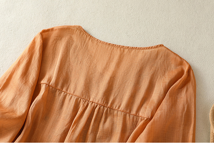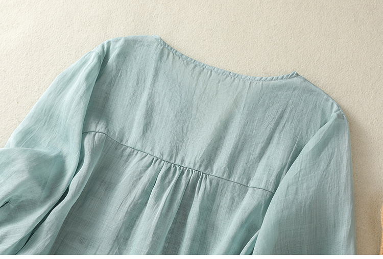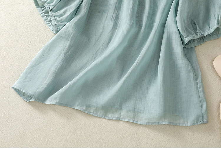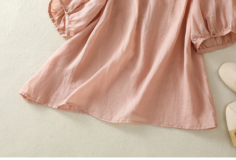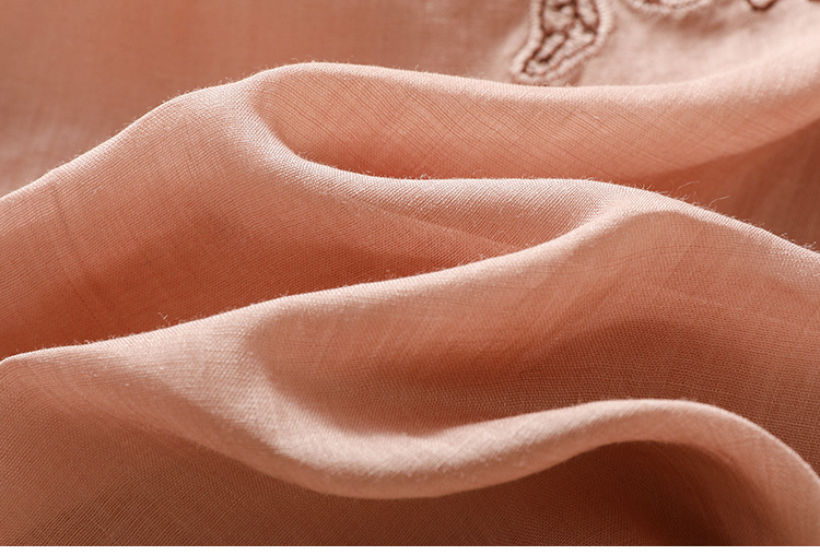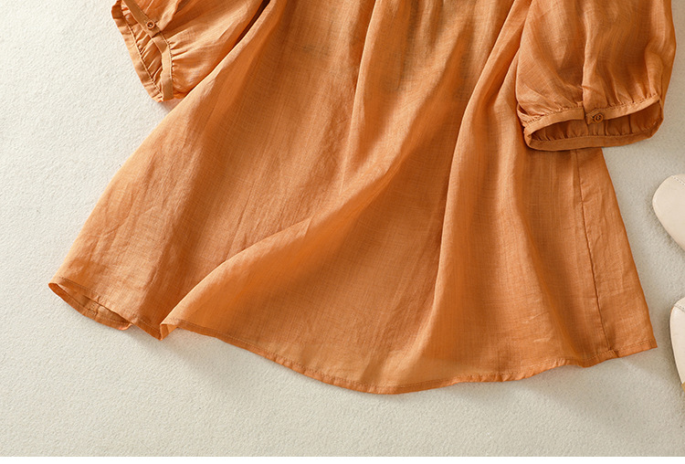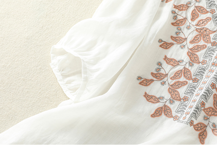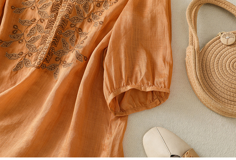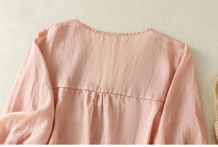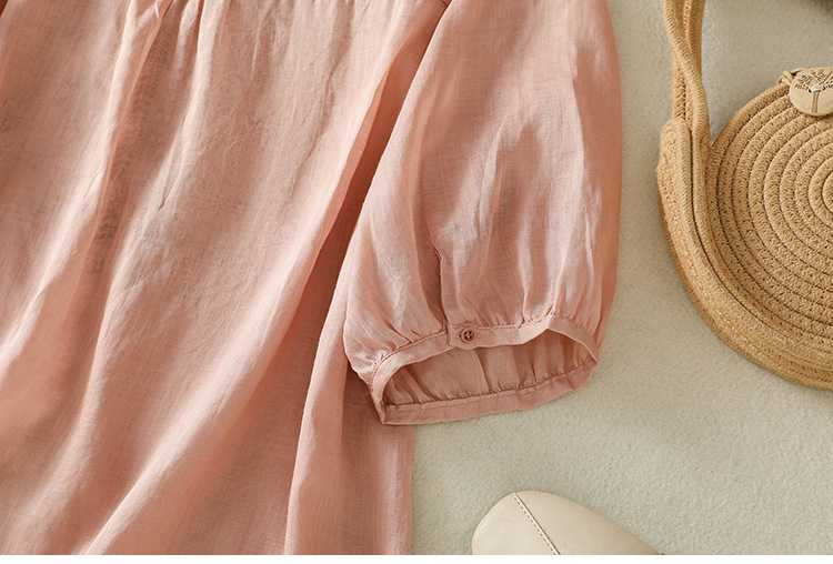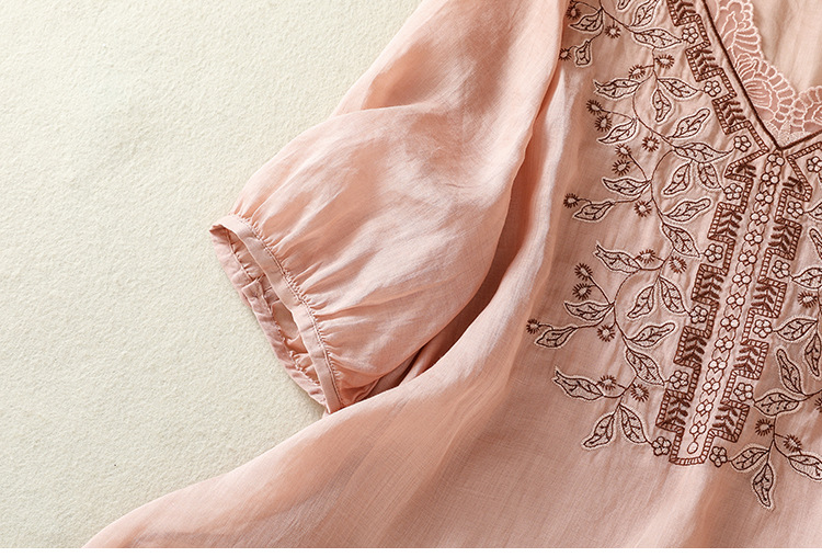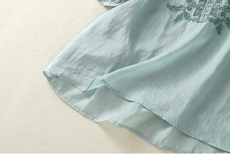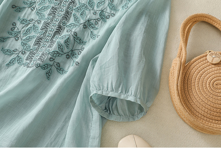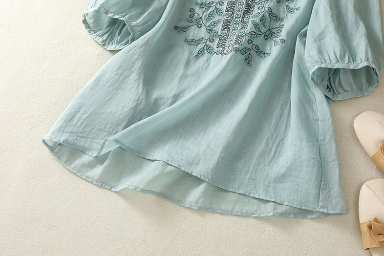 Real shot 2025 summer new cotton and linen literary and retro embroidery V-neck lace splicing five-quarter sleeve shirt top